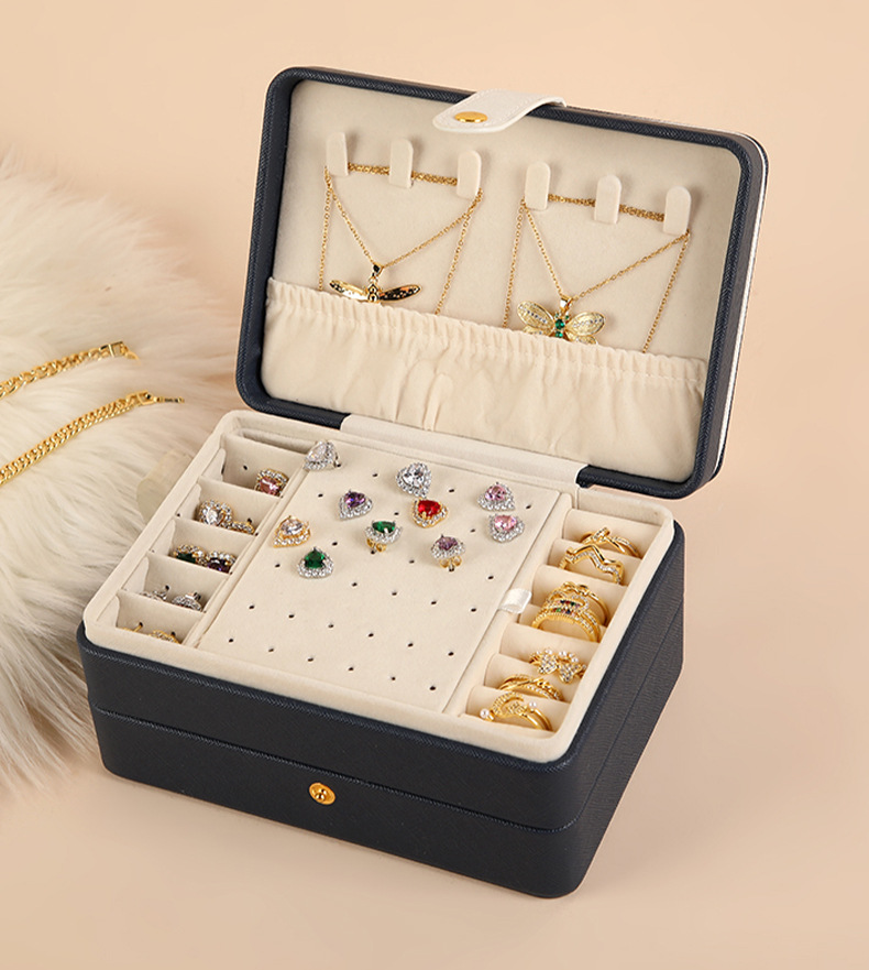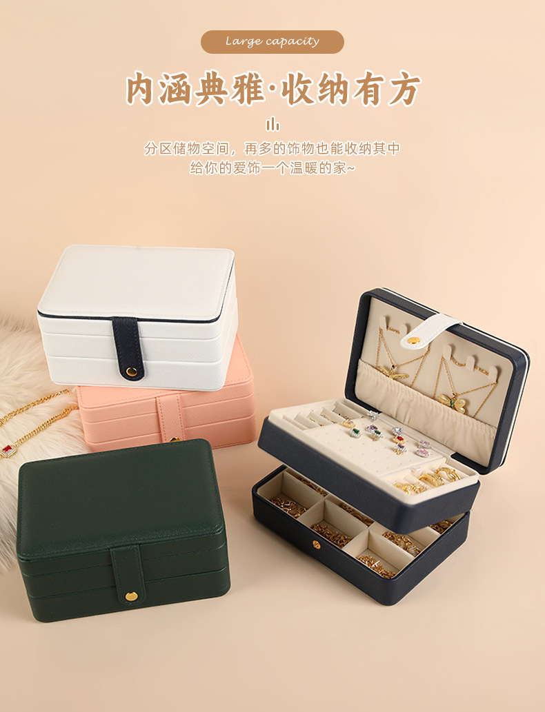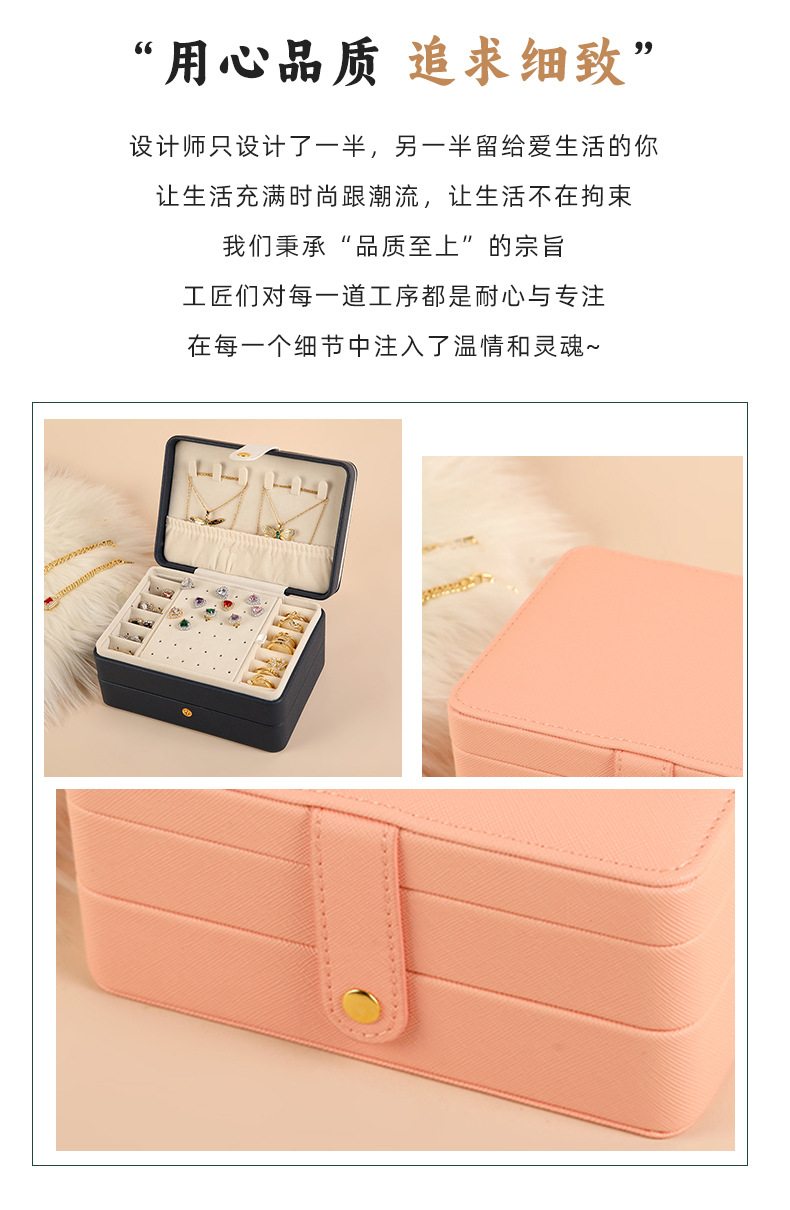 欧式复古感珠宝首饰盒家用项链戒指多层饰品盒钻石纹pu皮包装盒
