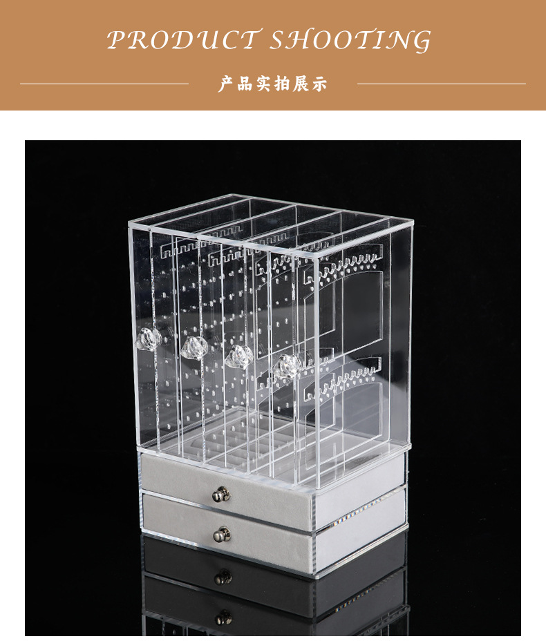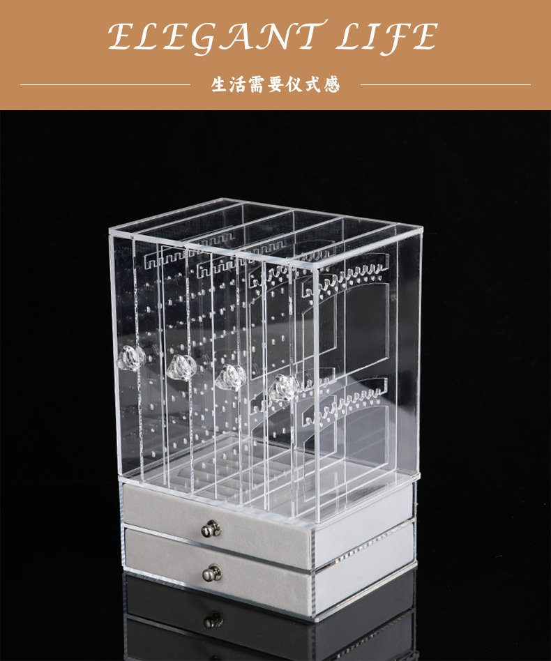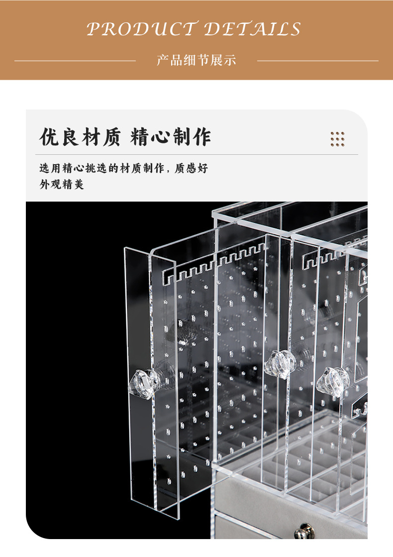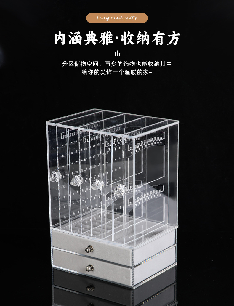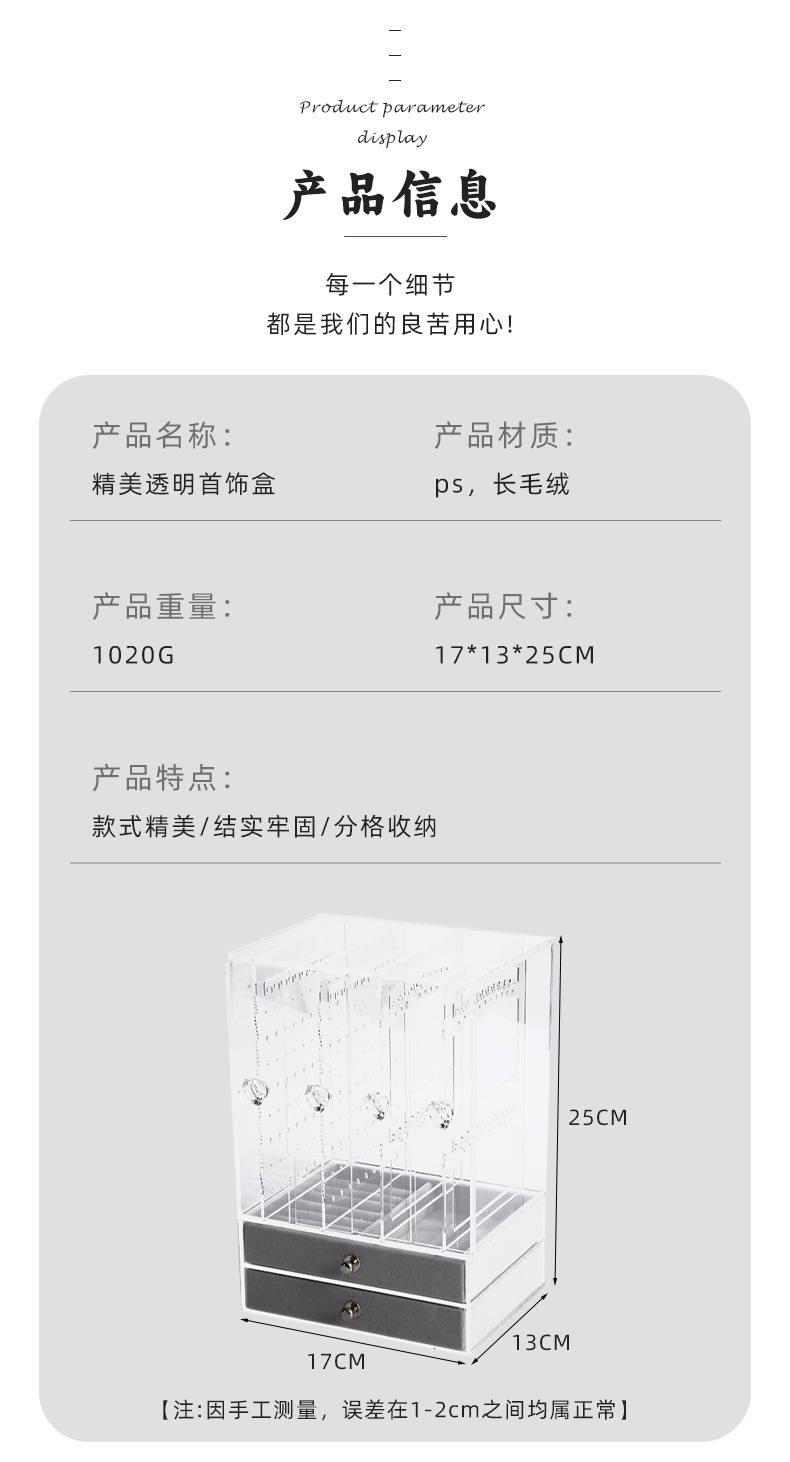 家用简约透明饰品收纳盒欧式轻奢长毛绒抽屉盒桌面耳钉项链收纳盒