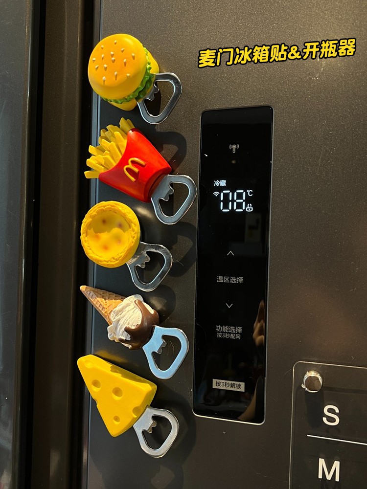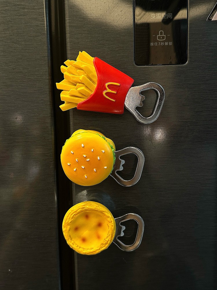 麦当当汉堡薯条开瓶器磁吸冰箱贴家用创意多功能啤酒起子装饰摆件