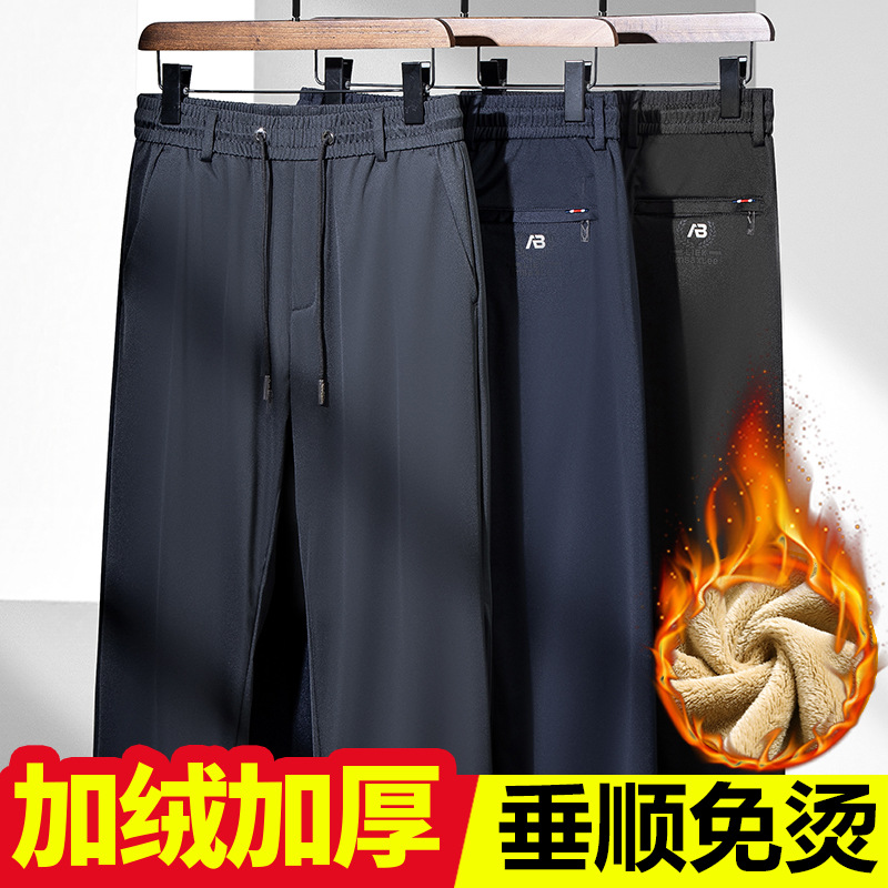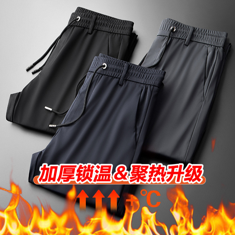 秋冬加绒休闲裤直筒加厚松紧腰男裤弹力长裤宽松印花高弹运动裤子