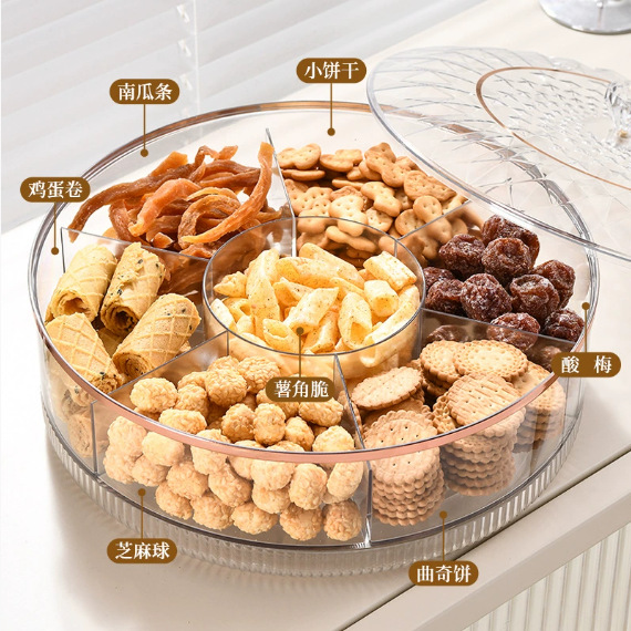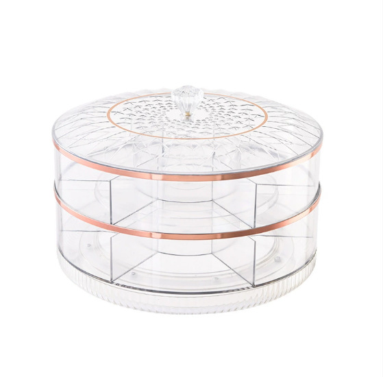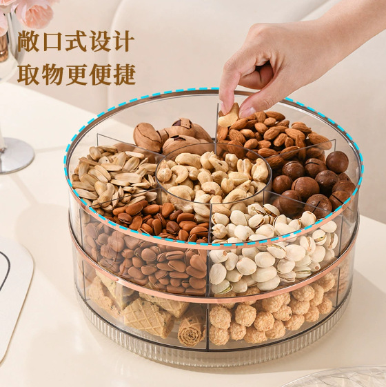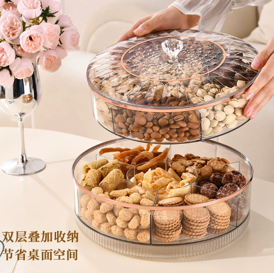 家用客厅茶几单层双层旋转糖果盒水果盘零食摆放坚果收纳盒干果盘
