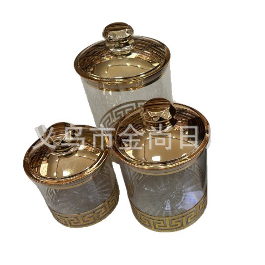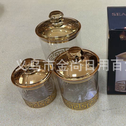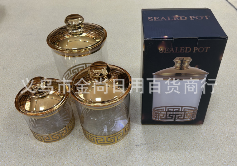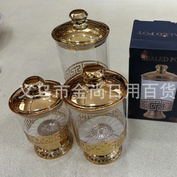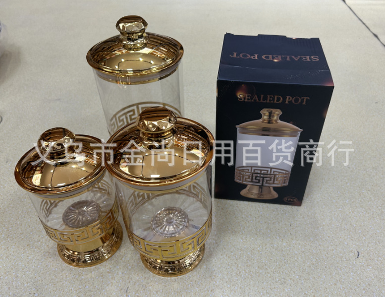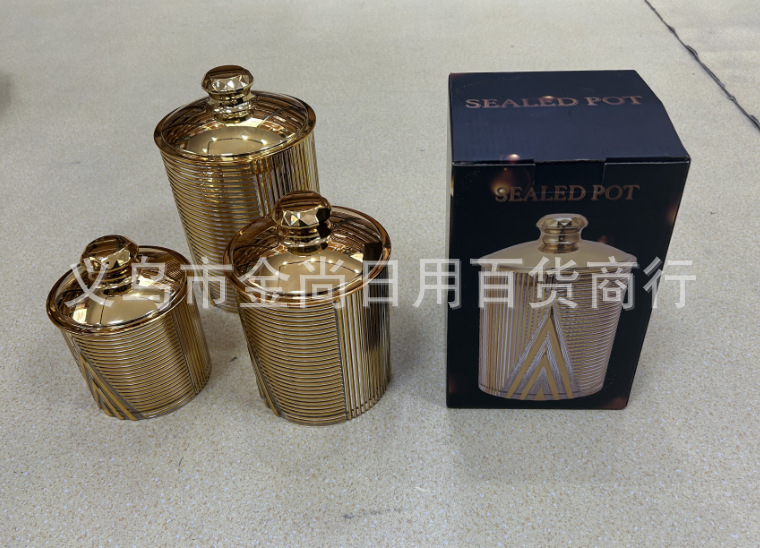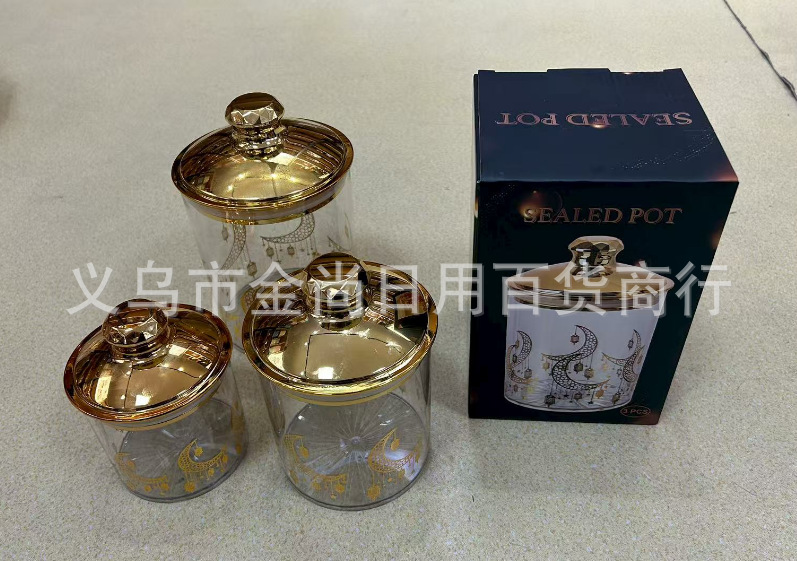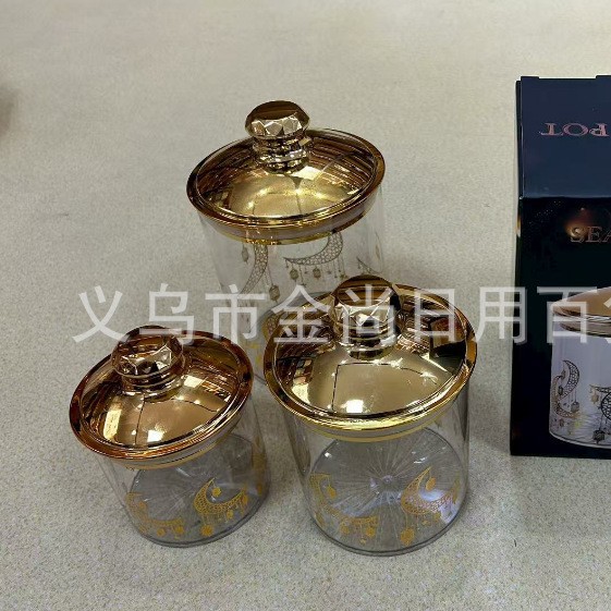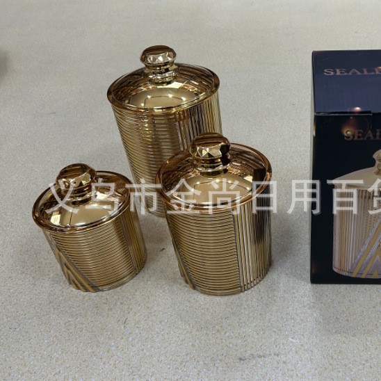 月亮烫金带脚不带脚密封罐食品级厨房防潮杂粮茶叶储物罐三件套彩