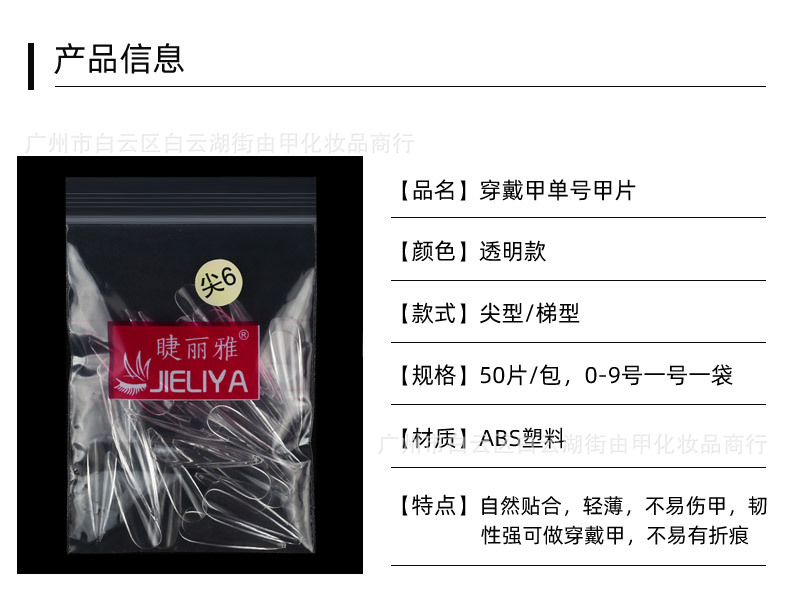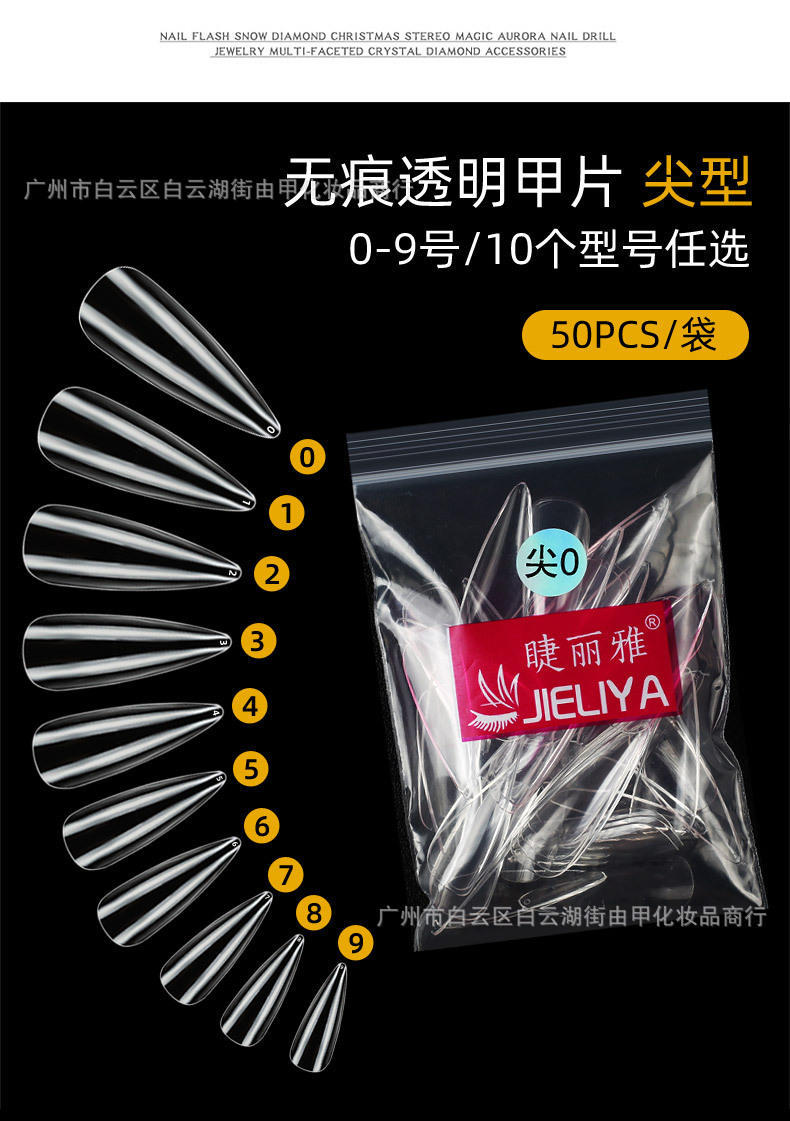 睫丽雅袋装50片甲片装补号单号自选透明美甲贴片无痕免打磨美甲店