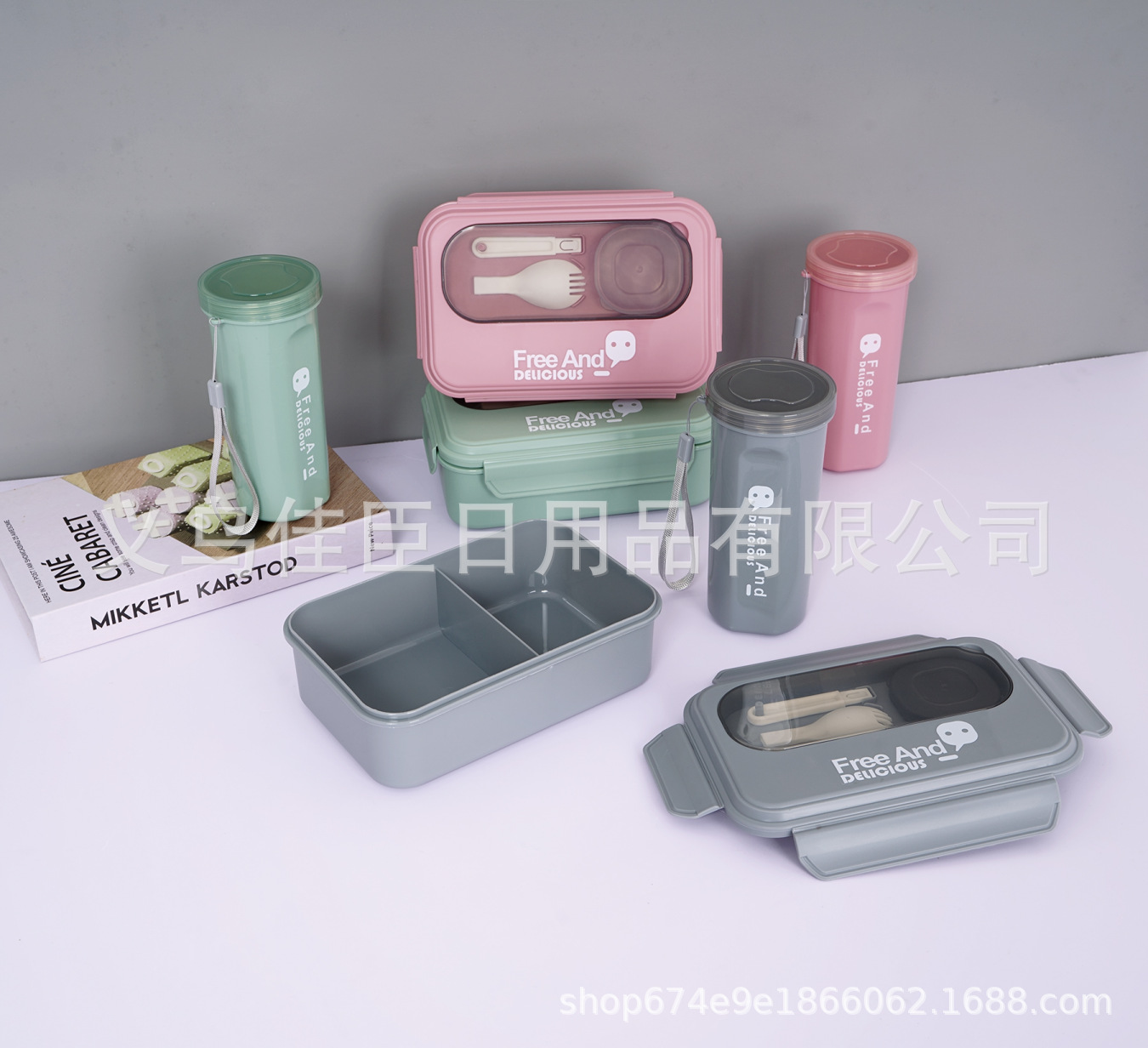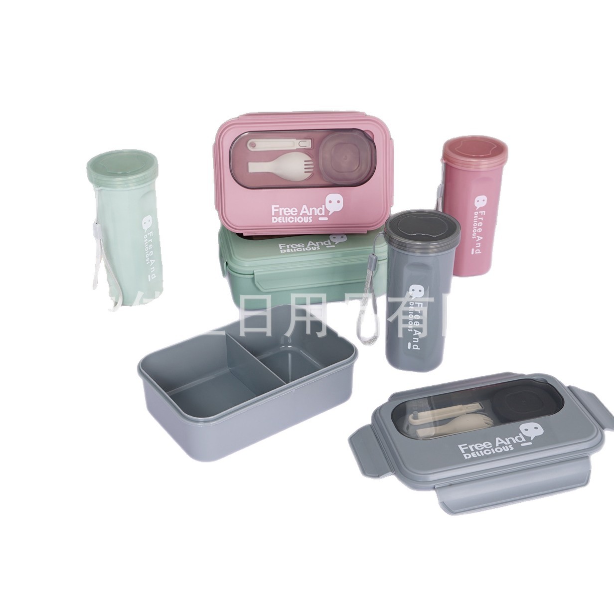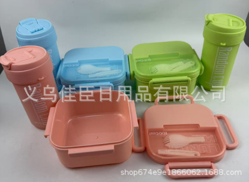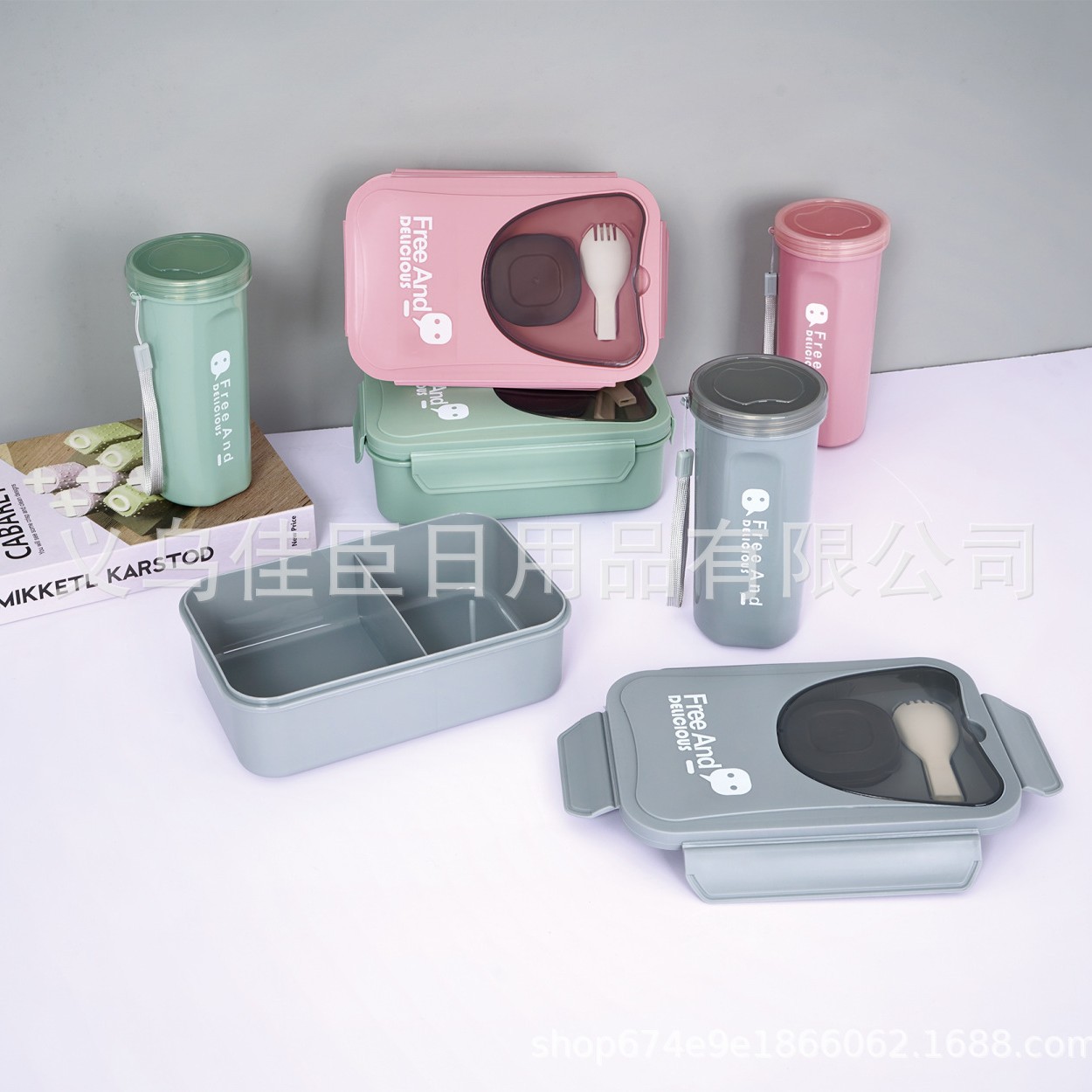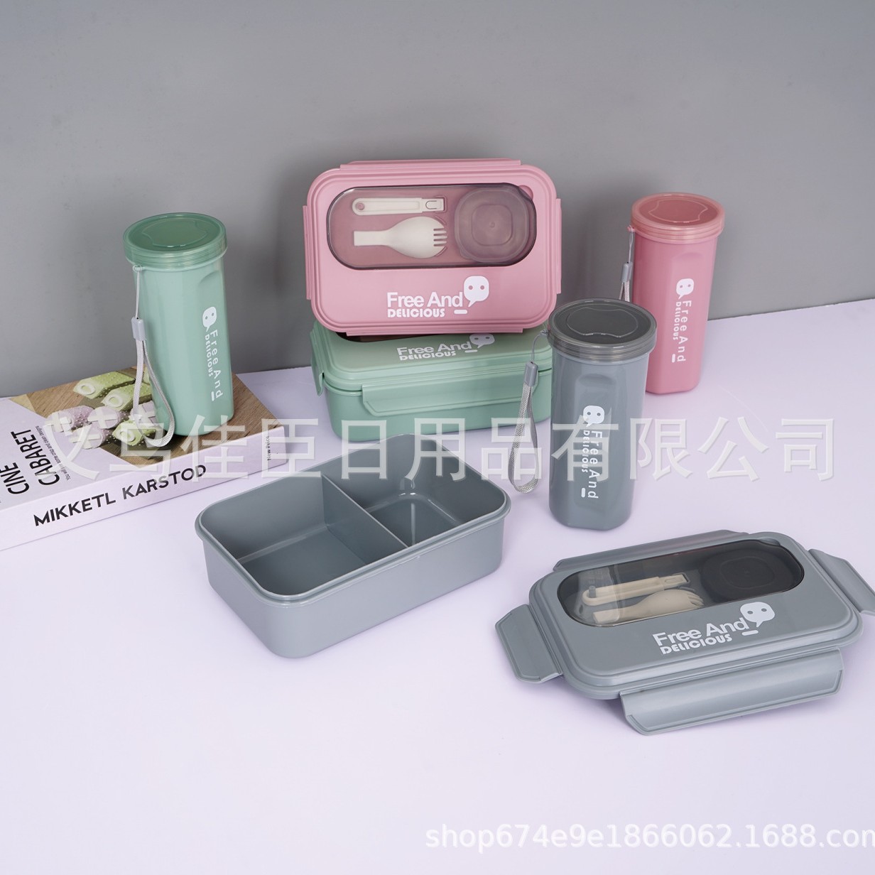 分格款带餐具饭盒学生便当盒水壶可手提饭盒套装简约大方上班带饭