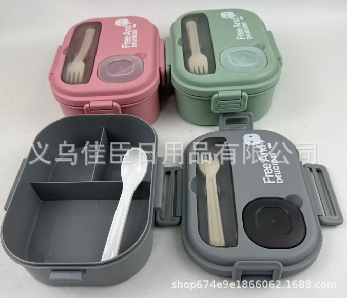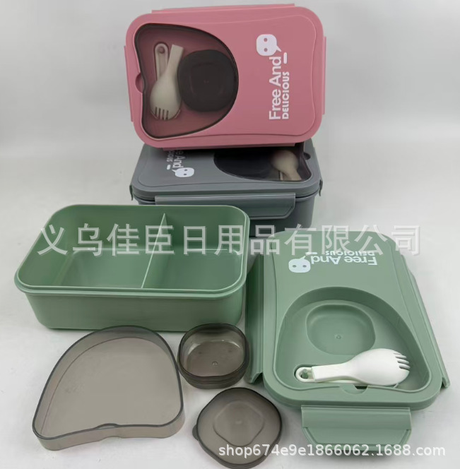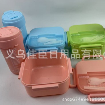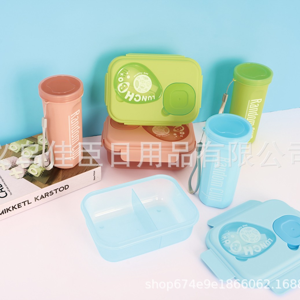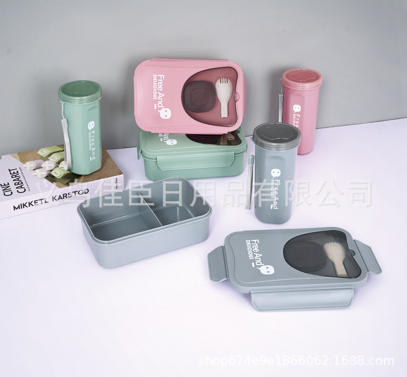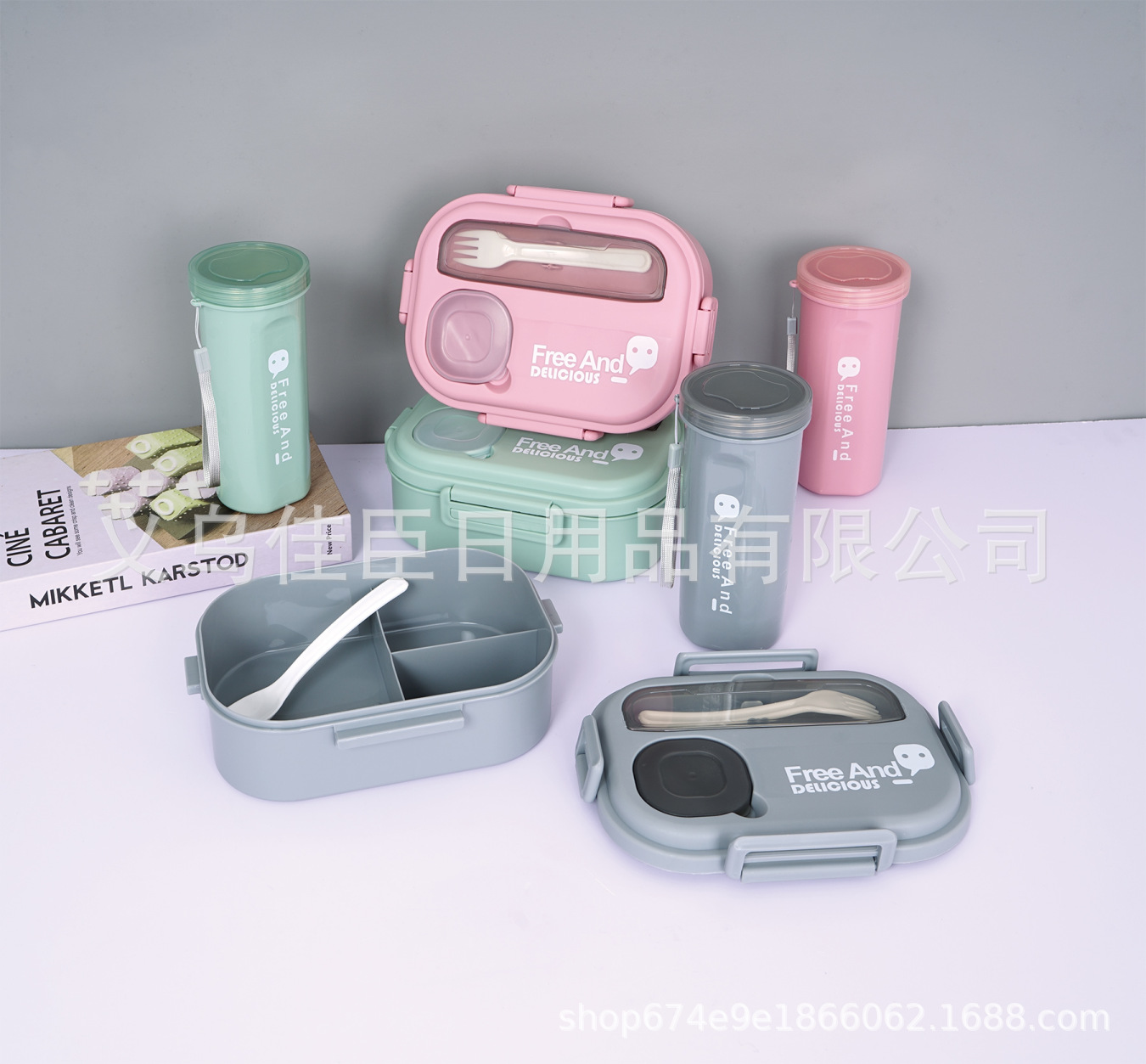 分格款带餐具饭盒学生便当盒水壶可手提饭盒套装简约大方上班带饭