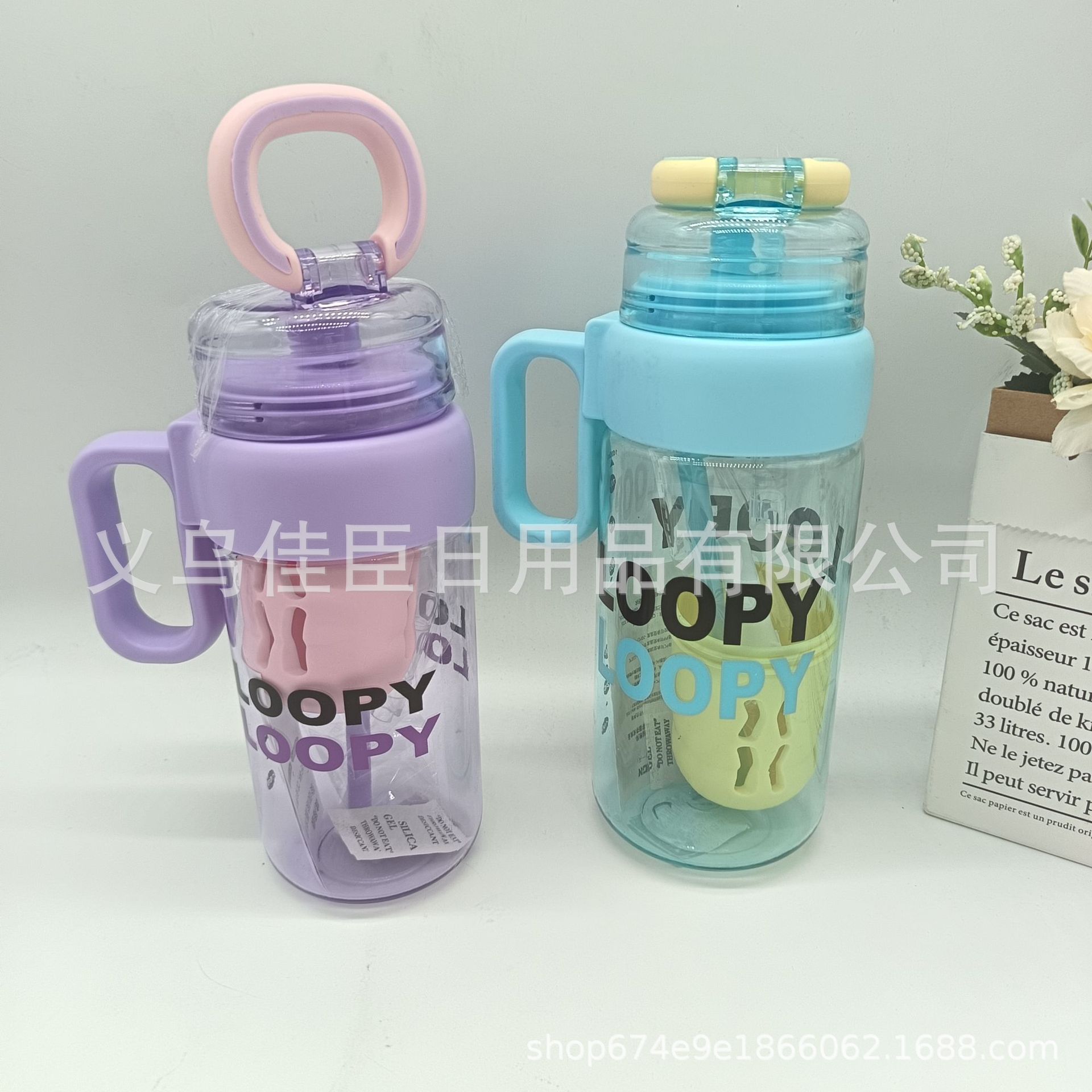 男女高颜值塑料大容量水杯便携提绳骑士杯运动健身水瓶直饮杯简约
