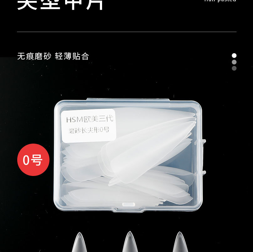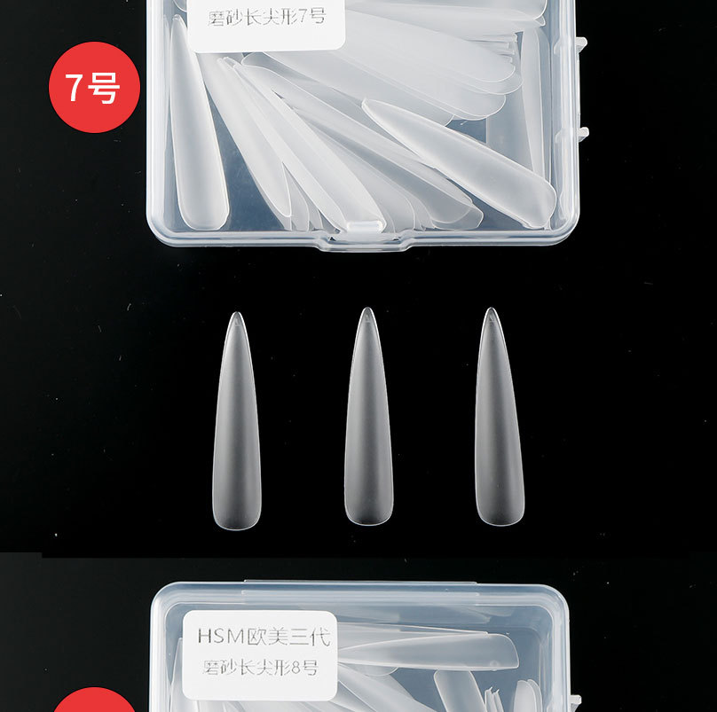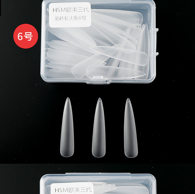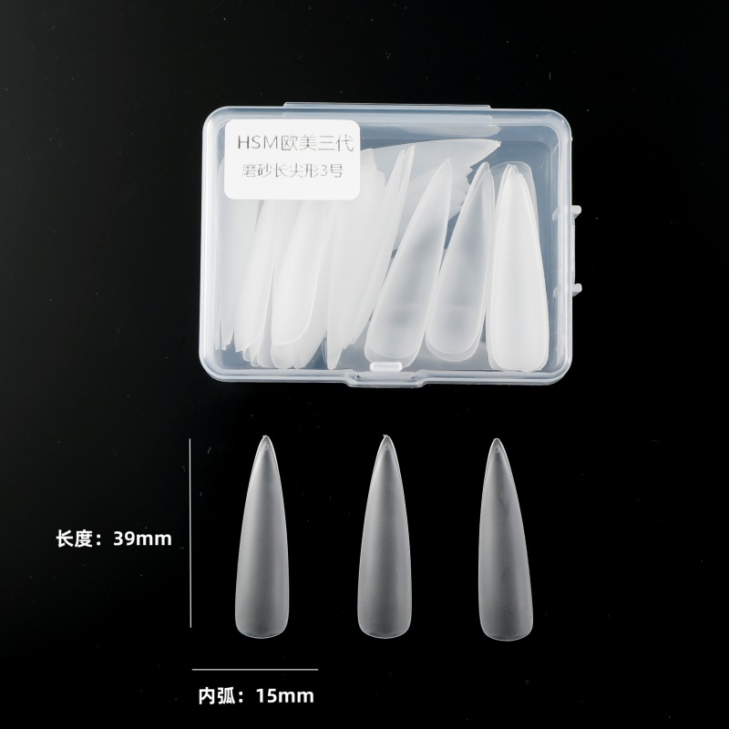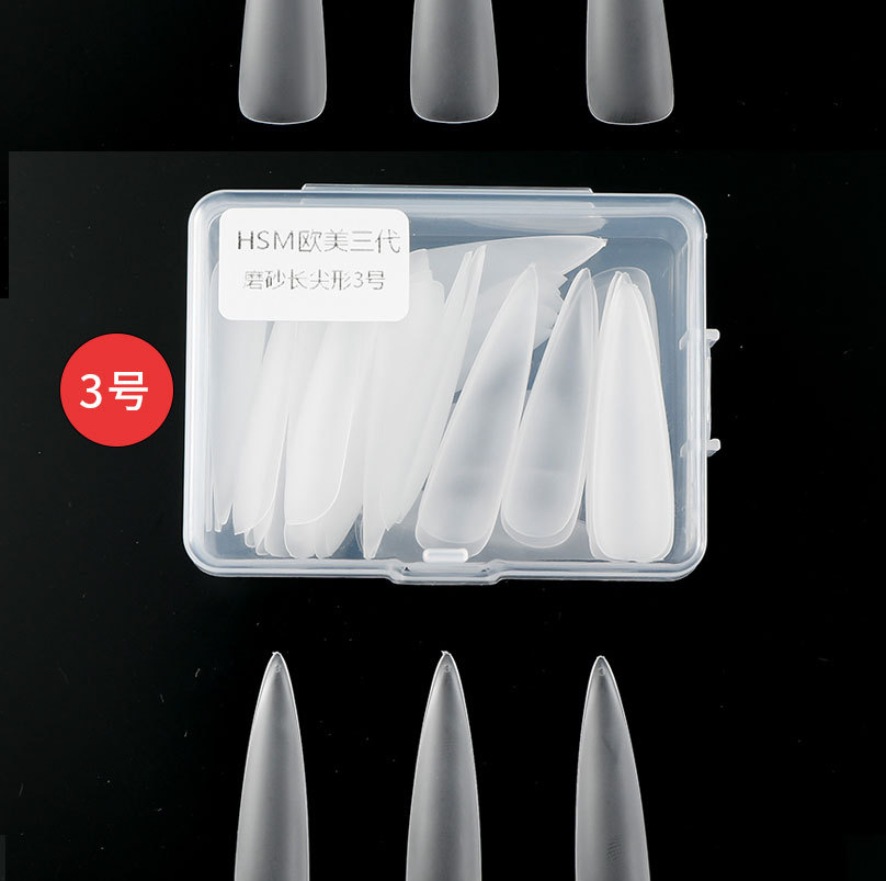华盛美三代加长尖形佳哥同款磨砂免打磨长梯形单号甲片补充装50片