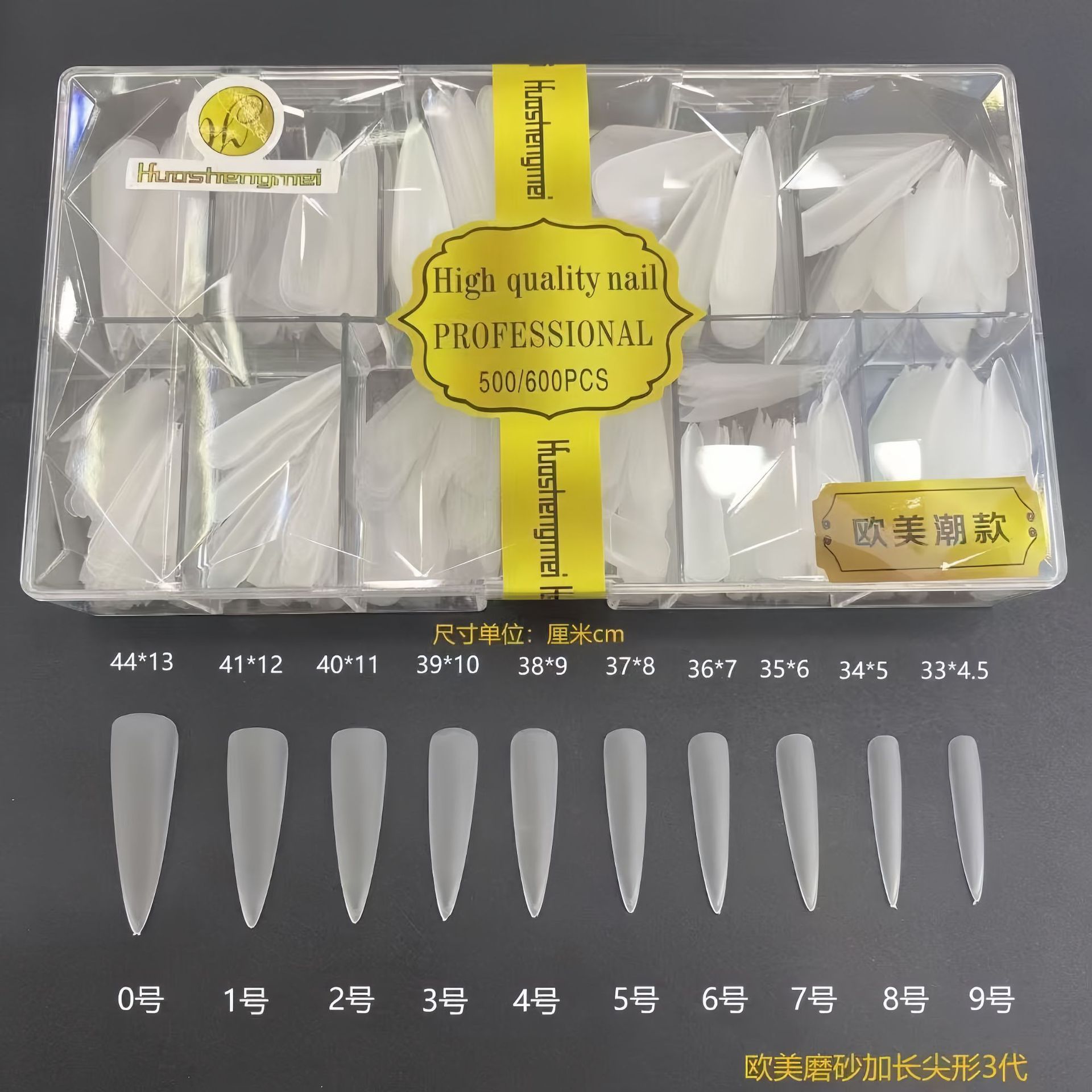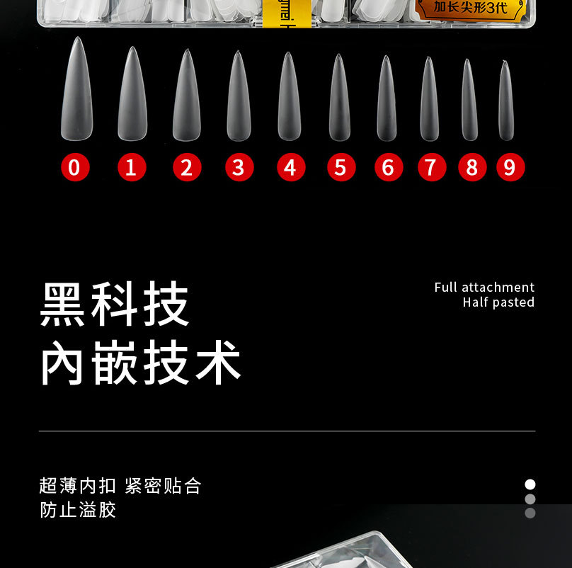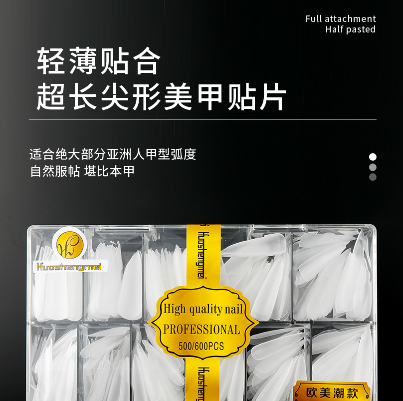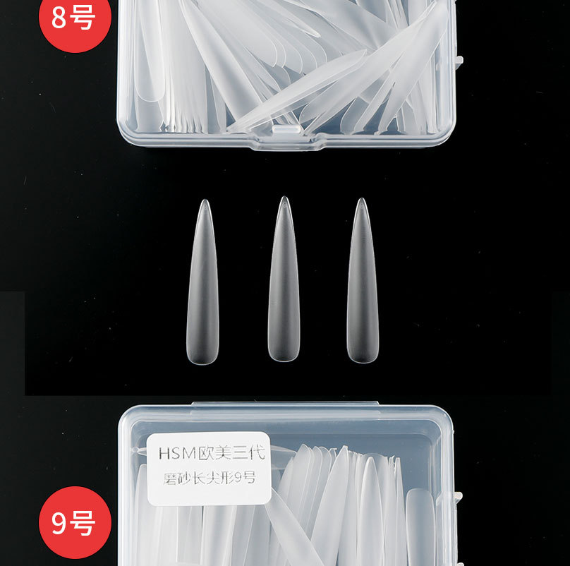 华盛美三代加长尖形佳哥同款磨砂免打磨长梯形单号甲片补充装50片