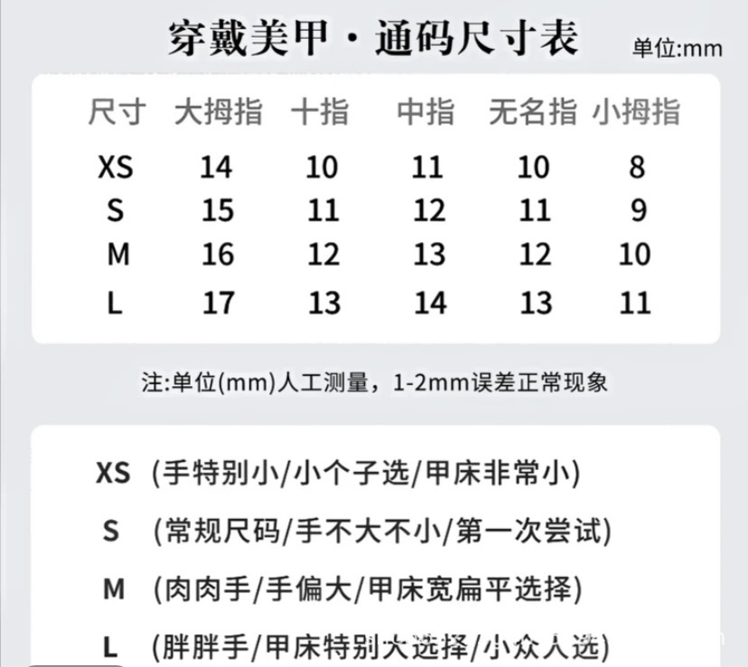 | size m (meat hand/hand is too large/nail art bed is too flat)(M码(肉肉手/手偏大/甲床偏平)) | USD $2.67 | 1000 set available |