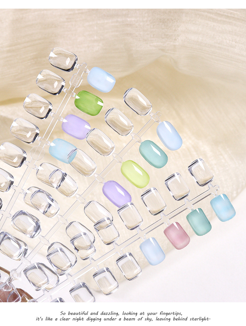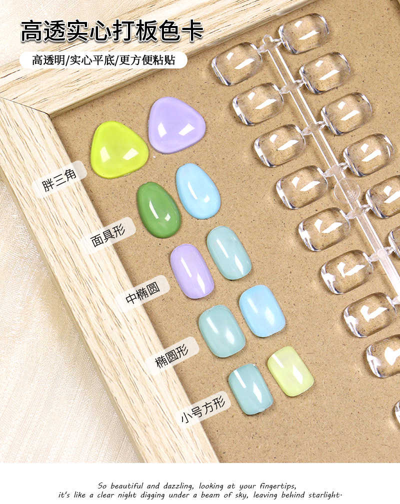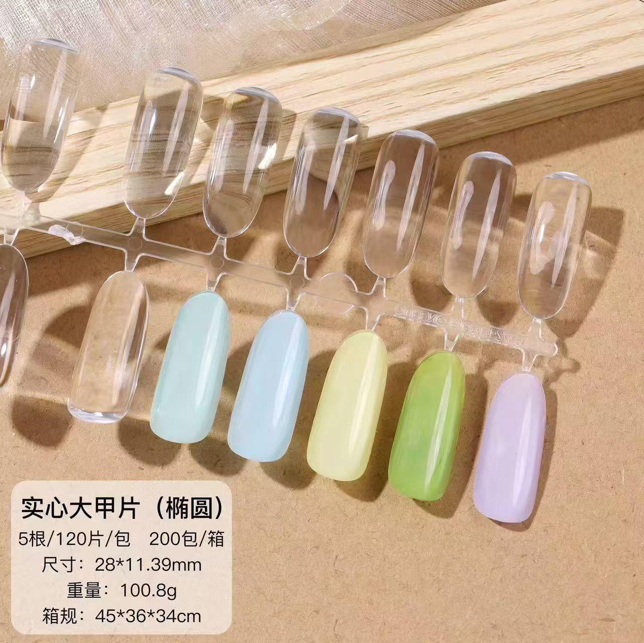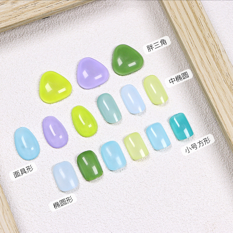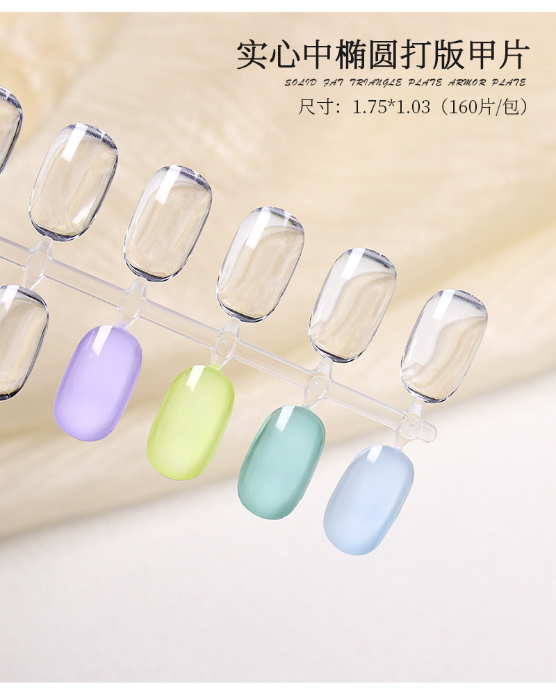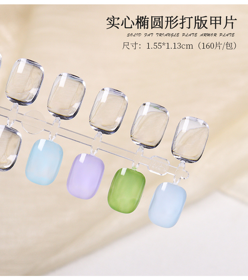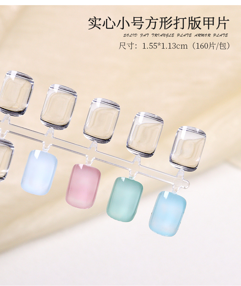 外贸新款日式美甲实心打版甲片短方圆实心高透亮色卡美甲店专用