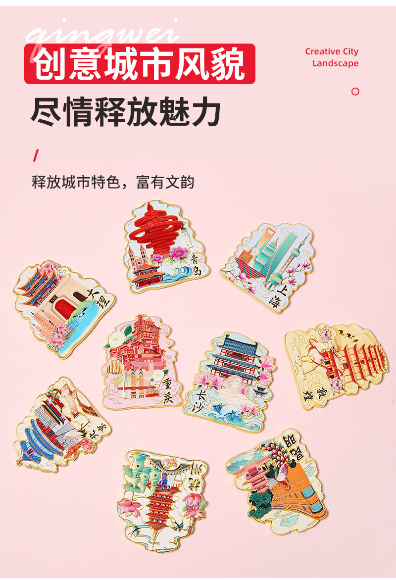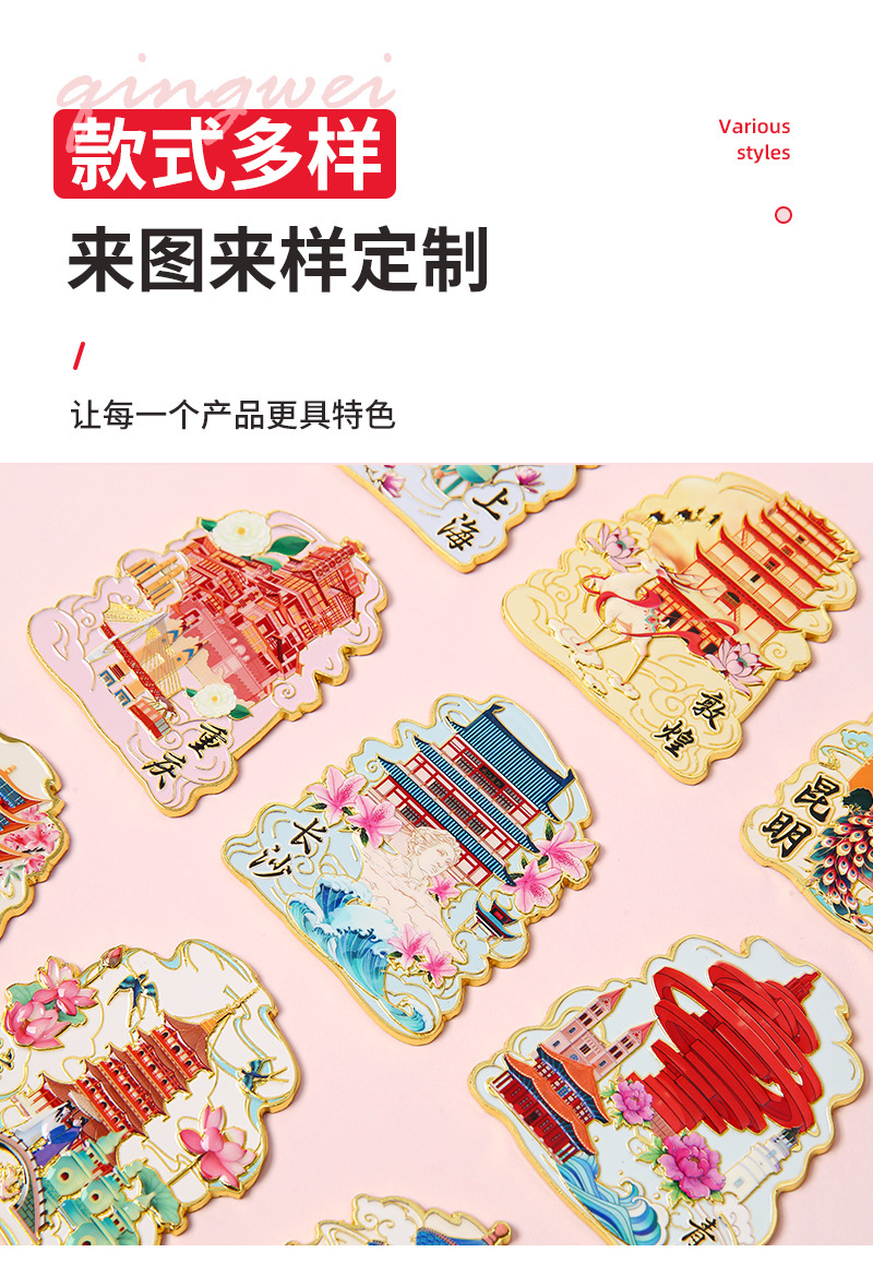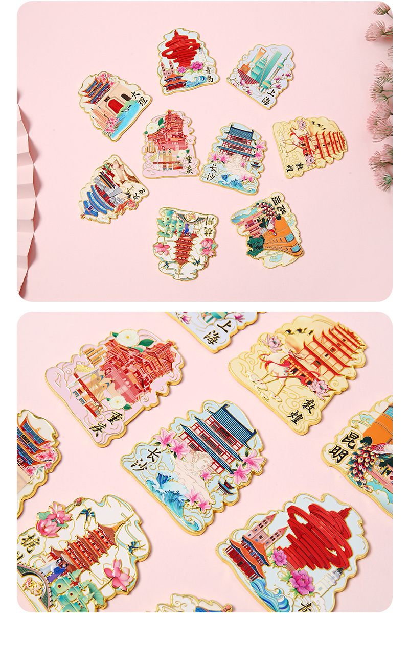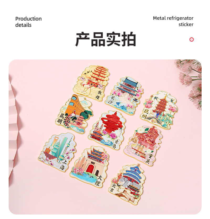 城市文创金属冰箱贴定制 北京上海旅游冰箱贴景点地标纪念品批发