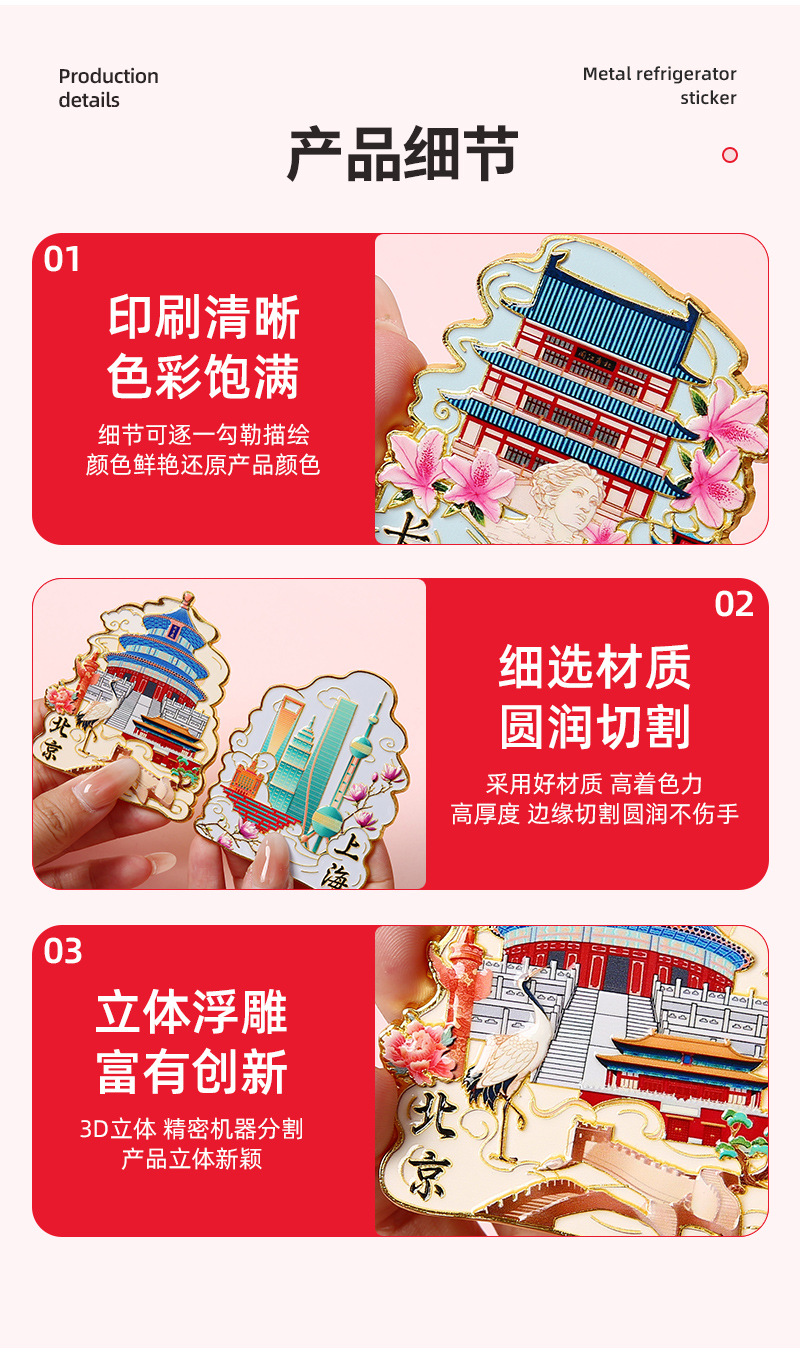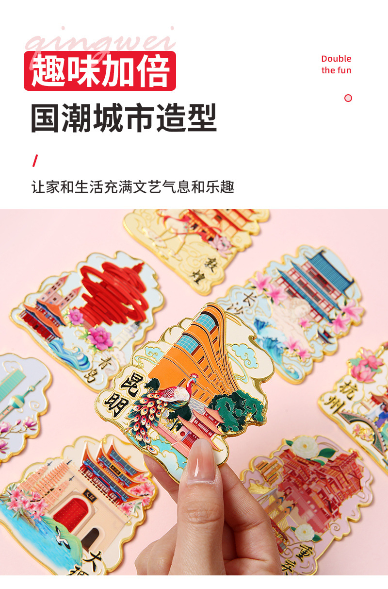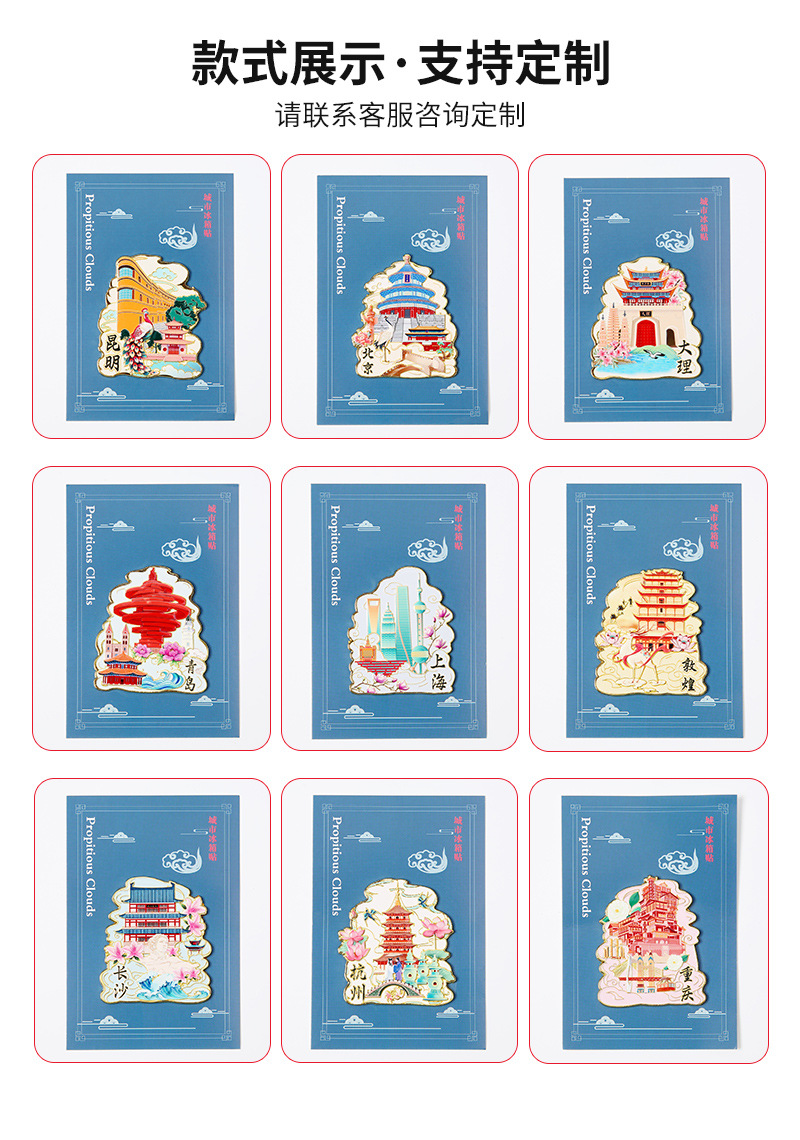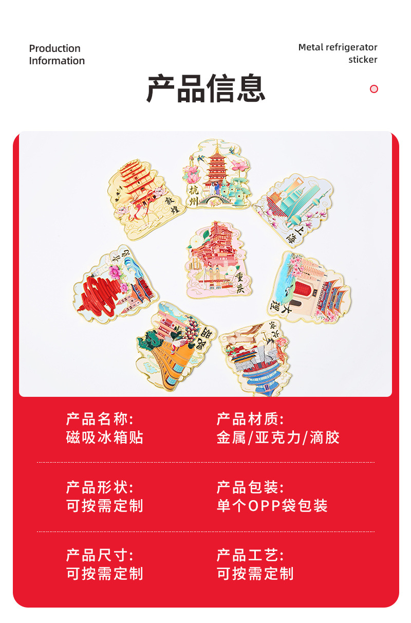 城市文创金属冰箱贴定制 北京上海旅游冰箱贴景点地标纪念品批发