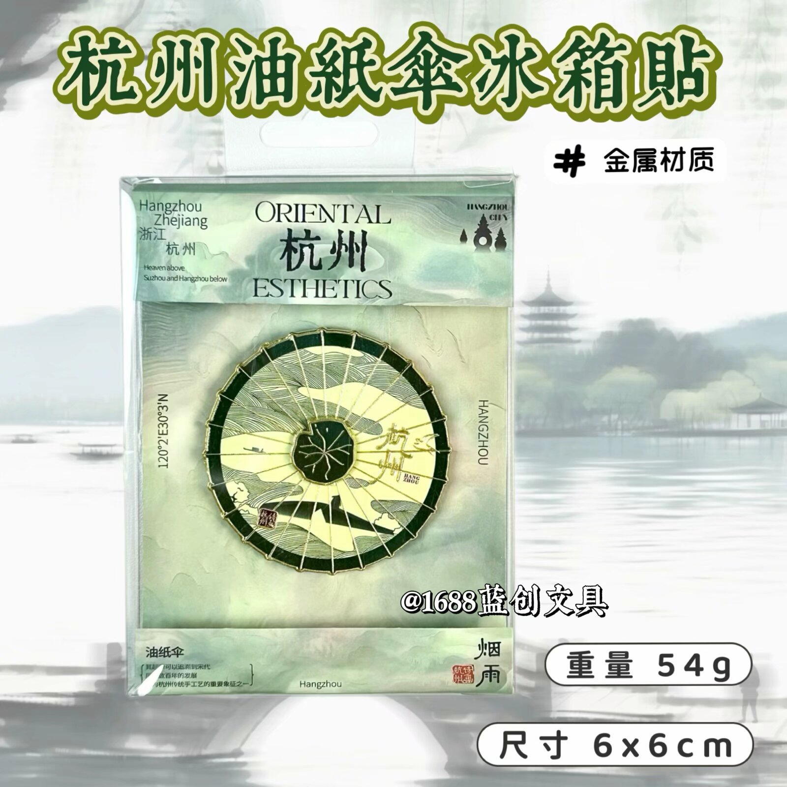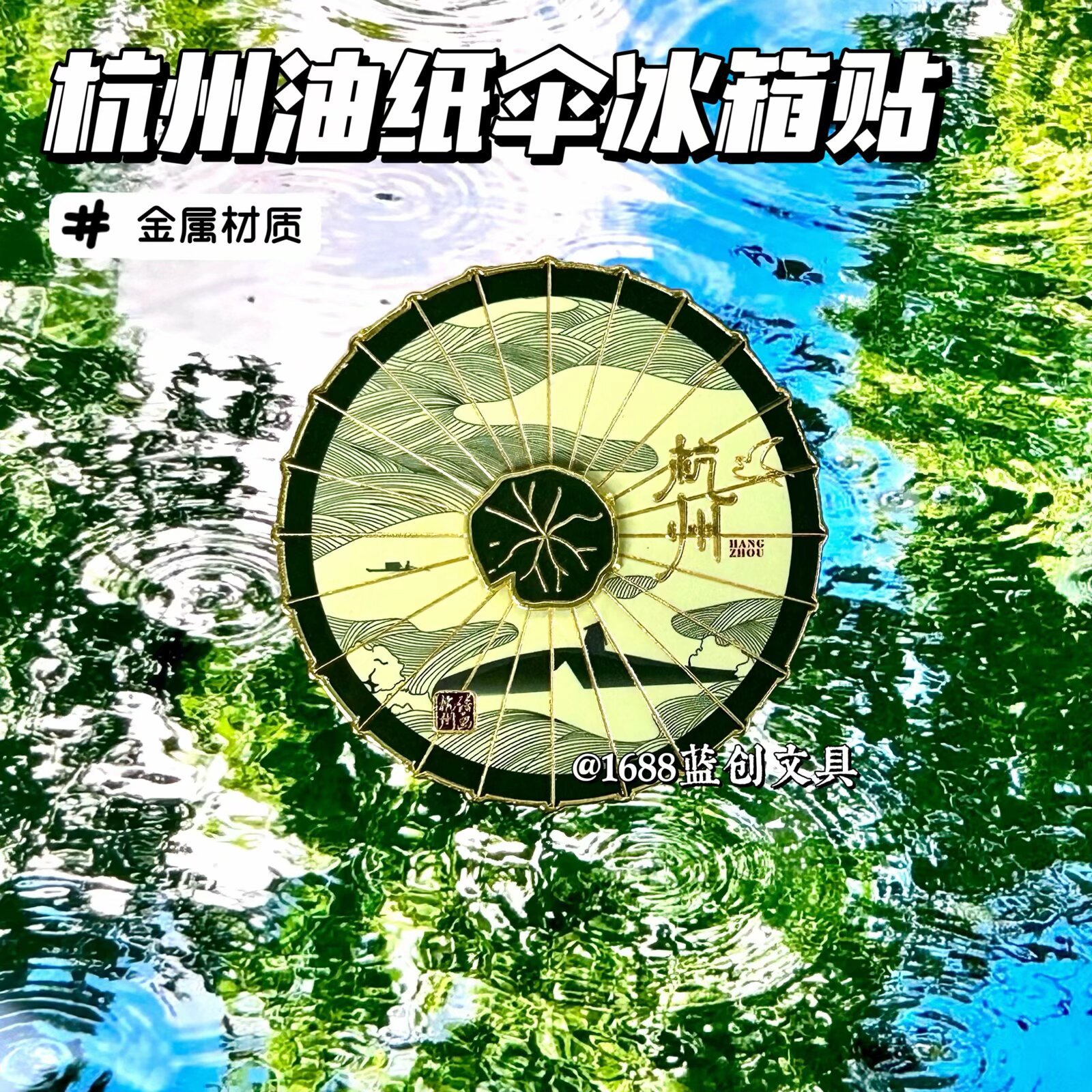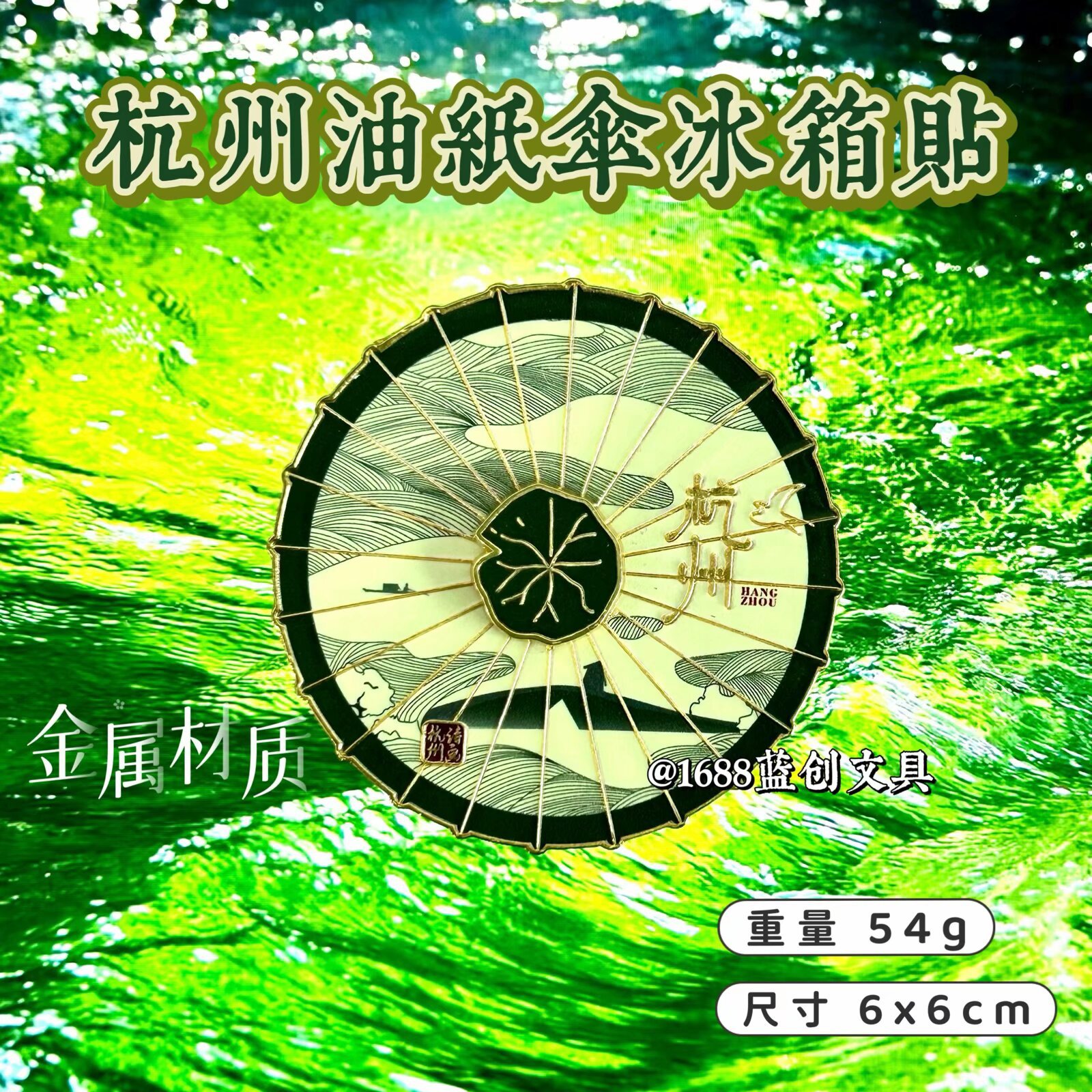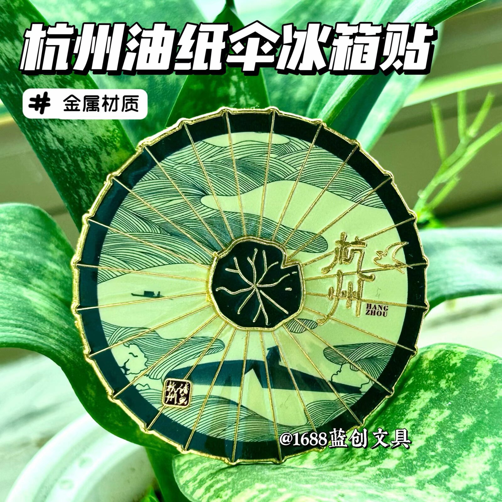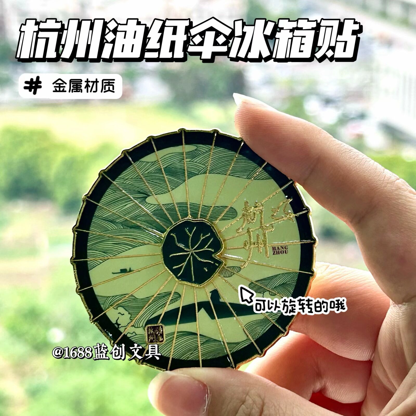 厂家直销文创杭州油纸伞旅游纪念伴手礼礼物旋转磁吸金属冰箱贴