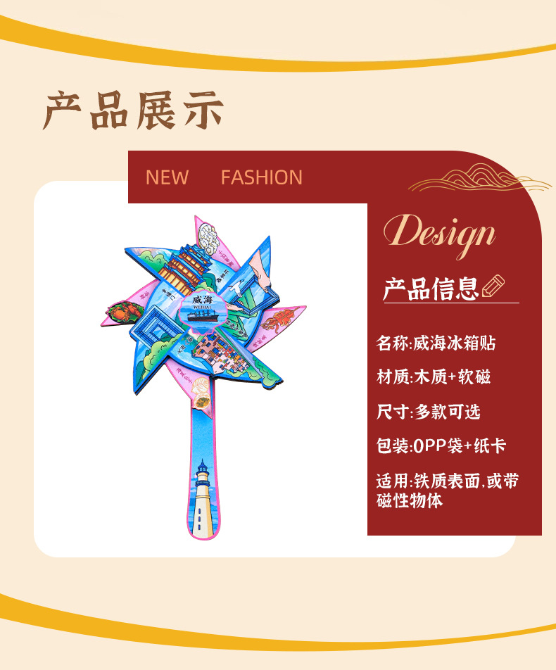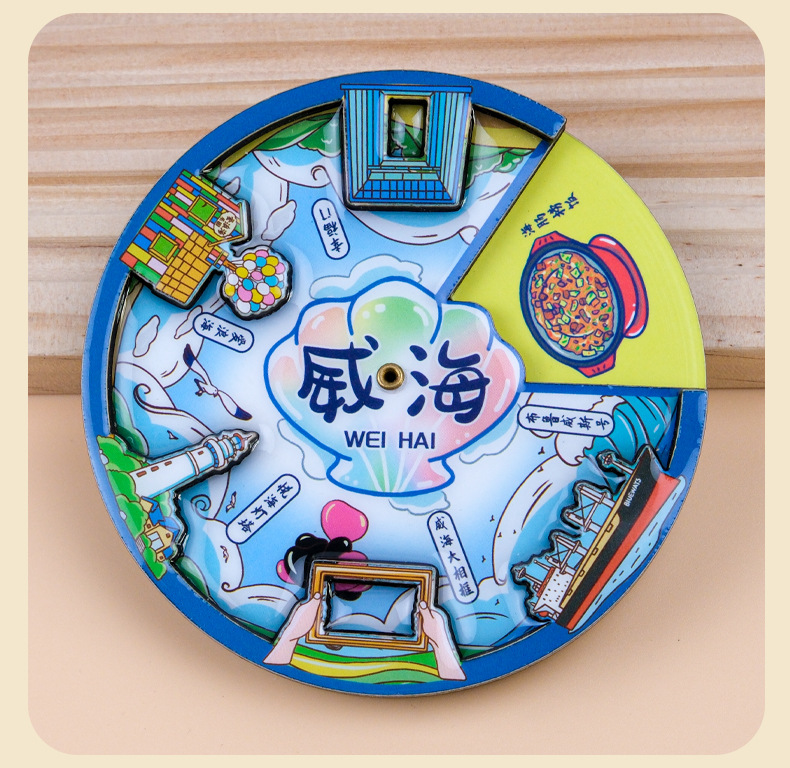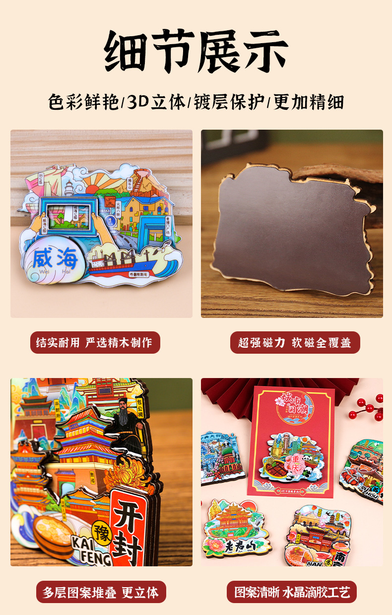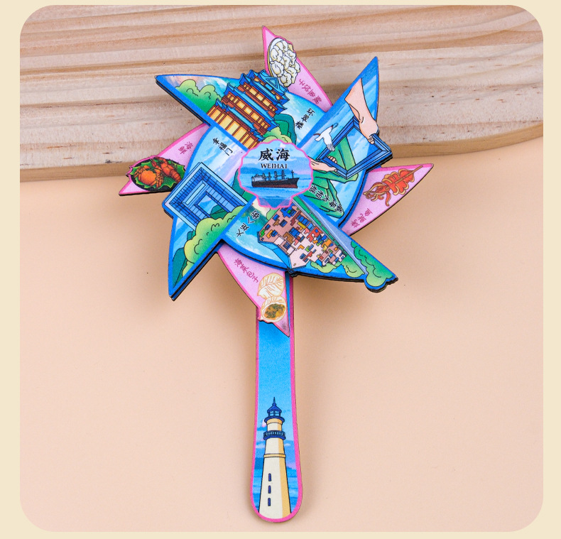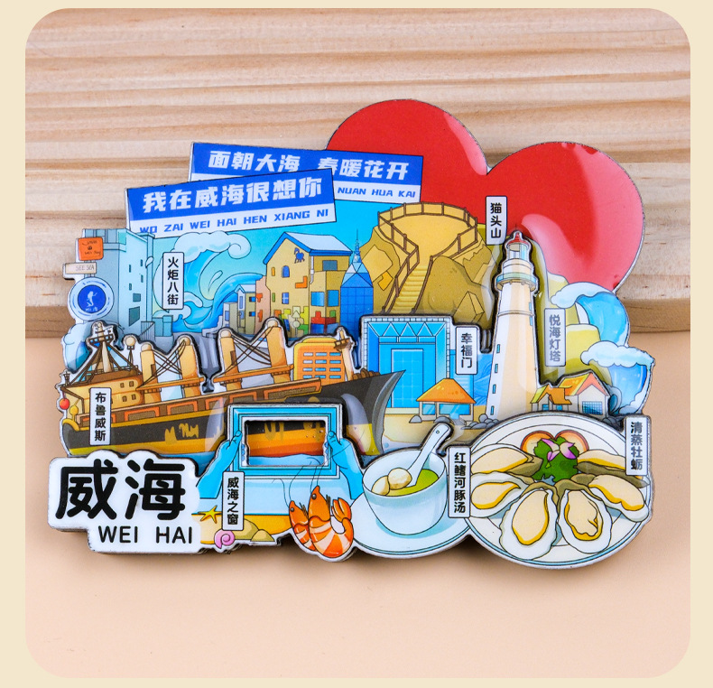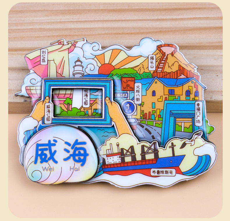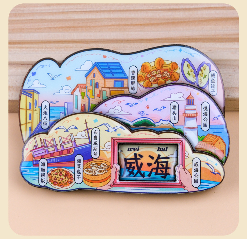 威海城市旅游冰箱贴威海景区地标旅行纪念国潮立体木质滴胶冰箱贴