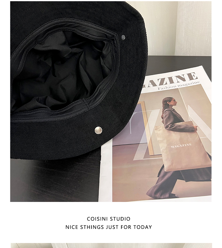 高品质灯芯绒渔夫帽子女秋冬季新款休闲百搭显脸小一帽多戴小礼帽