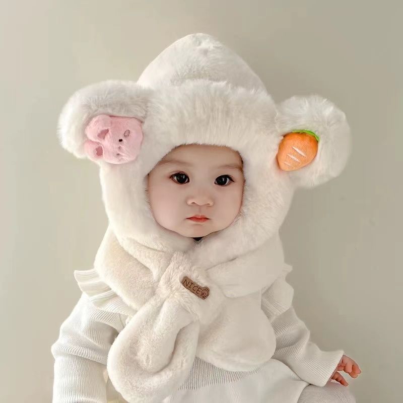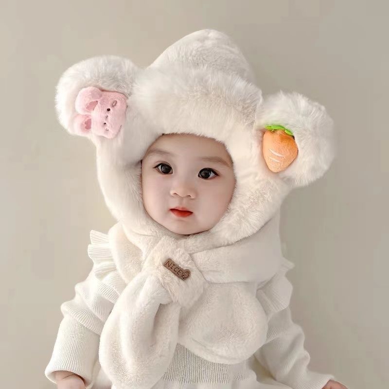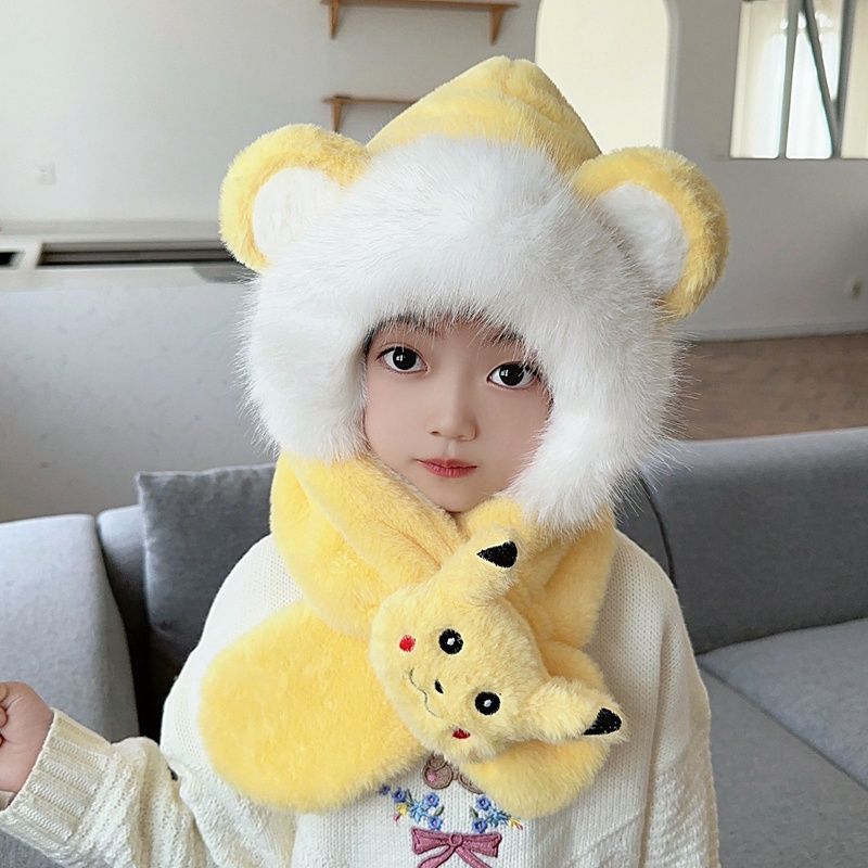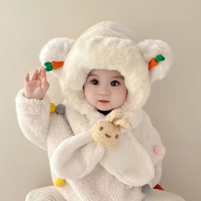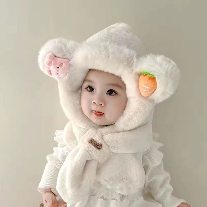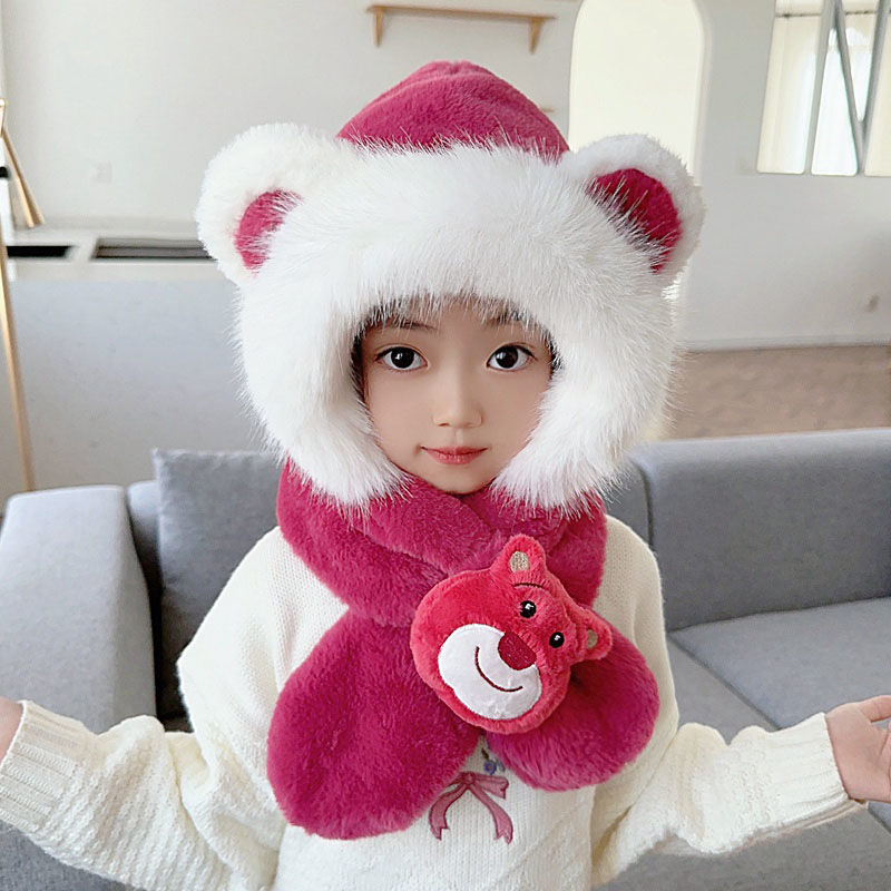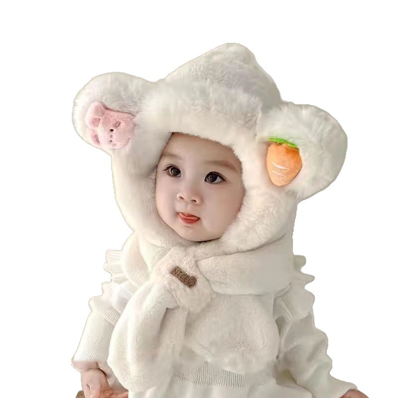 儿童帽子围巾一体秋冬季毛绒卡通两件套超萌男女童保暖加厚护耳帽