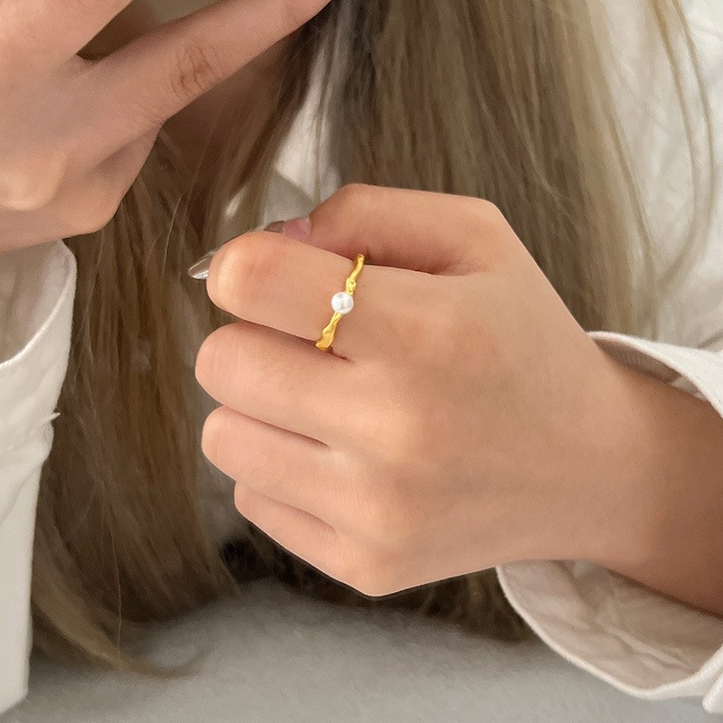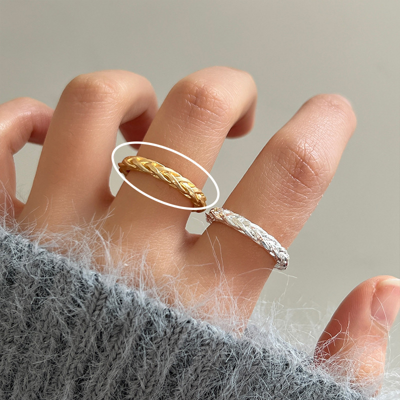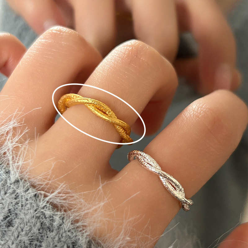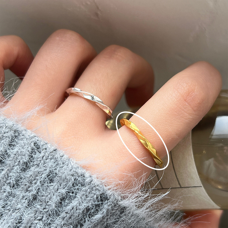 高级感金色戒指女小众设计指环时尚个性戒子简约冷淡风复古食指戒
