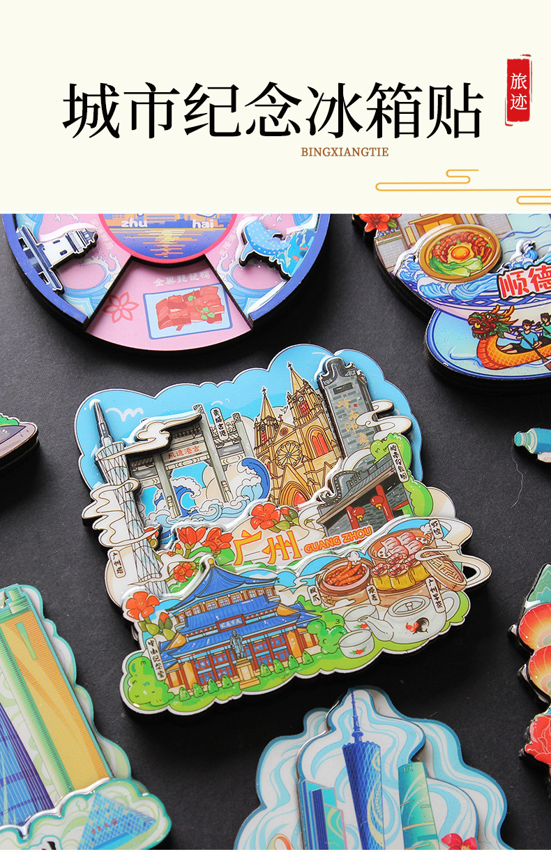 广东城市冰箱贴广州深圳顺德惠州潮州佛山珠海汕头旅游景点纪念品