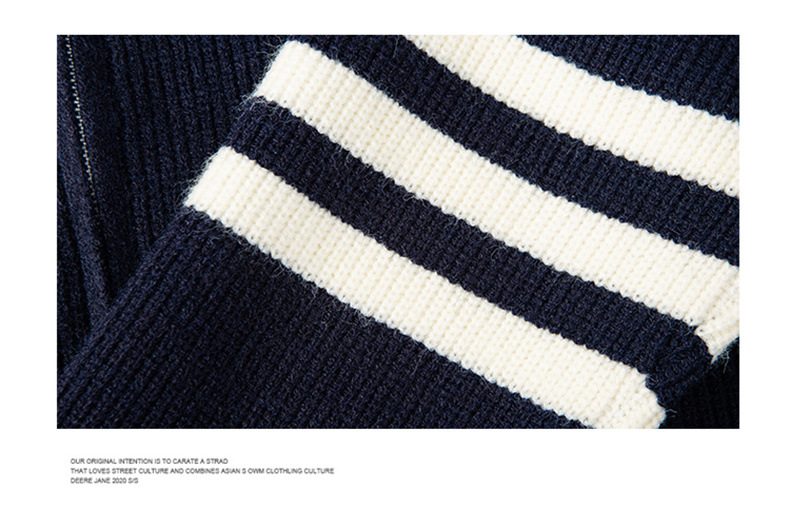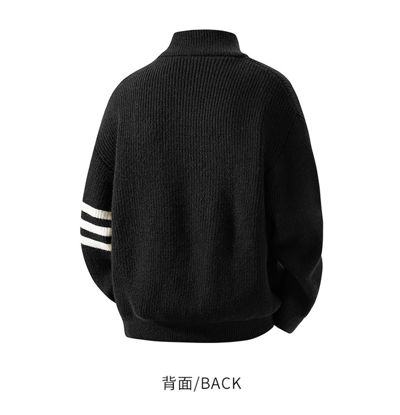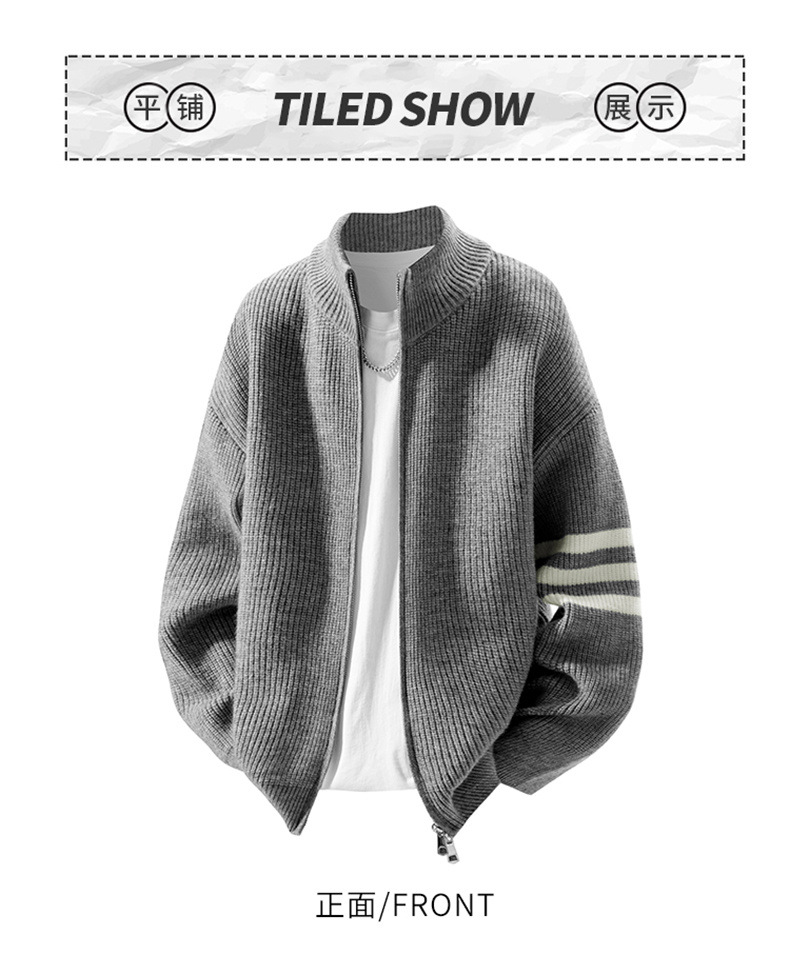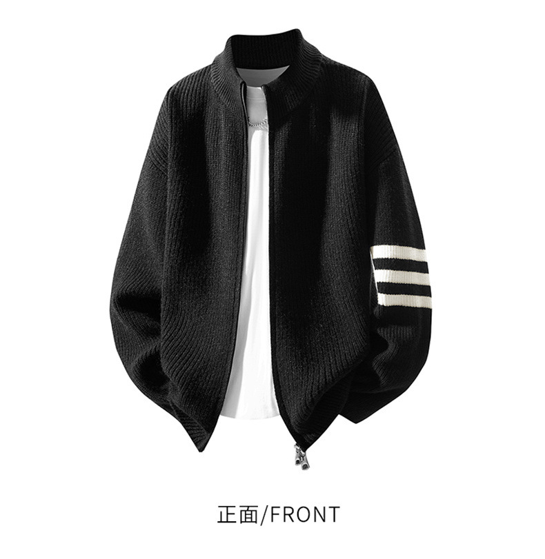 三杆条纹针织衫毛衣男开衫外套立领秋冬宽松慵懒爆款外贸跨境批发
