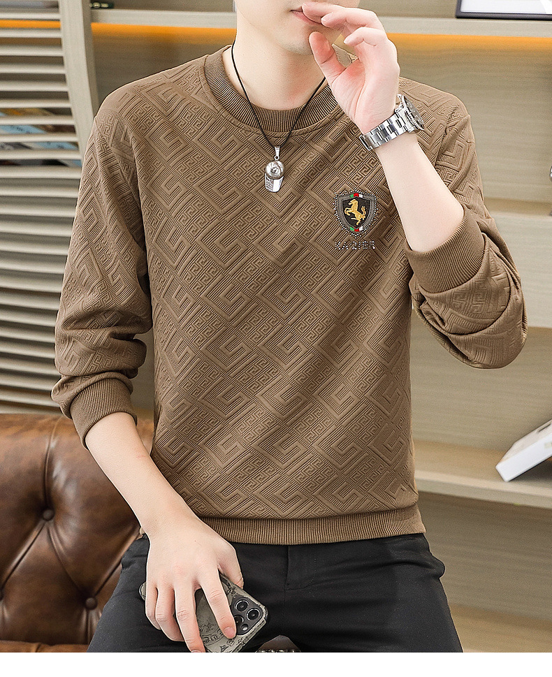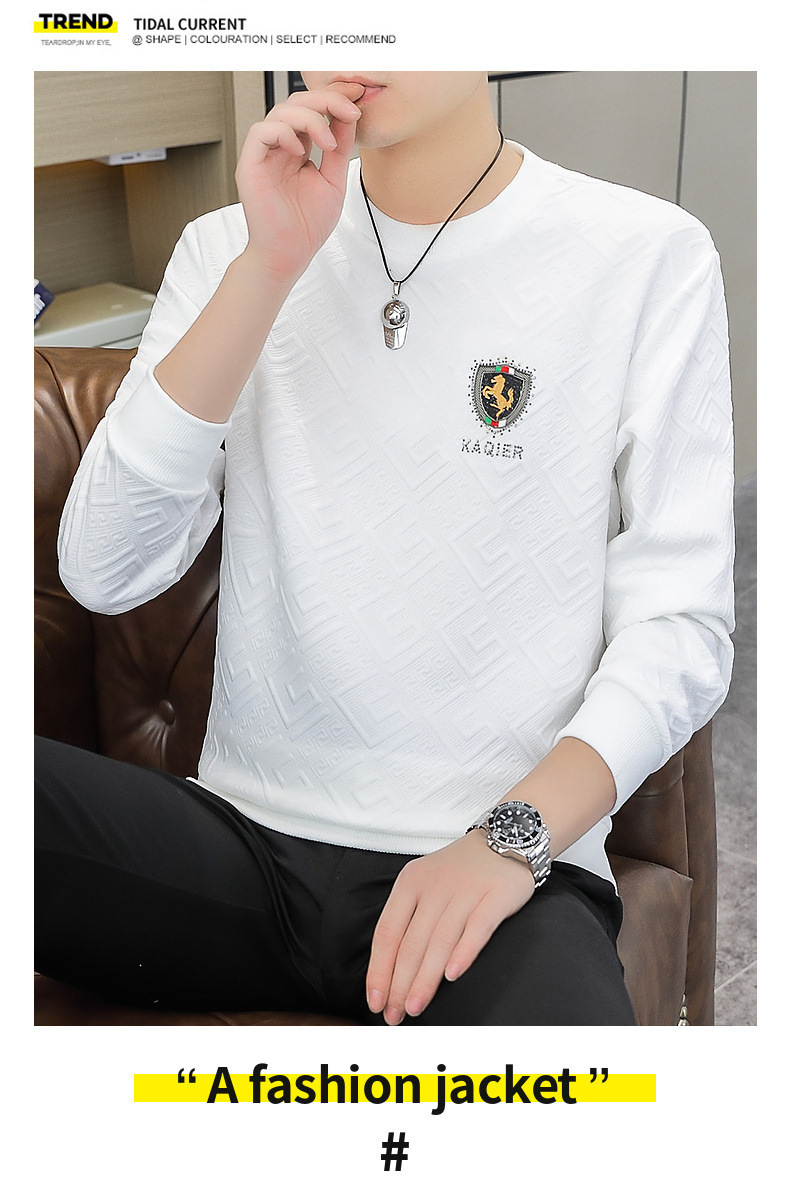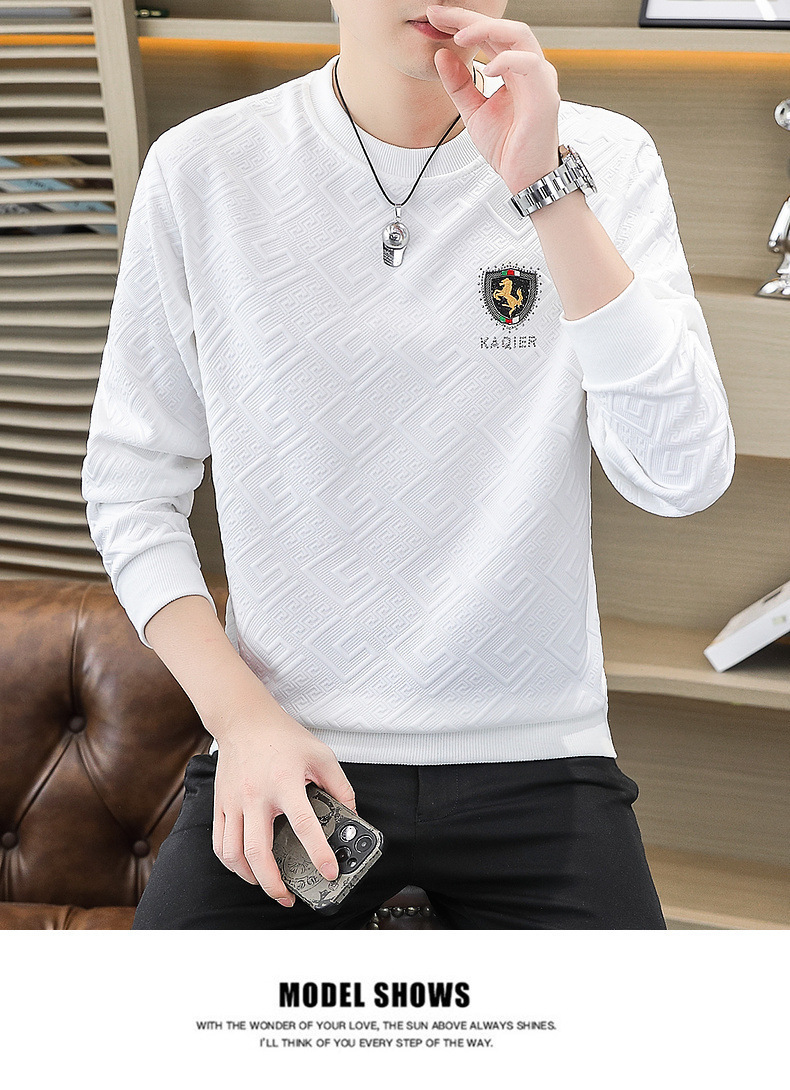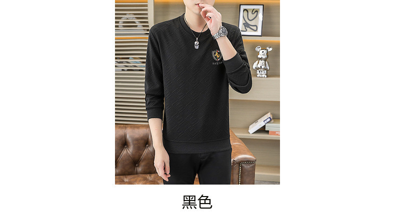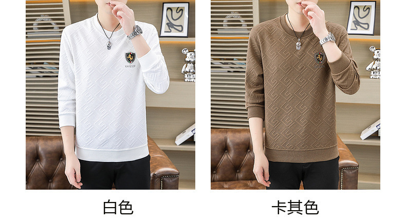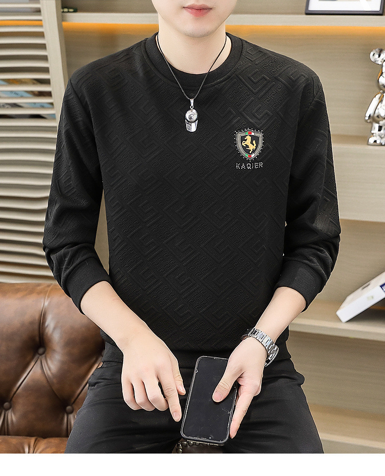 爆款圆领卫衣男士秋冬季加绒加厚长袖宽松修身体恤潮流青年打底衫