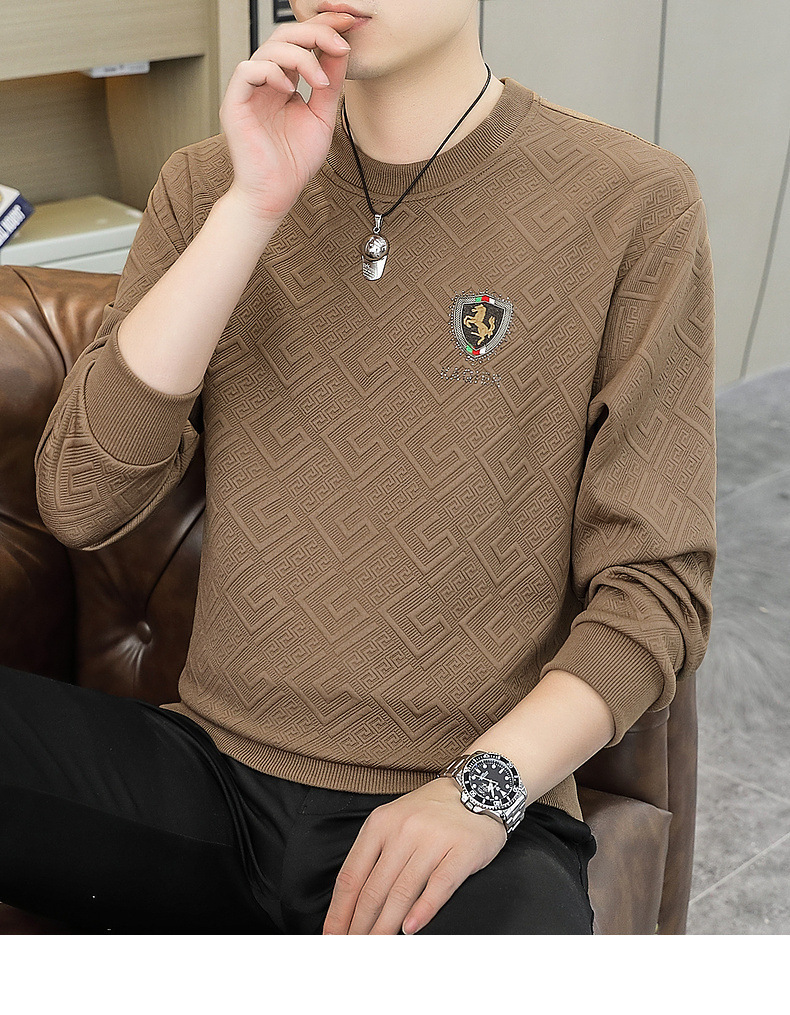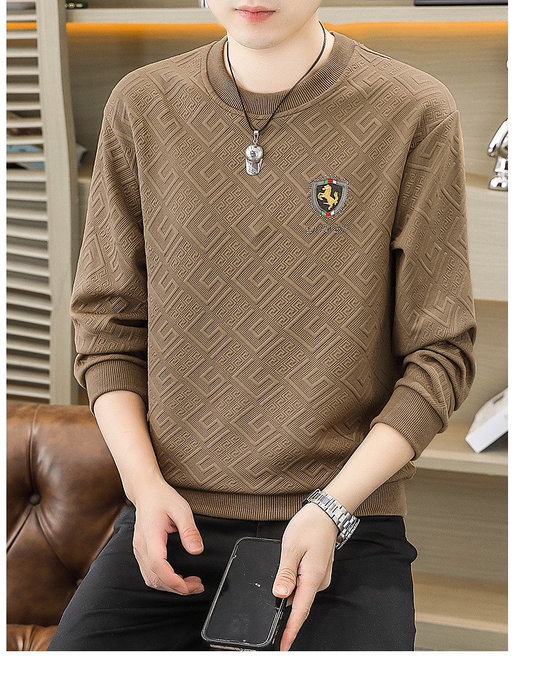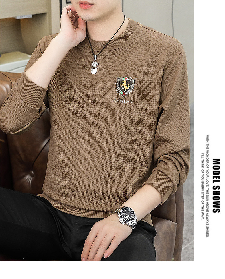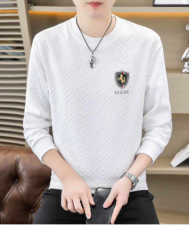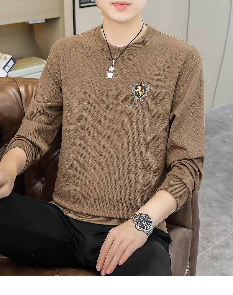 爆款圆领卫衣男士秋冬季加绒加厚长袖宽松修身体恤潮流青年打底衫