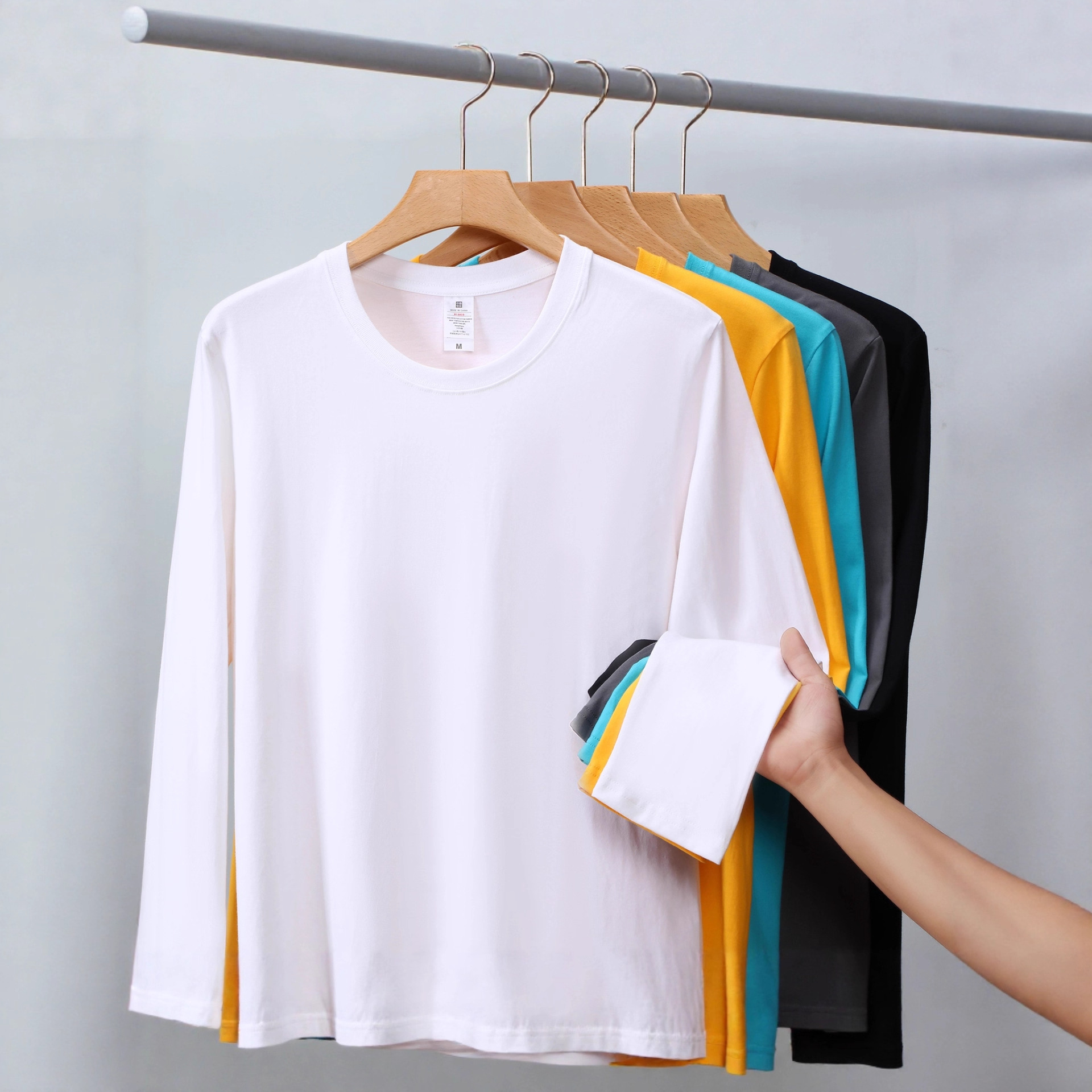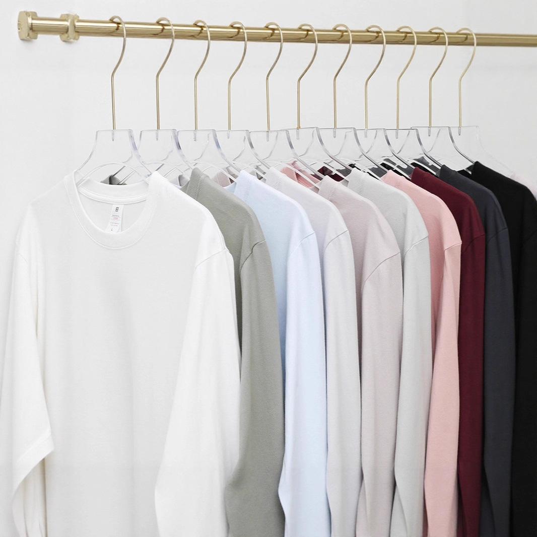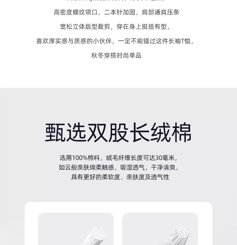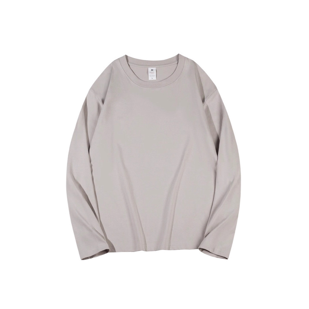 230克秋季重磅纯色长袖t恤男纯棉印花logo圆领白色体恤打底衫定制
