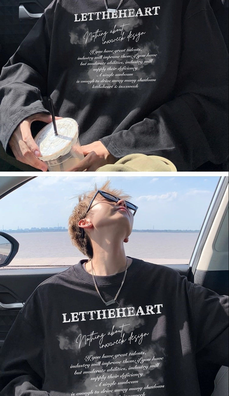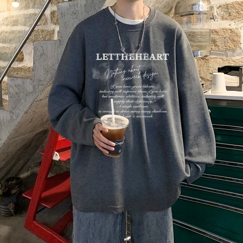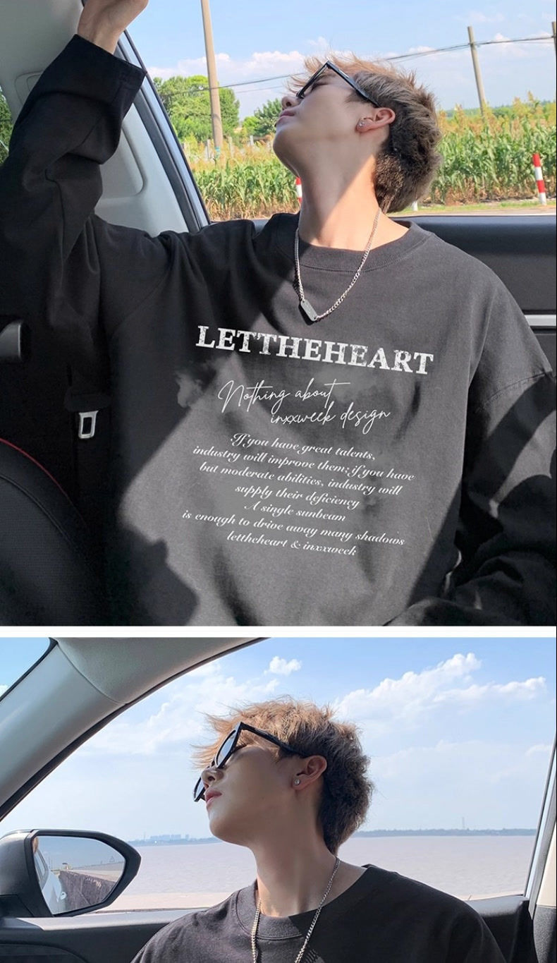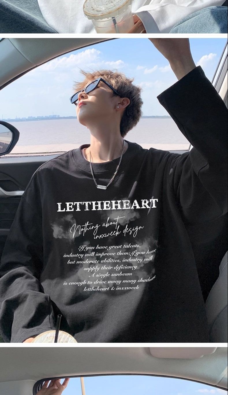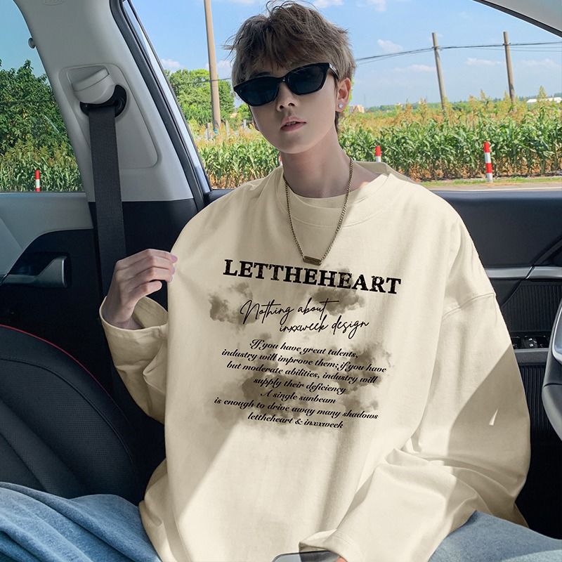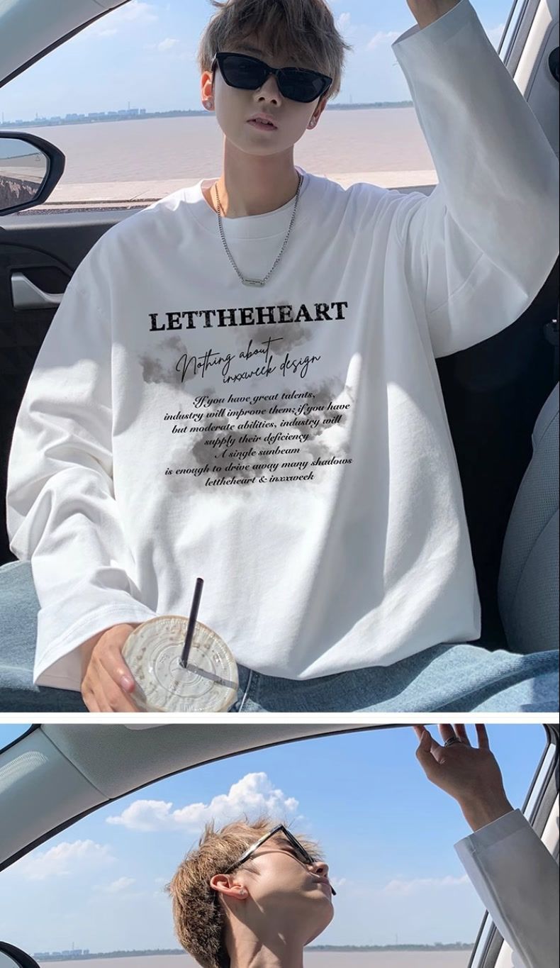 美式纯棉长袖t恤男士秋冬季宽松大码卫衣白色内搭上衣男生打底衫