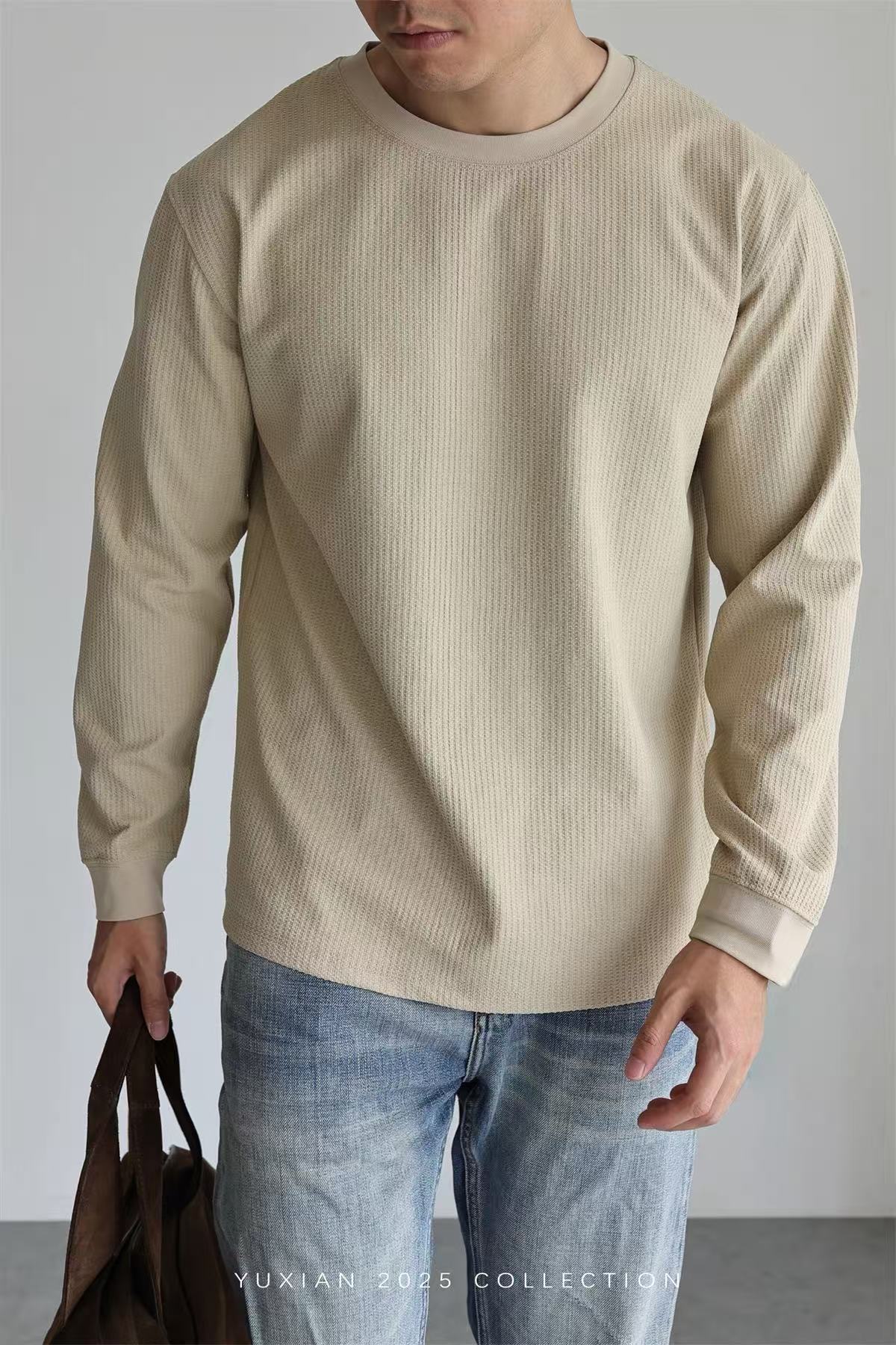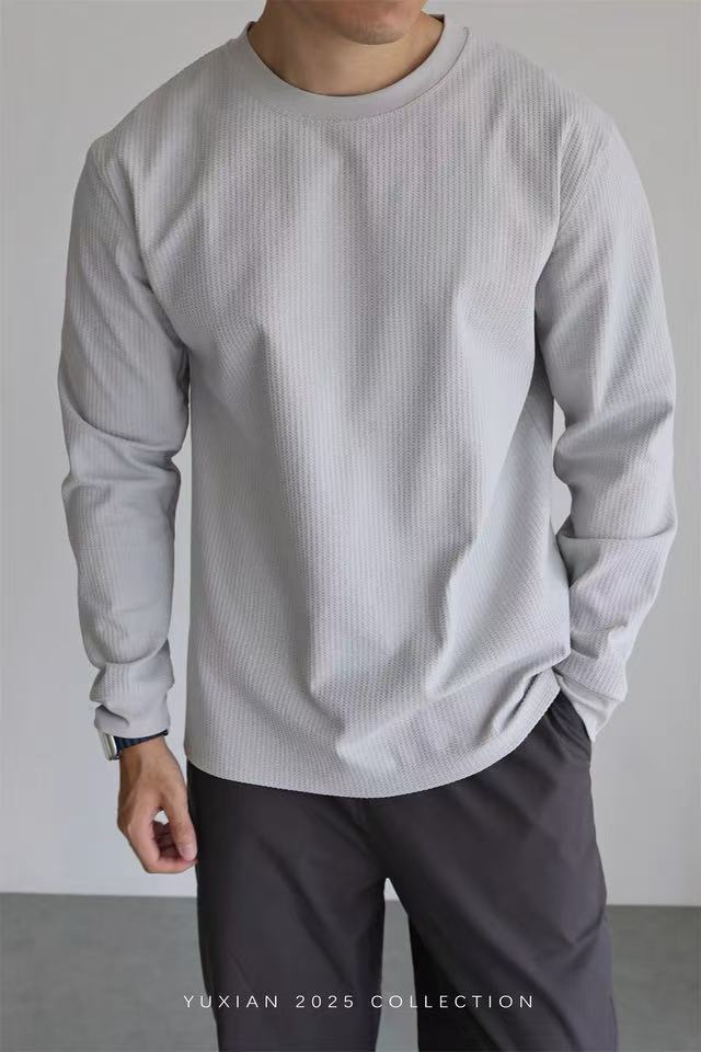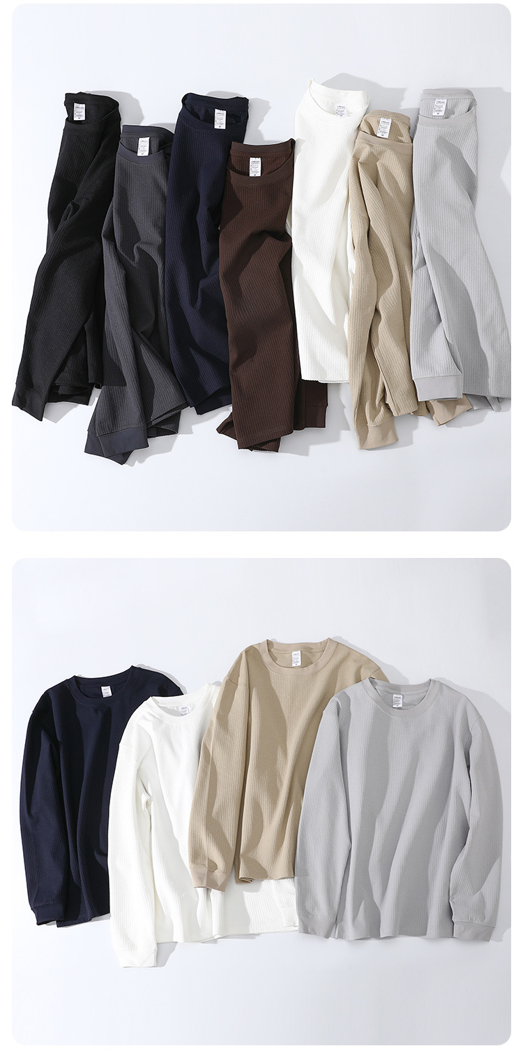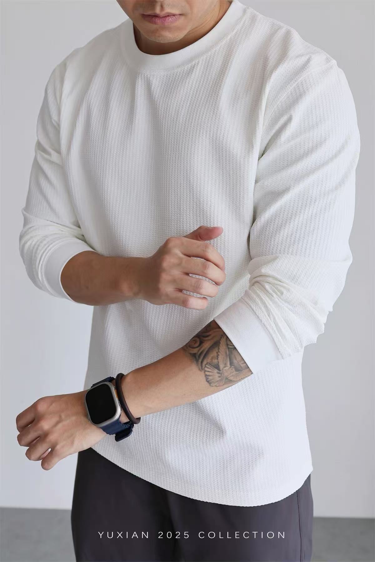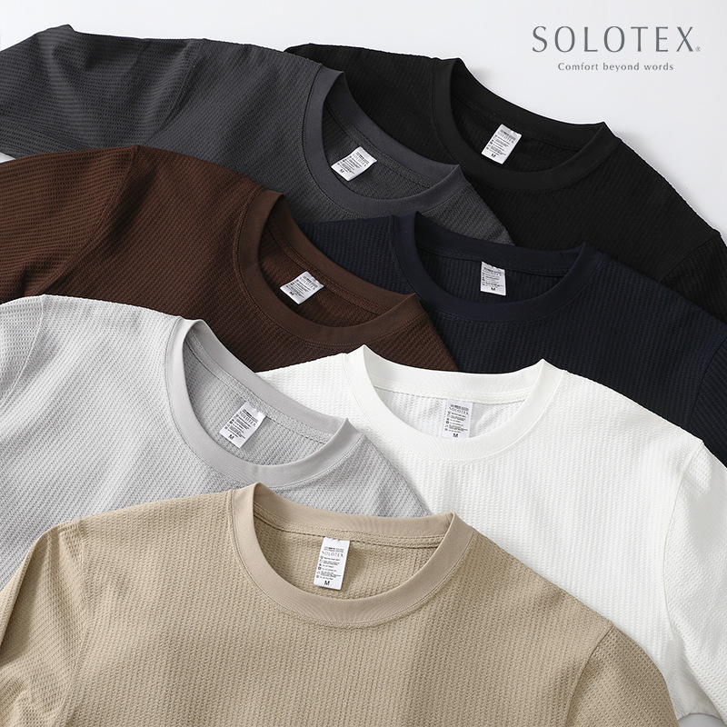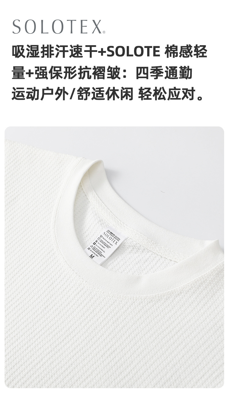 SOLOTEX轻量华夫格长袖T恤男新款潮流运动260g宽松休闲男式打底衫