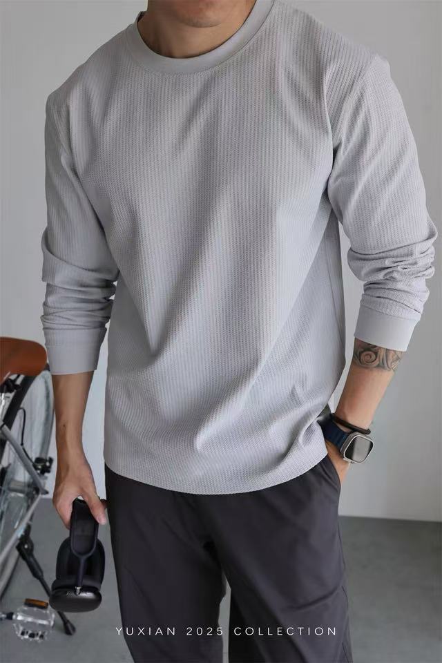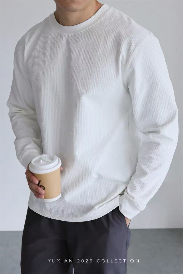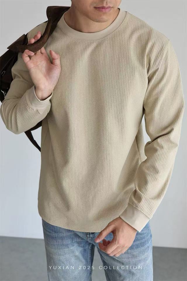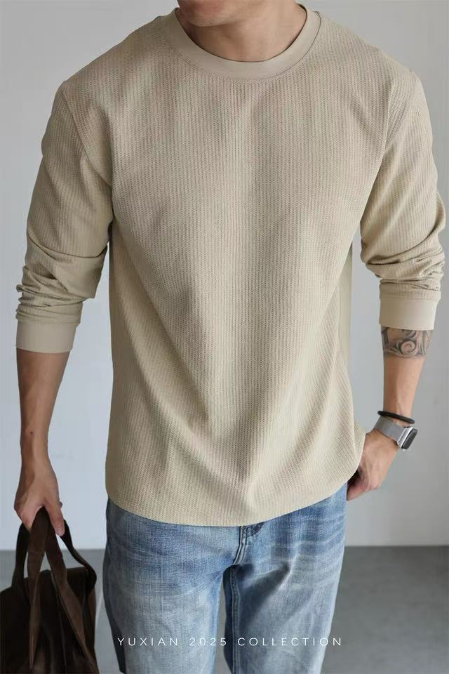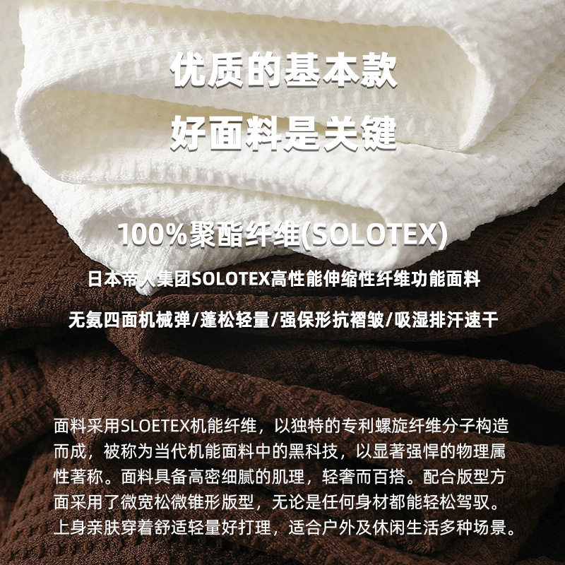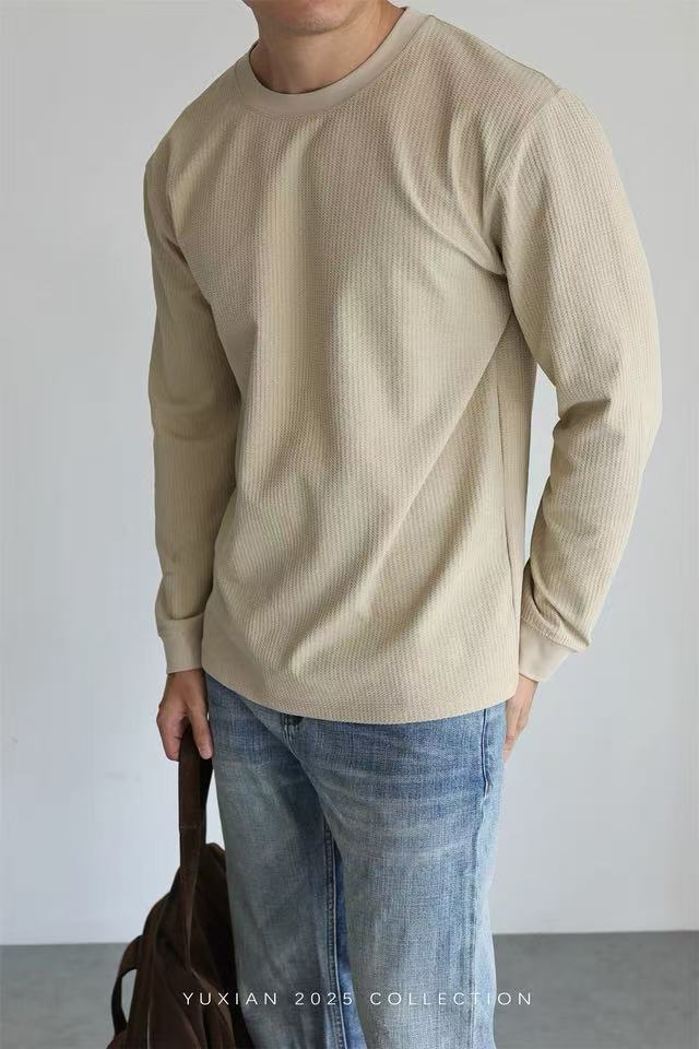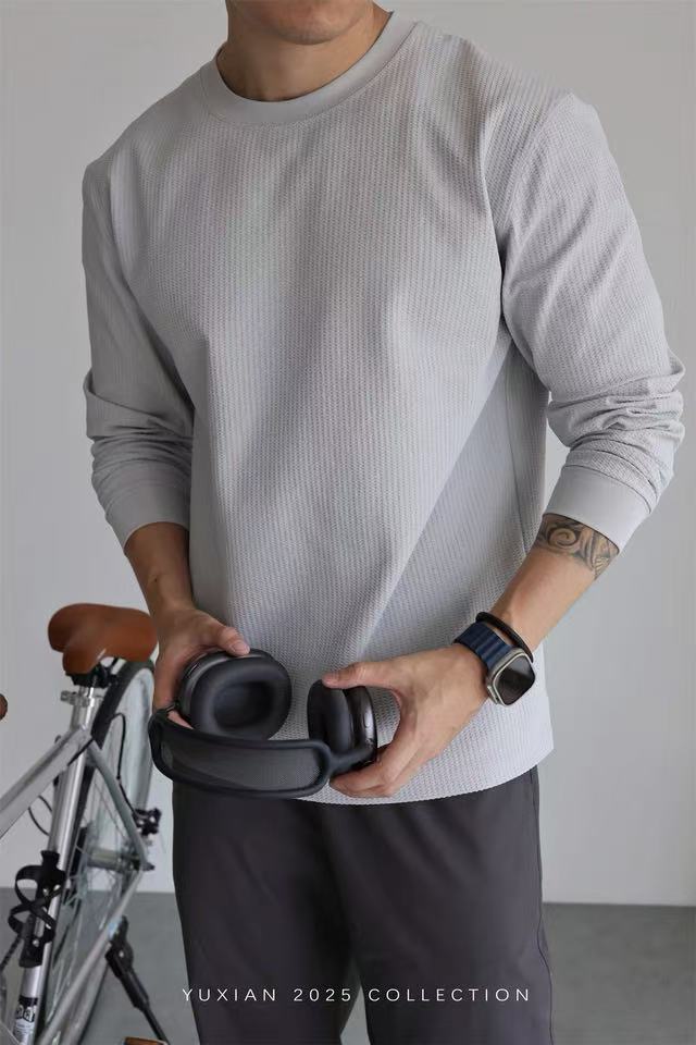 SOLOTEX轻量华夫格长袖T恤男新款潮流运动260g宽松休闲男式打底衫