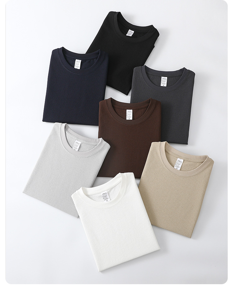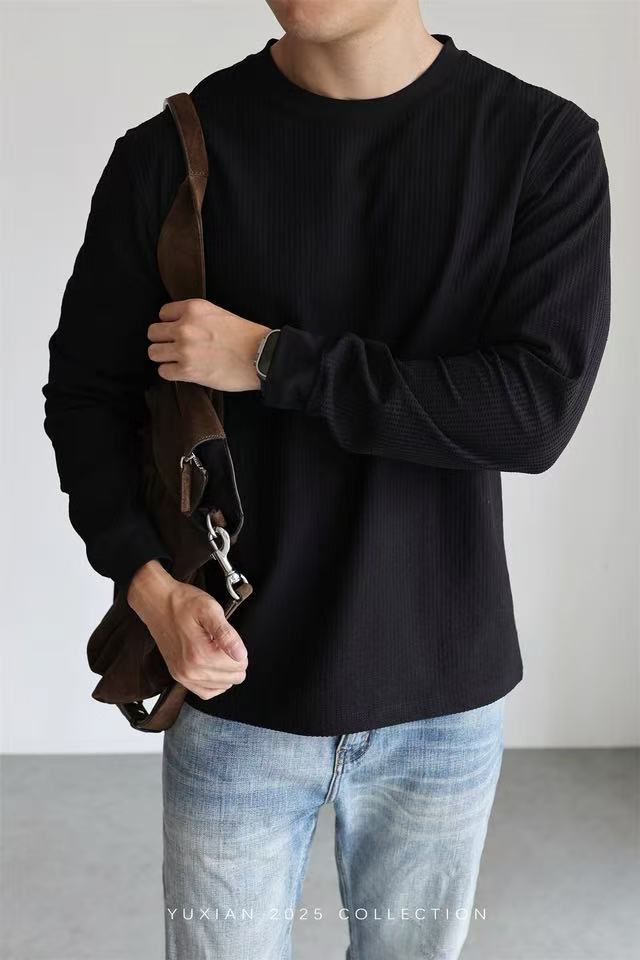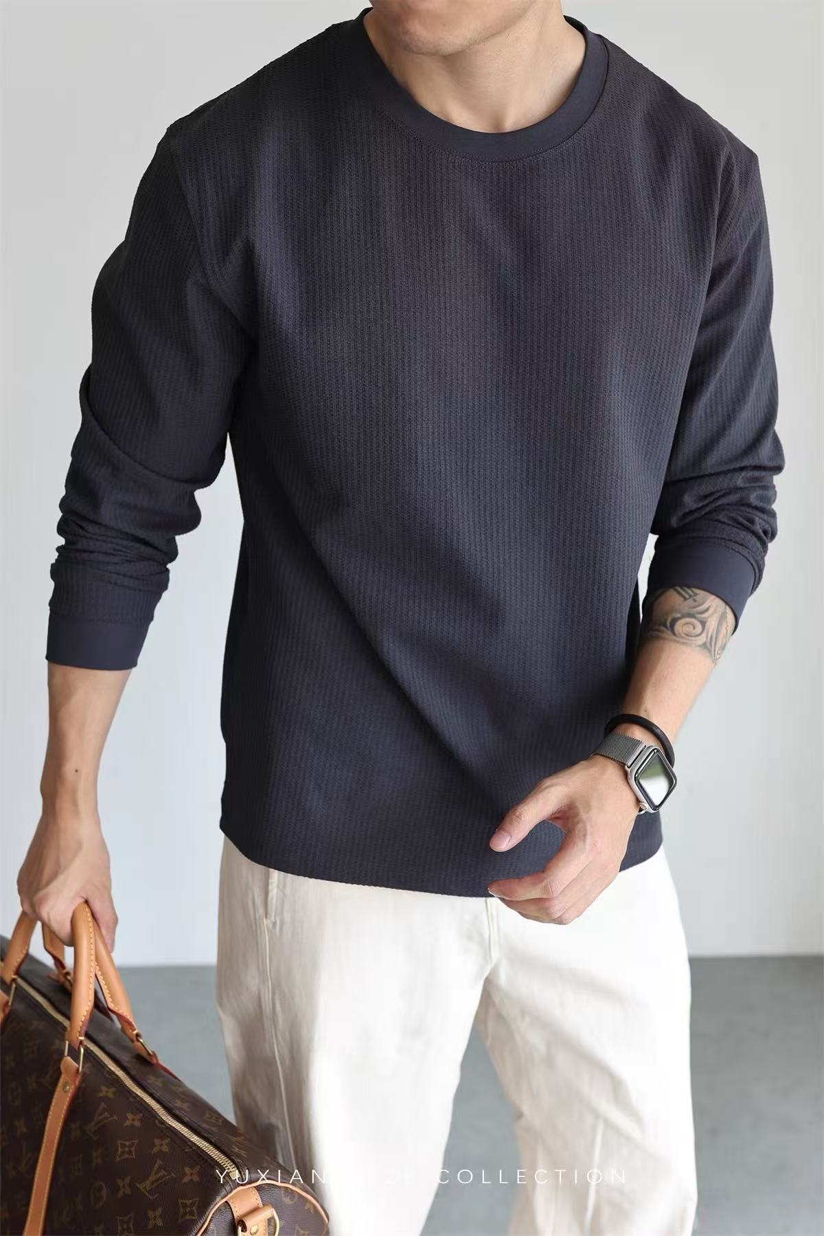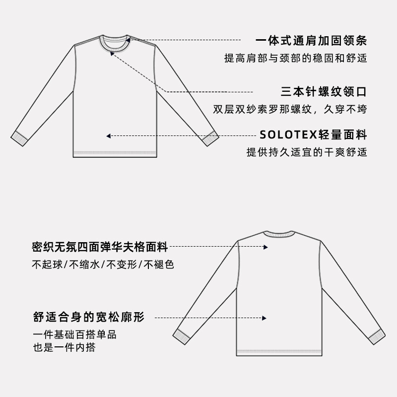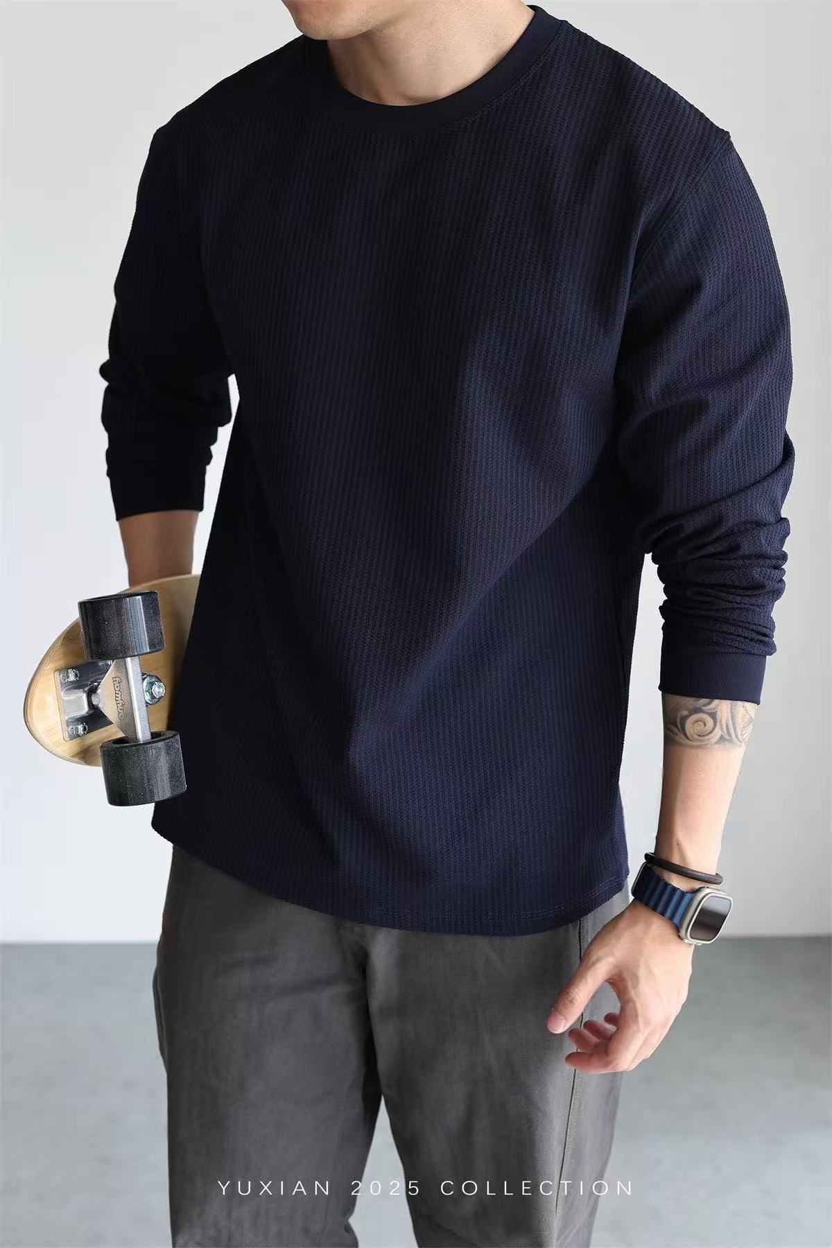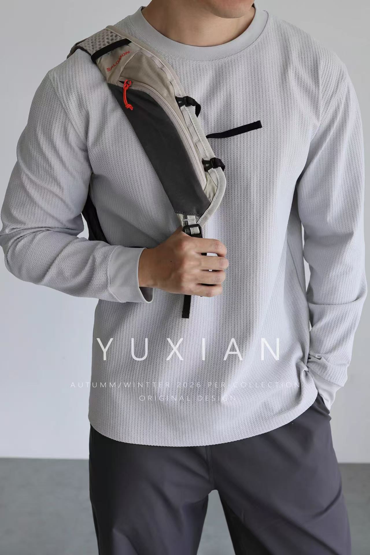 SOLOTEX轻量华夫格长袖T恤男新款潮流运动260g宽松休闲男式打底衫