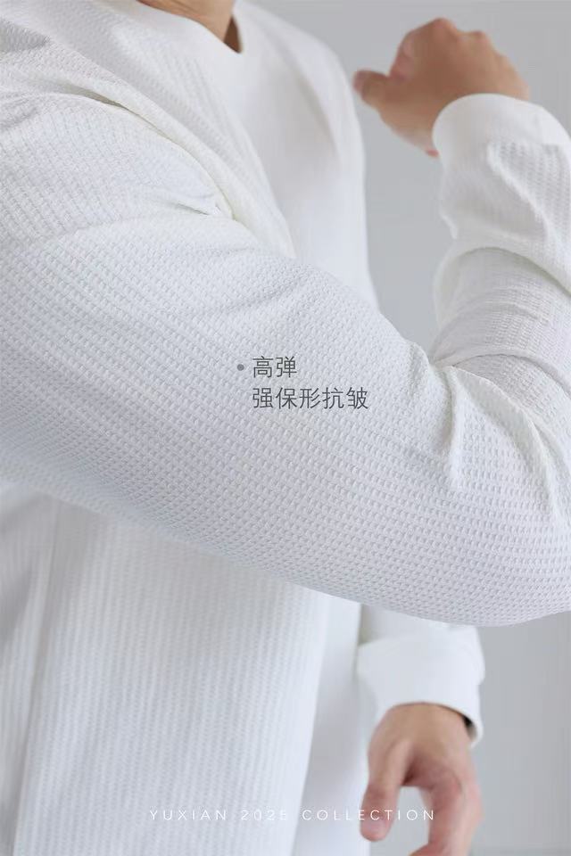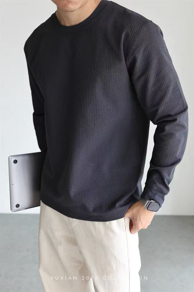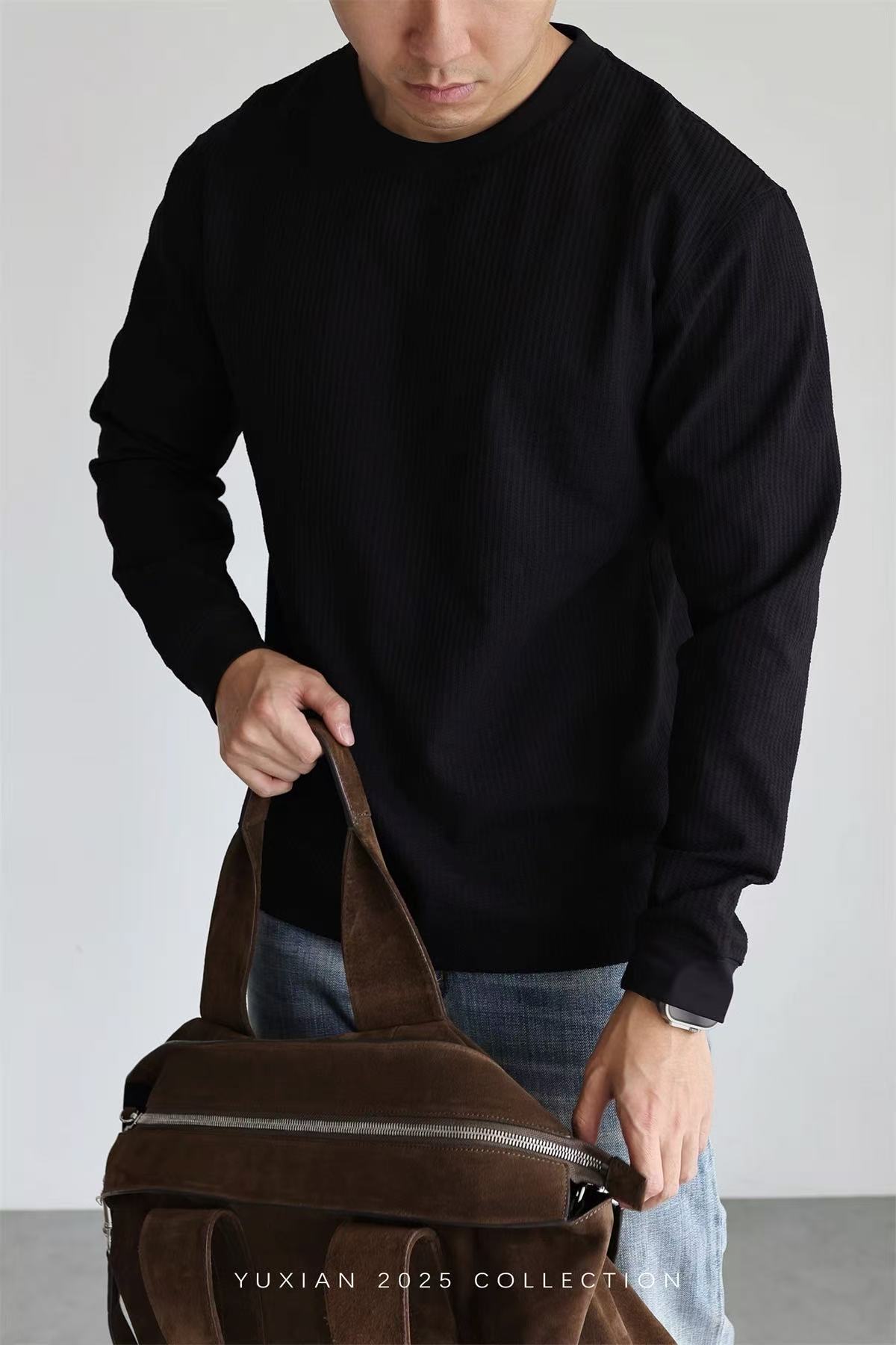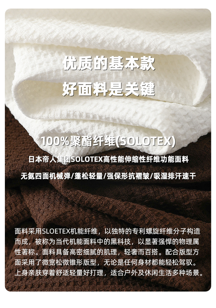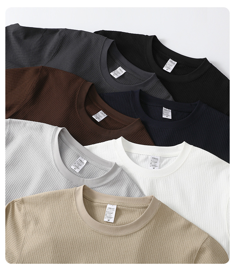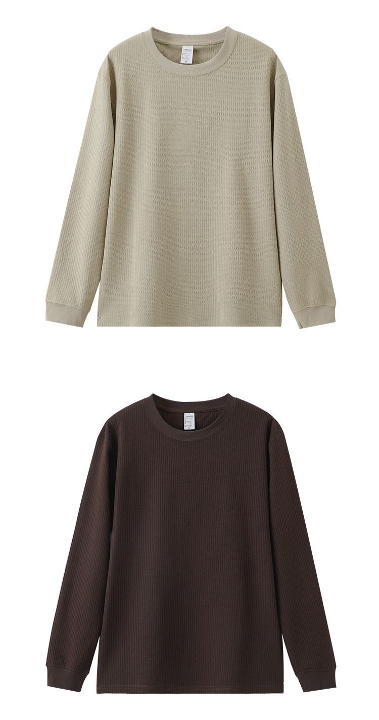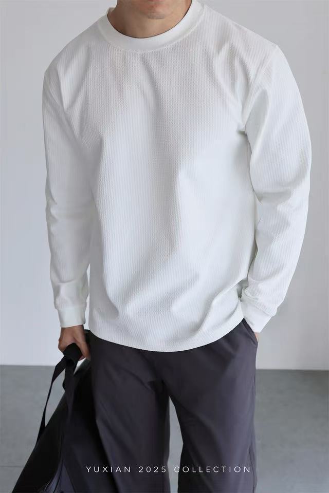 SOLOTEX轻量华夫格长袖T恤男新款潮流运动260g宽松休闲男式打底衫