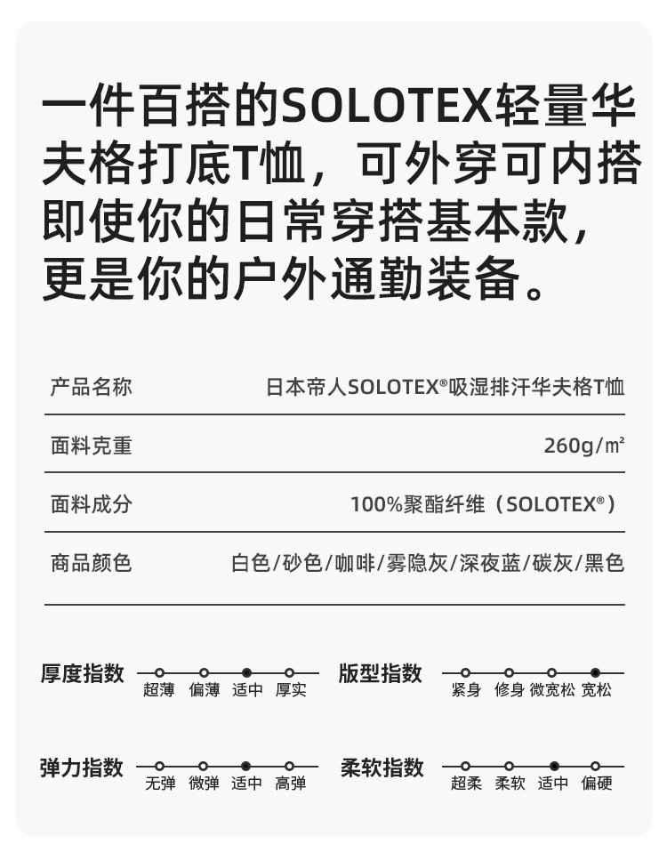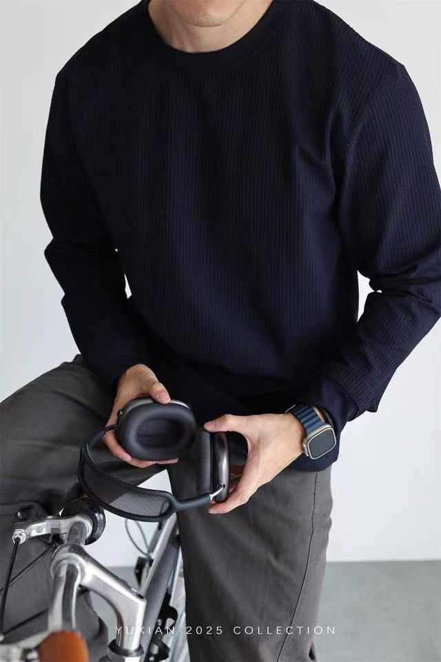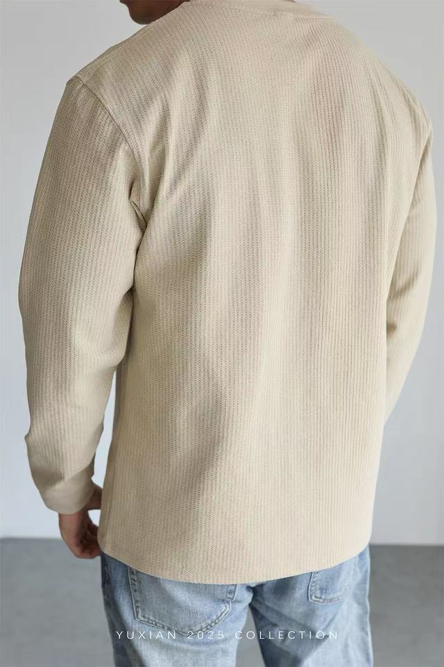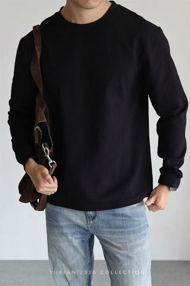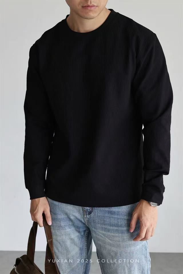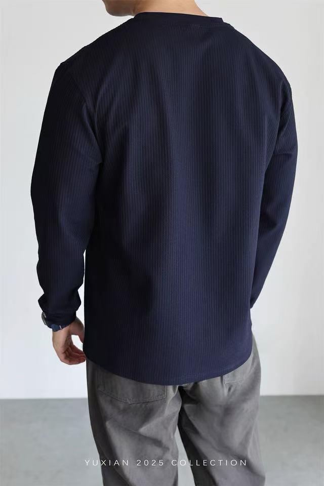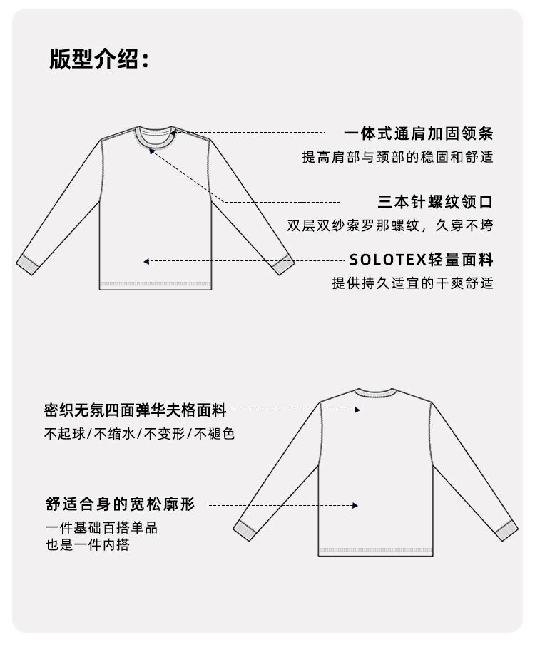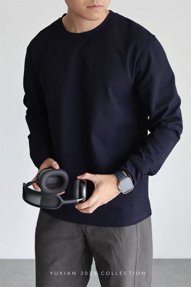 SOLOTEX轻量华夫格长袖T恤男新款潮流运动260g宽松休闲男式打底衫