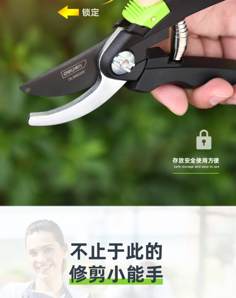 得力 DL580201修枝剪8寸修枝剪刀果树修剪园林园艺剪刀特氟龙刀头