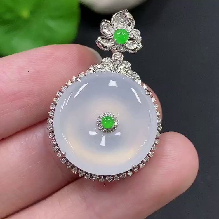 翡翠平安扣 18k金 真钻 总重量约8.79克工艺品