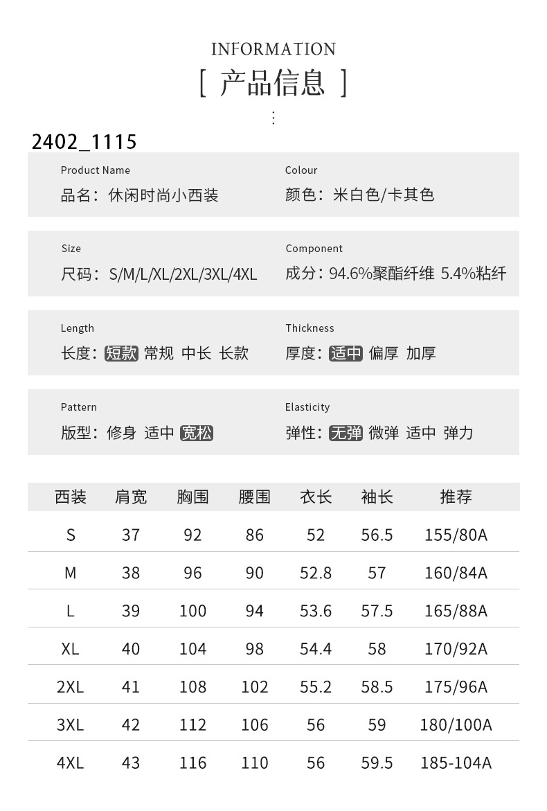 | 3XL 【适合128-135斤】 | USD $61.96 | 192 piece available |
