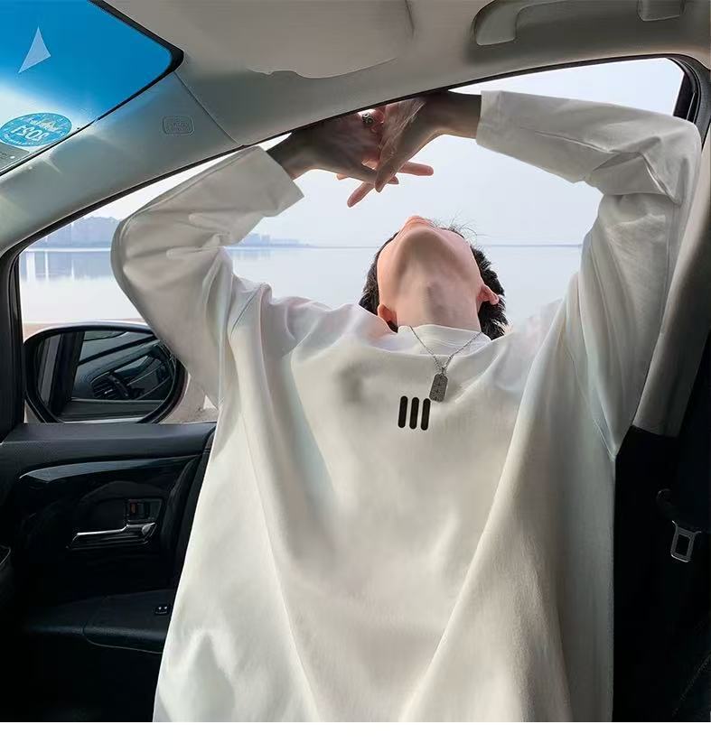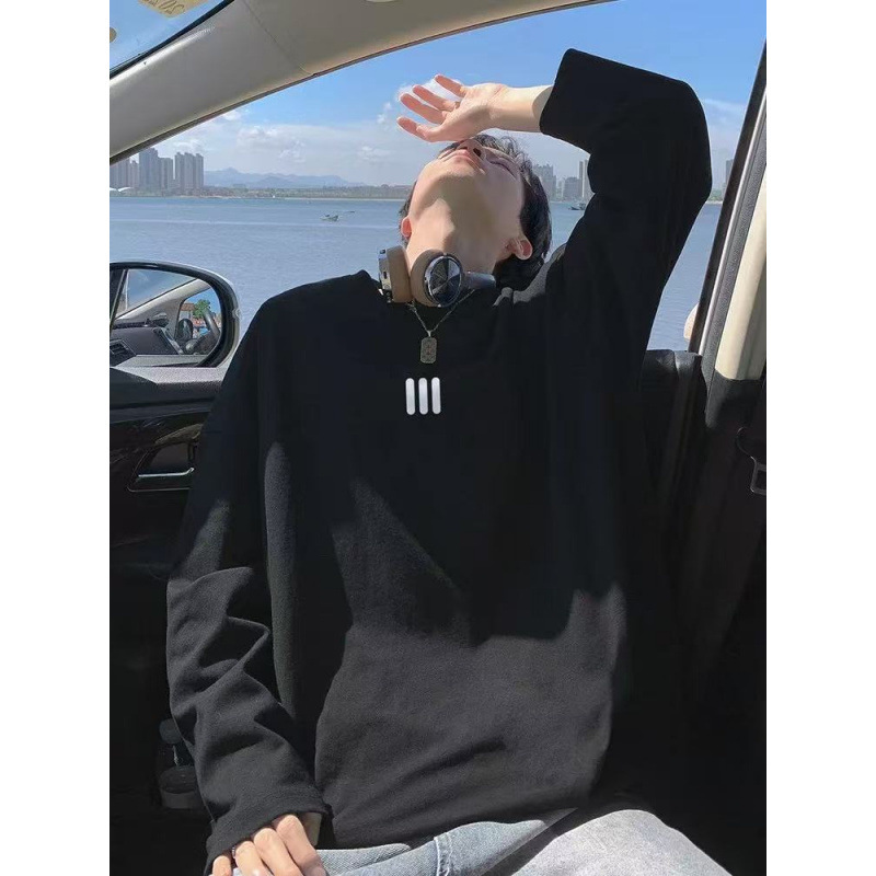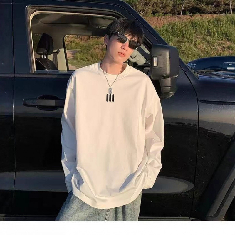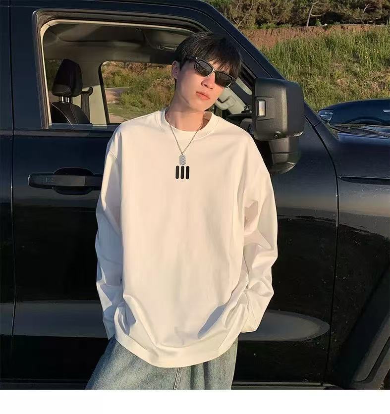 美式纯棉长袖T恤男士春秋季宽松大码潮牌卫衣内搭上衣情侣打底衫