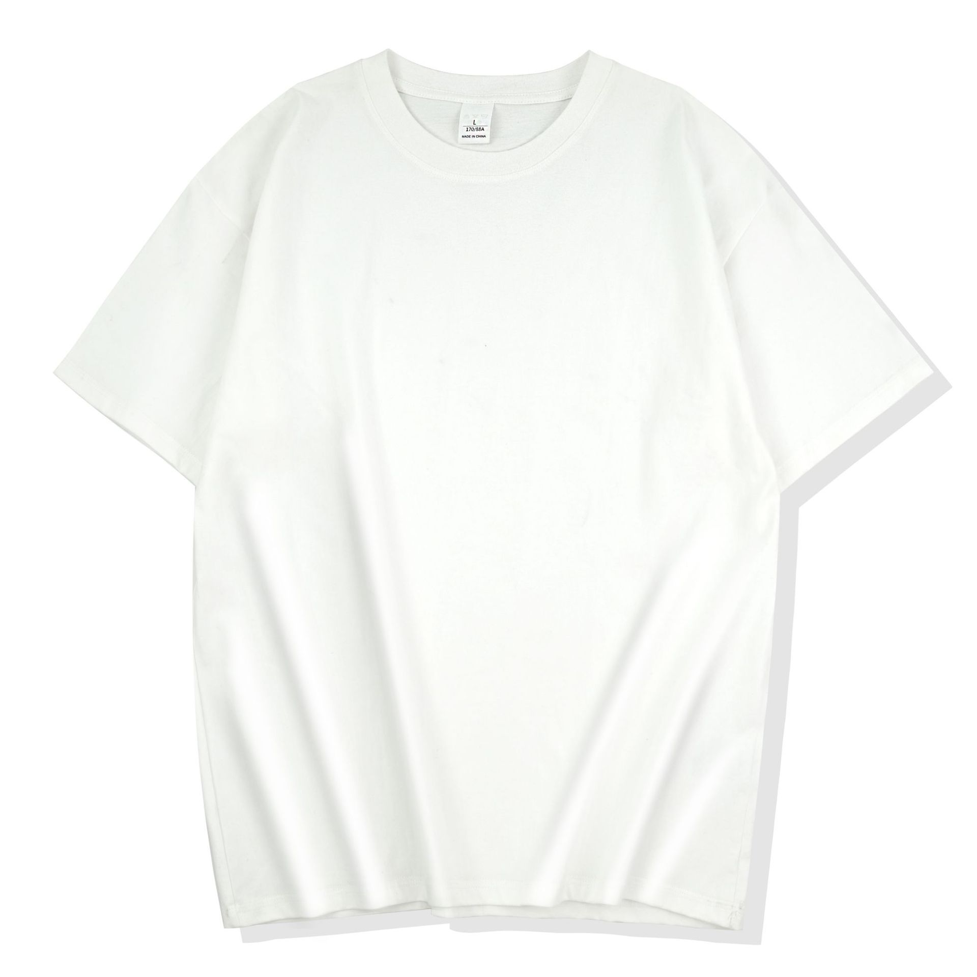 230克纯棉短袖T恤印logo字圆领落肩宽松文化衫白色打底衫男女同款