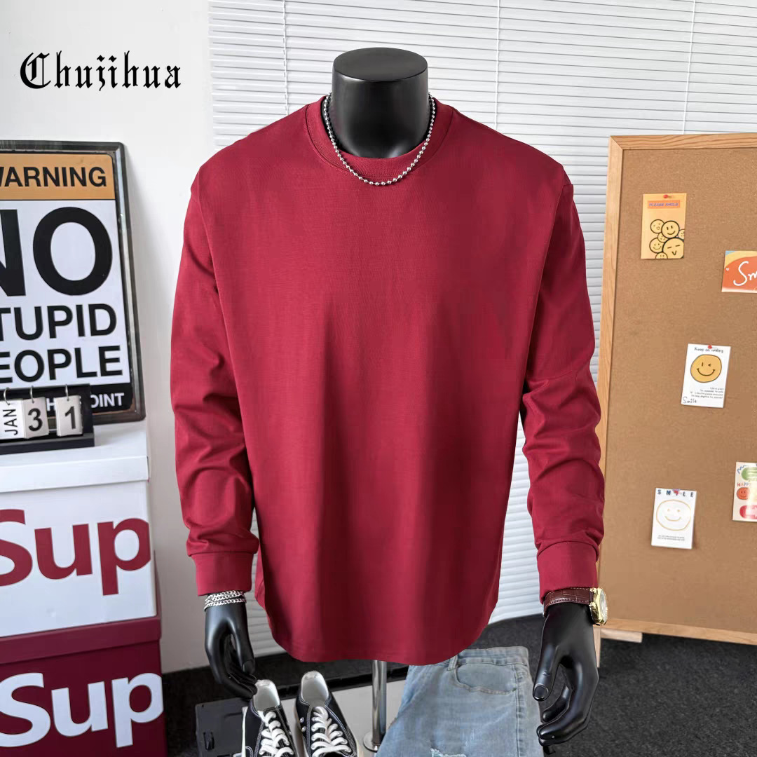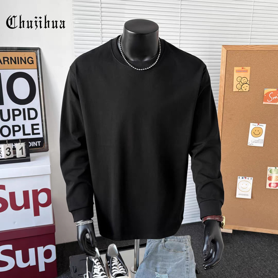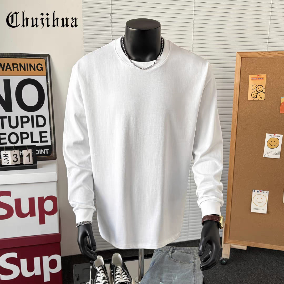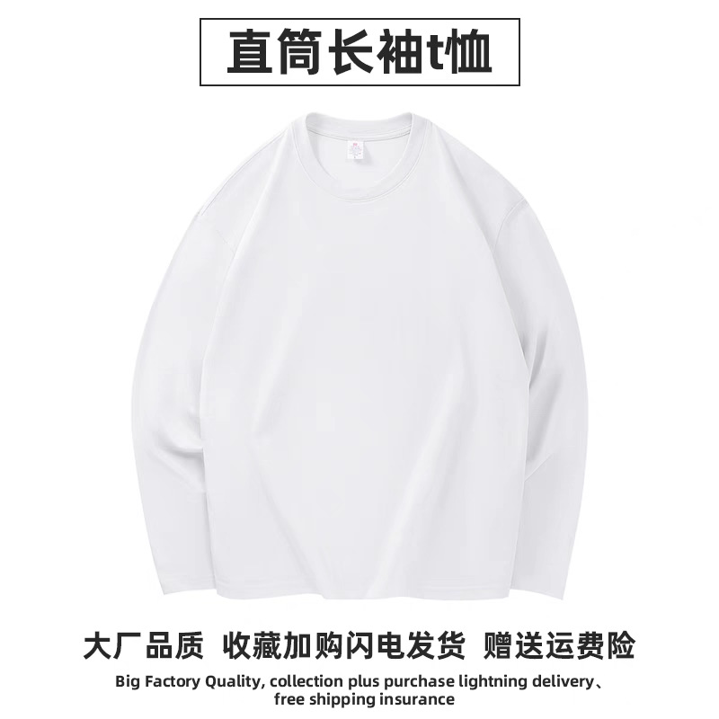新疆棉300g重磅纯棉长袖宽松纯白色上衣内搭厚实打底衫t恤男女款