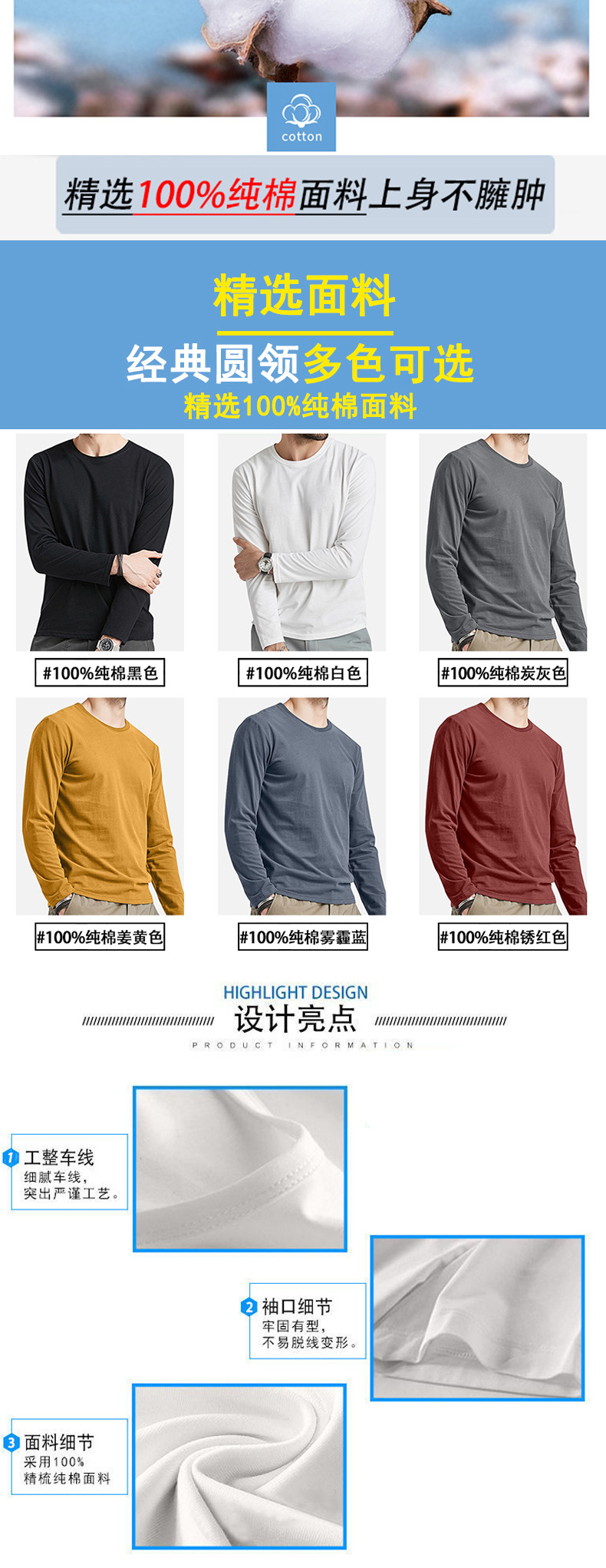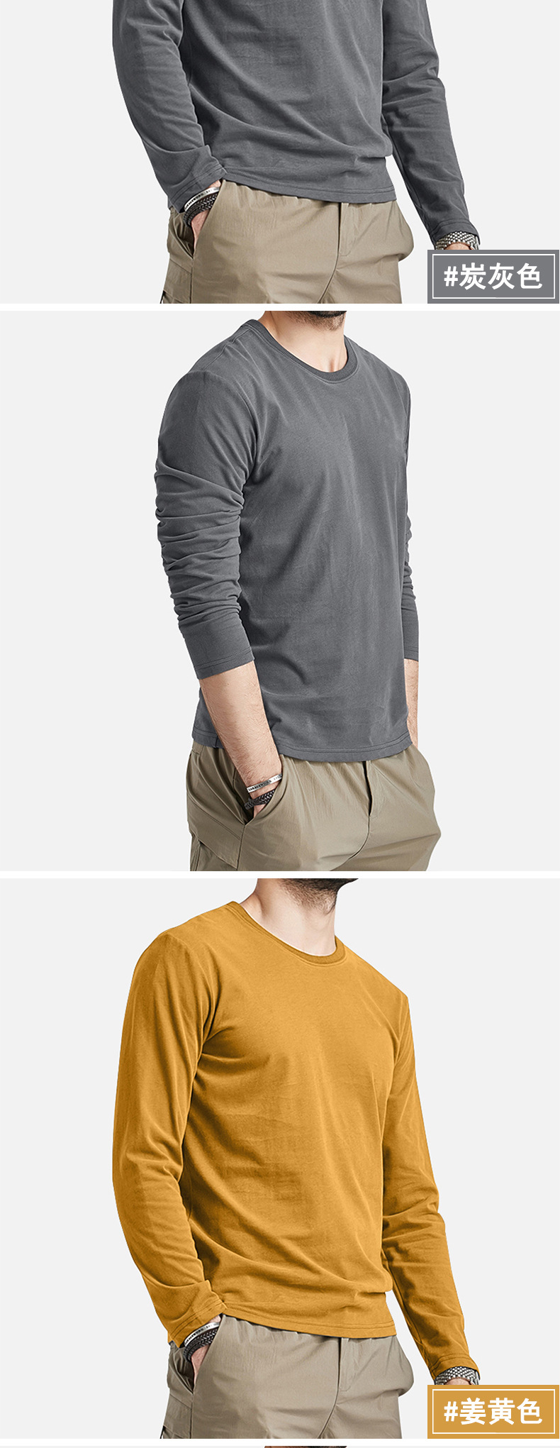 新款秋冬纯棉圆领领长袖t恤男士上衣薄款打底衫内衣内搭修身百搭