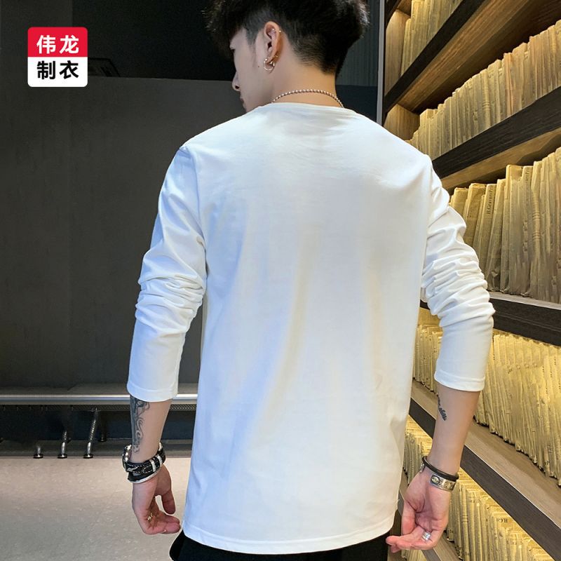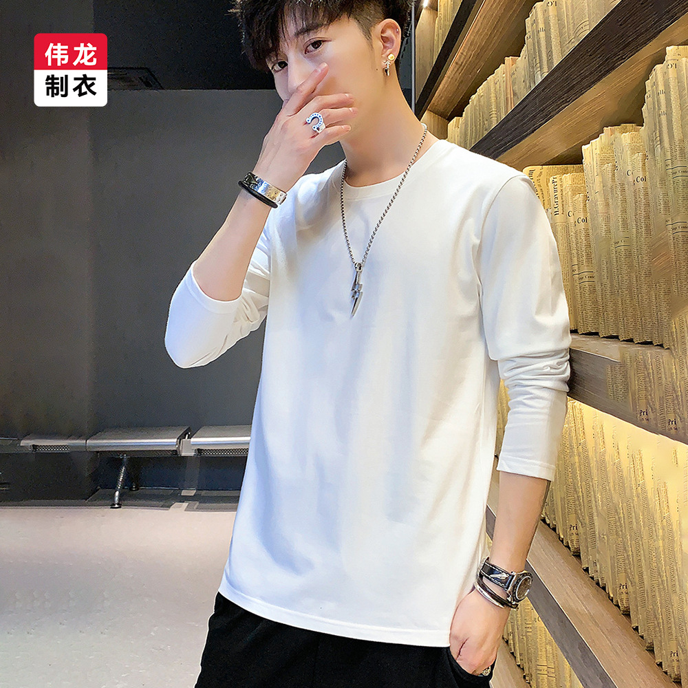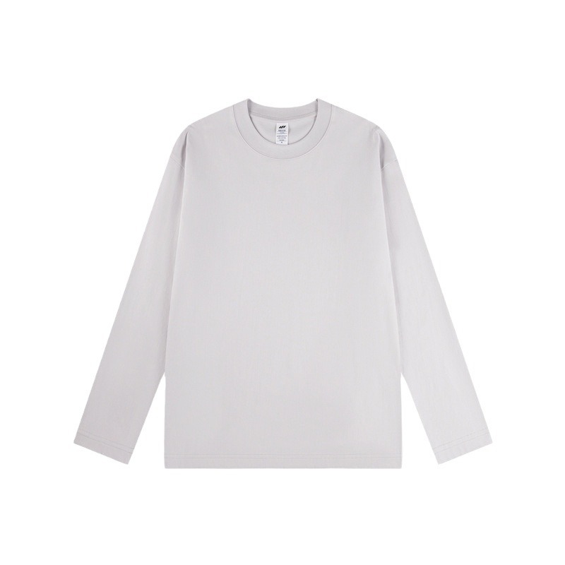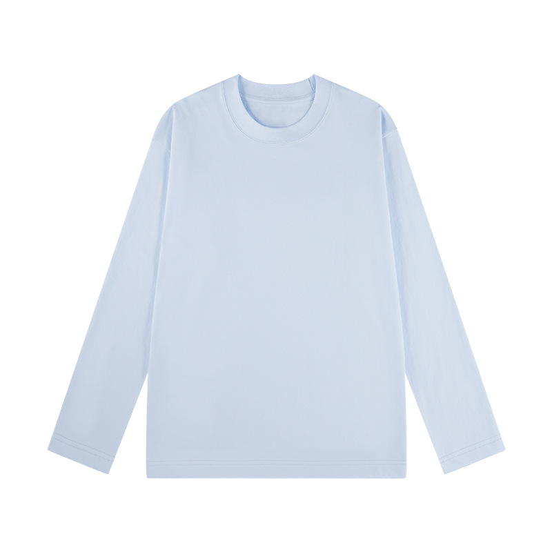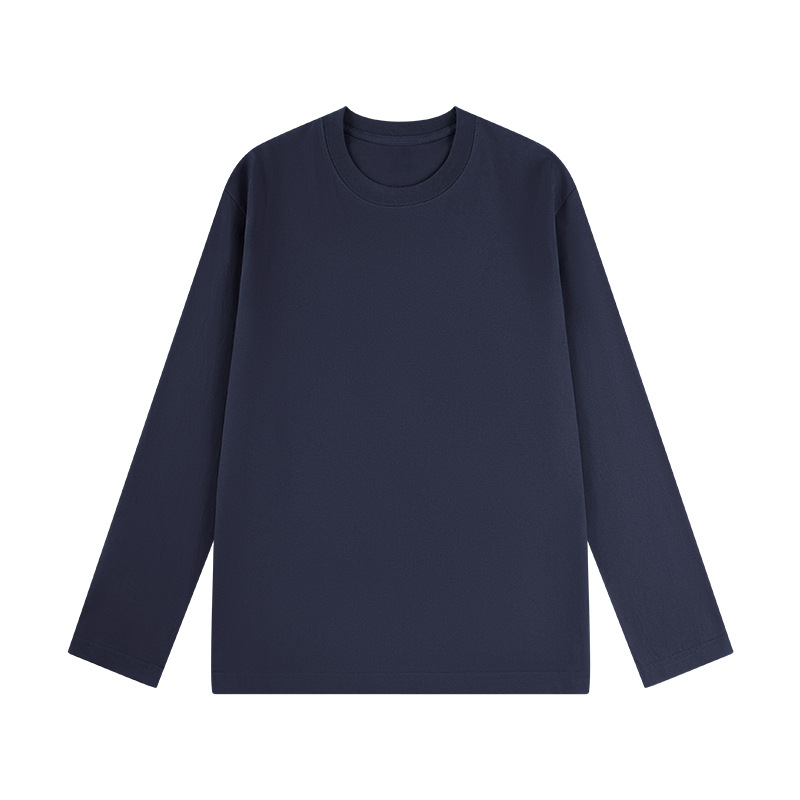 230G精梳纯棉圆领纯色长袖上衣男女纯色t恤衫秋季新款宽松打底衫
