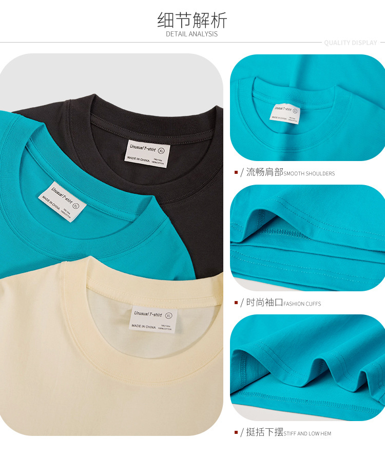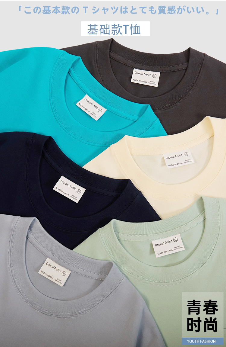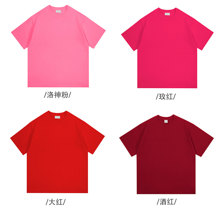 260克重磅纯棉短袖男t恤潮流百搭打底衫女圆领落肩纯色小白T情侣