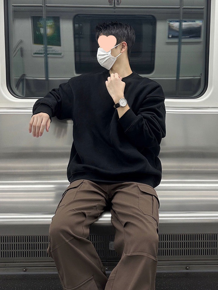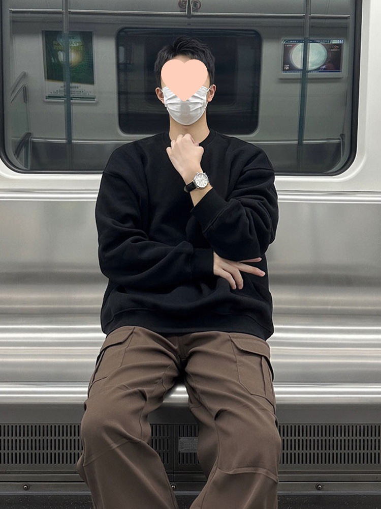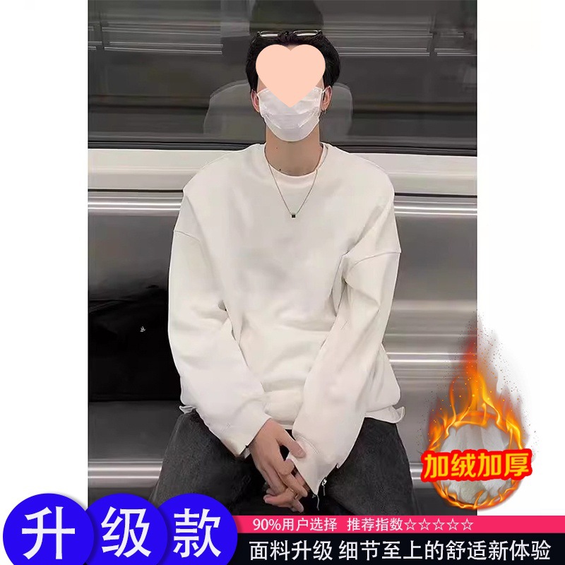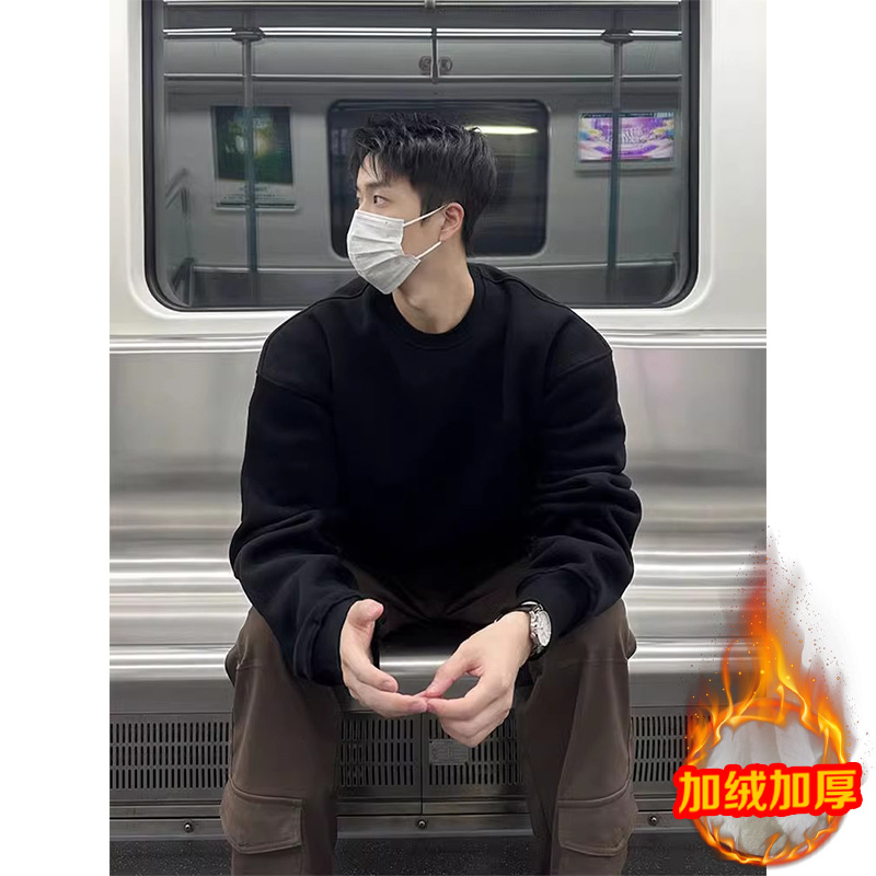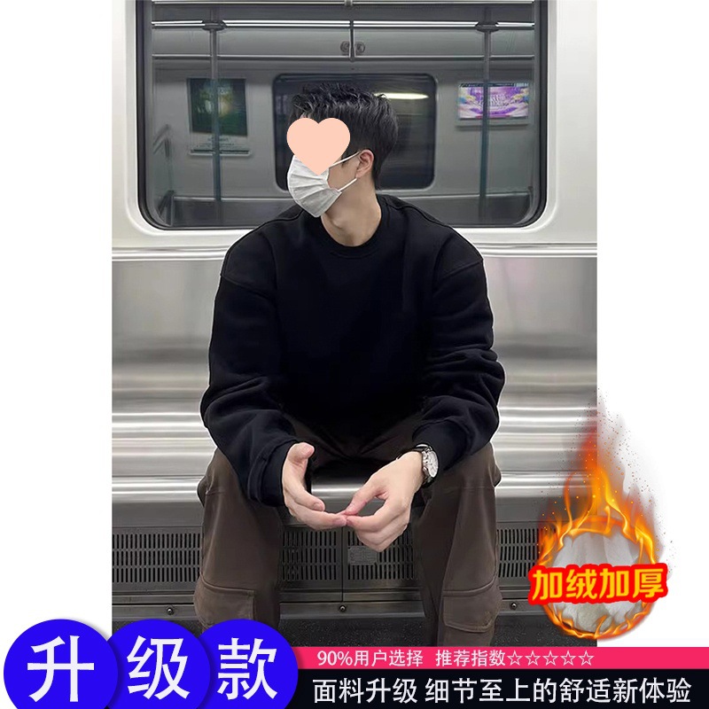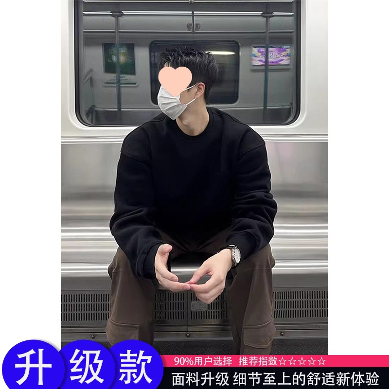 500重磅黑色卫衣男款春秋季圆领无帽套头内搭打底衫美式穿搭