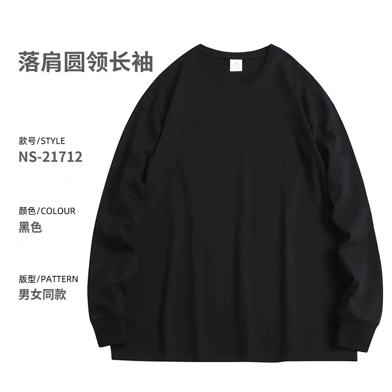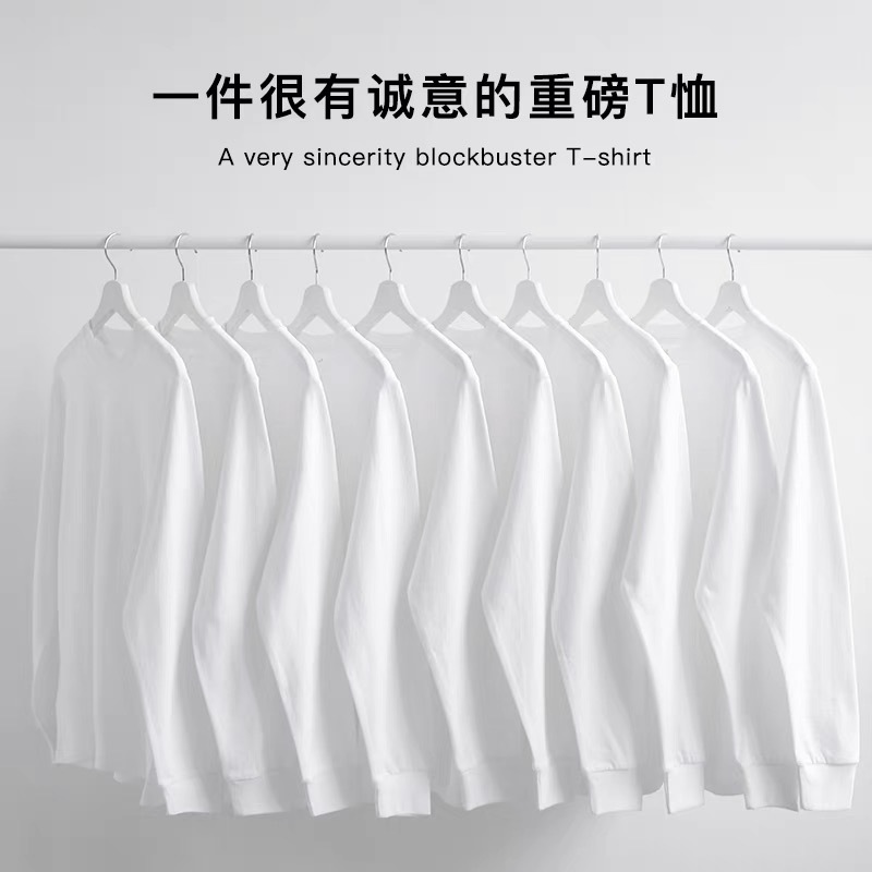 重磅纯棉320g螺纹长袖圆领T恤男内搭宽松纯色打底衫男女卫衣批发