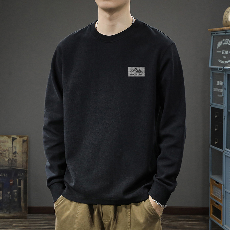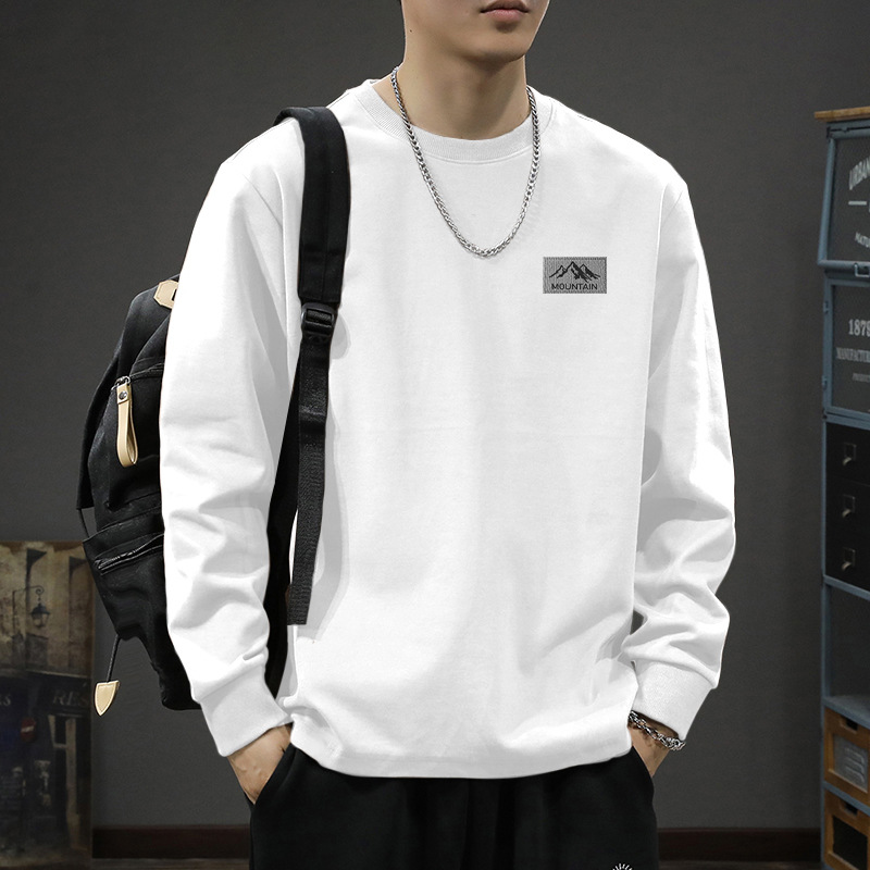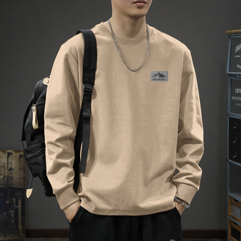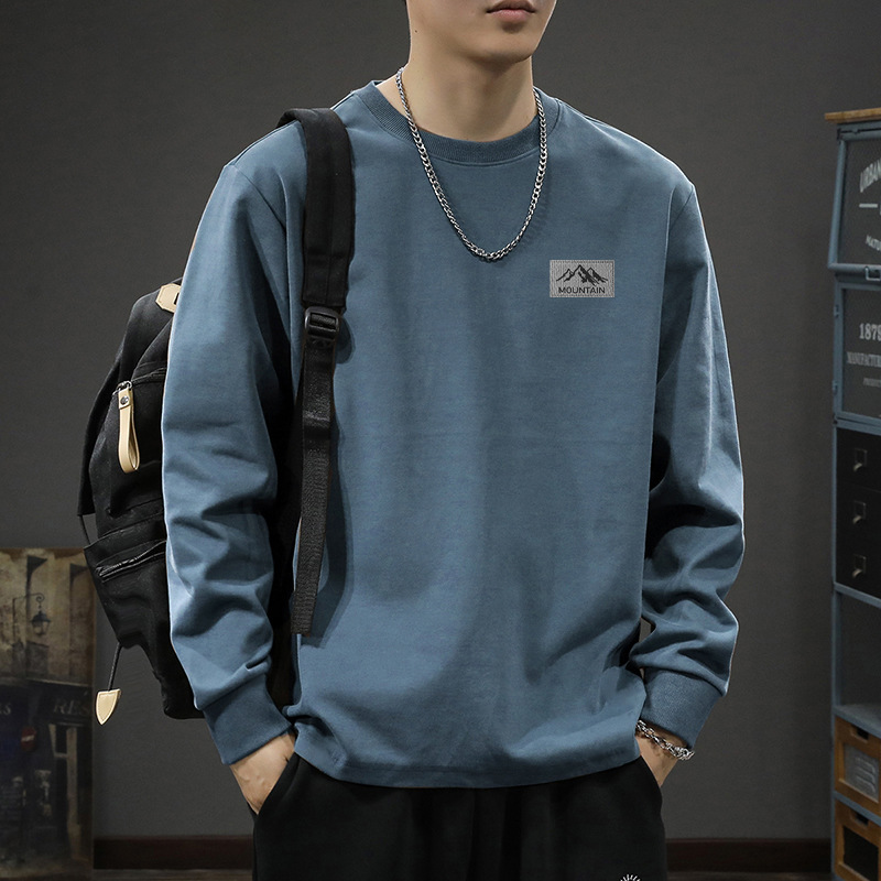 长袖T恤男2025春秋季新款宽松重磅纯棉青少年圆领套头打底衫