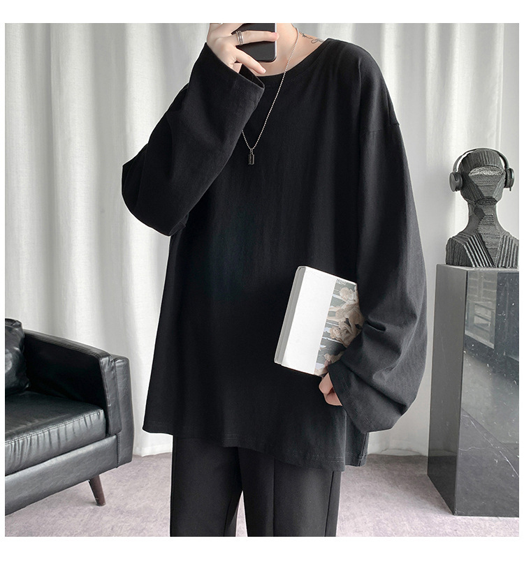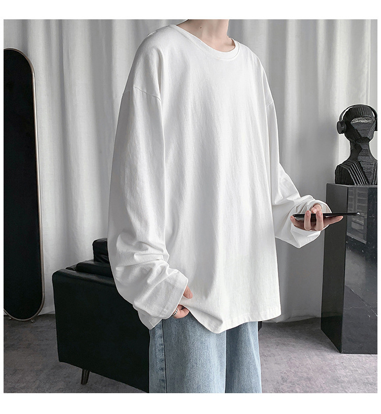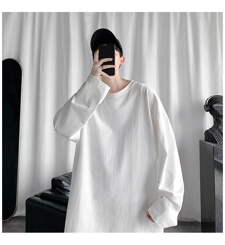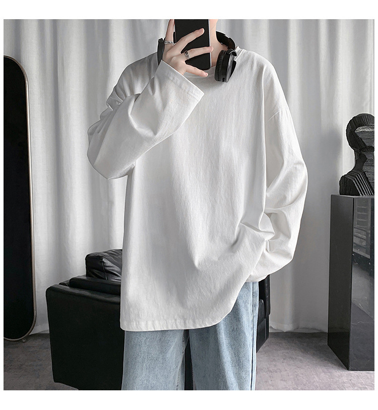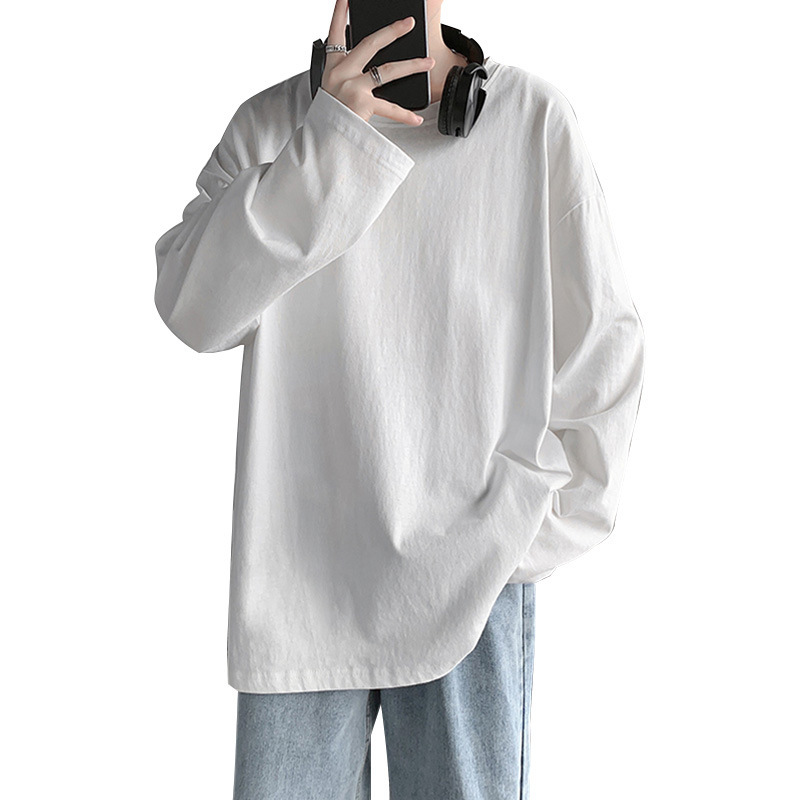 白色t恤男长袖春秋季宽松休闲打底衫潮牌ins港风韩版百搭纯色上衣