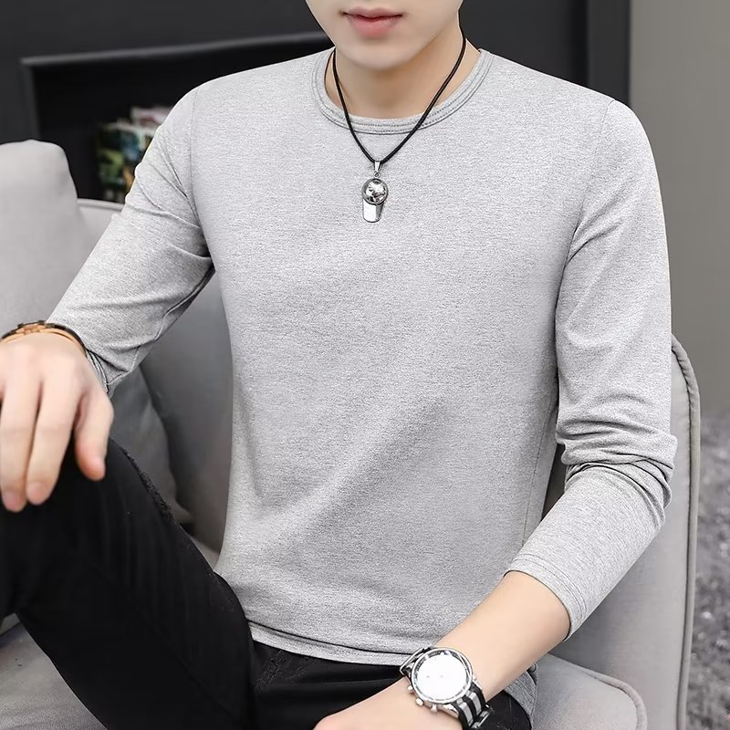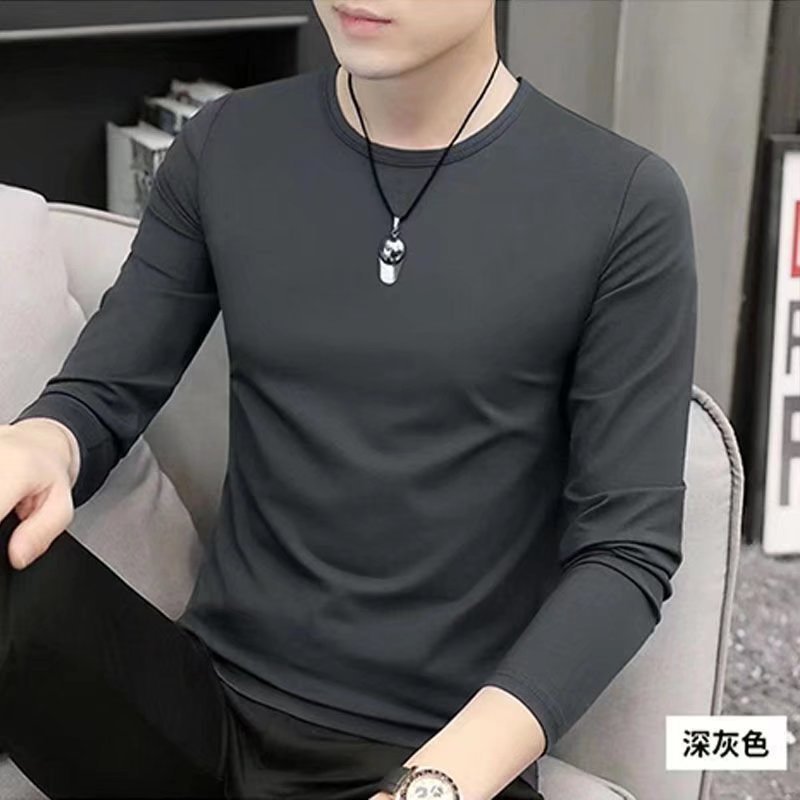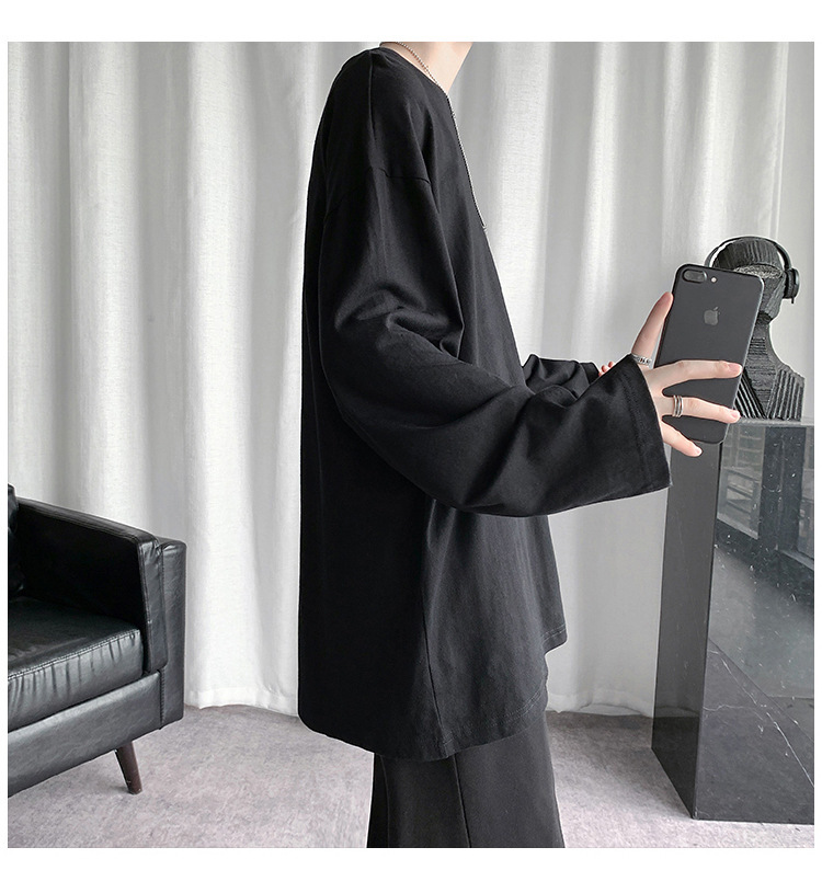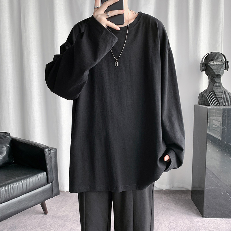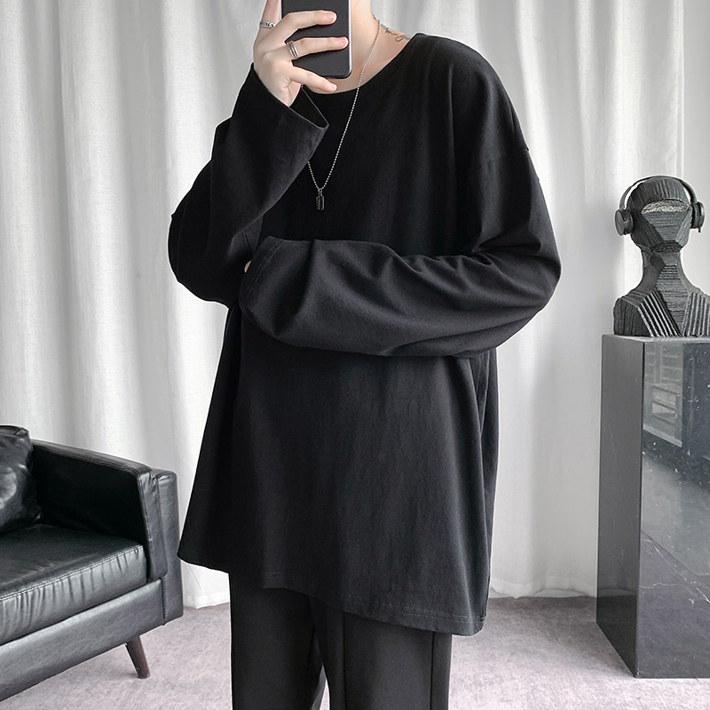 白色t恤男长袖春秋季宽松休闲打底衫潮牌ins港风韩版百搭纯色上衣