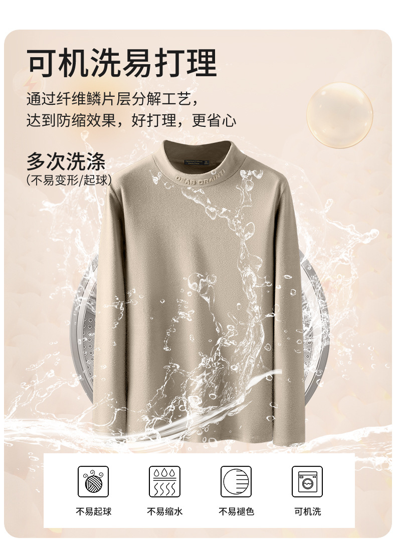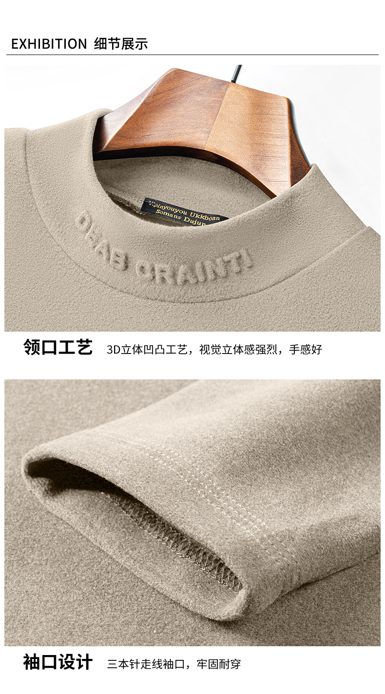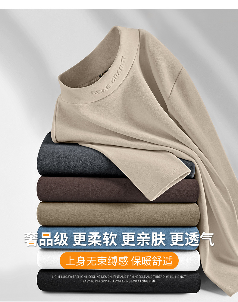 德绒打底衫男冬季加厚保暖半高领上衣青年男士长袖t恤加绒打底衫