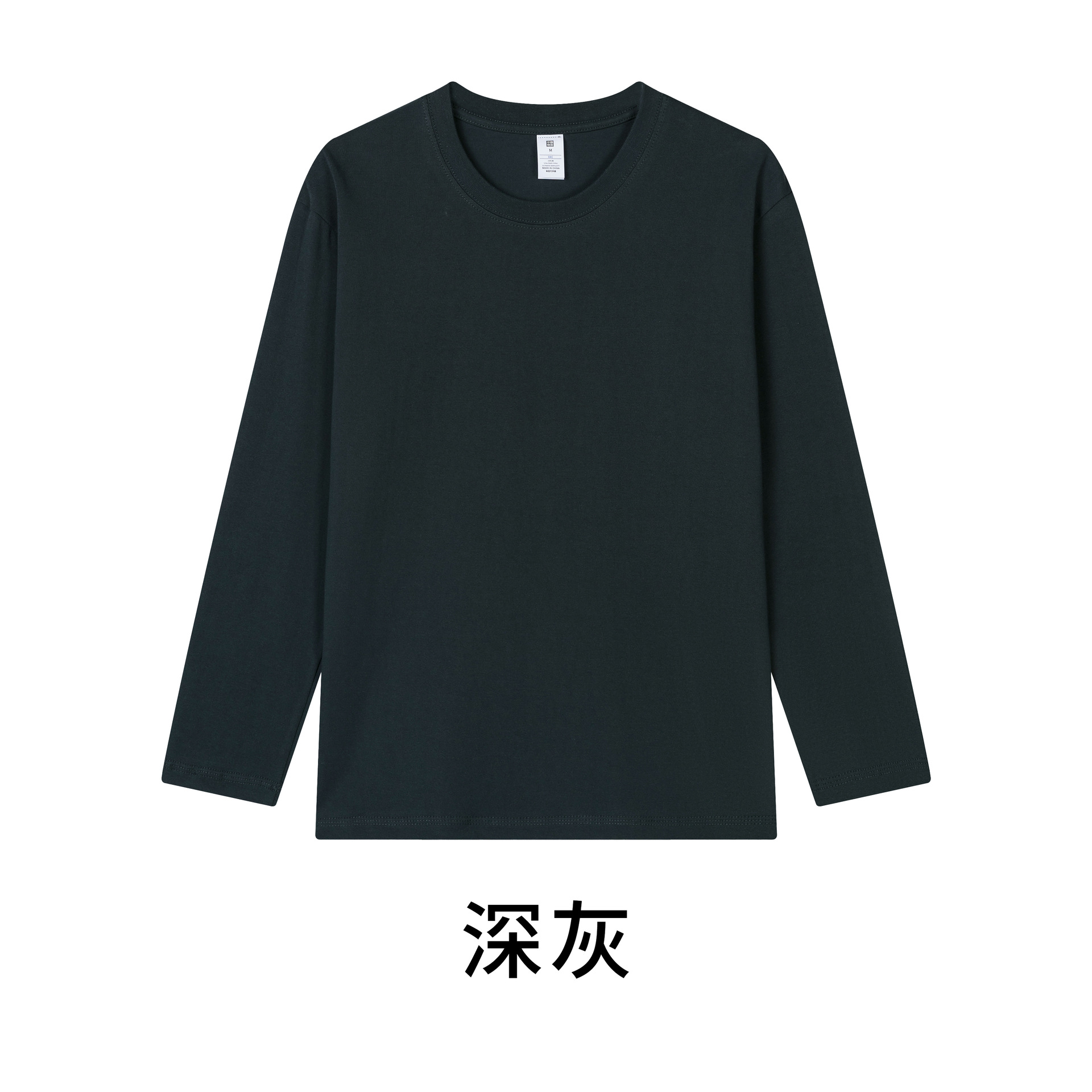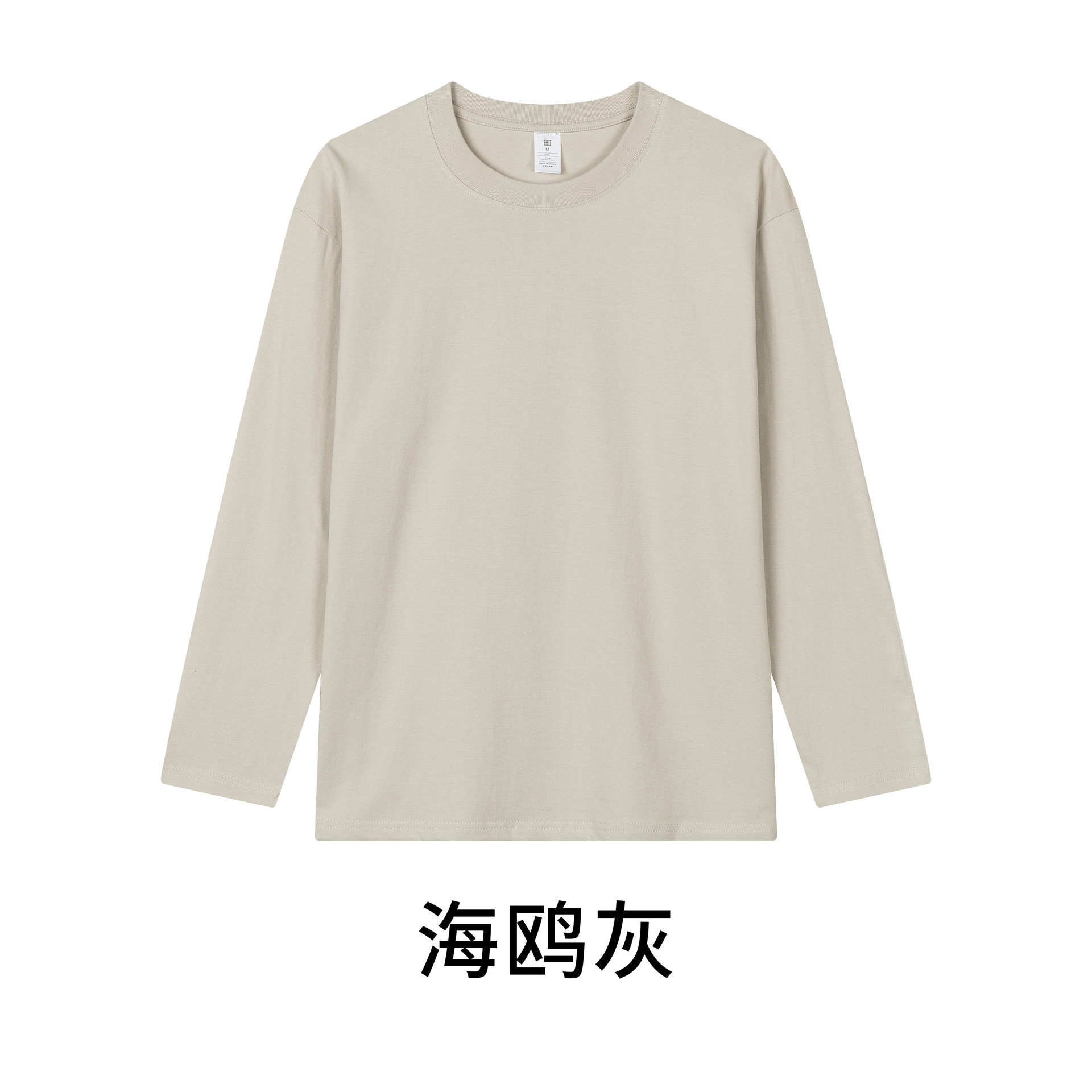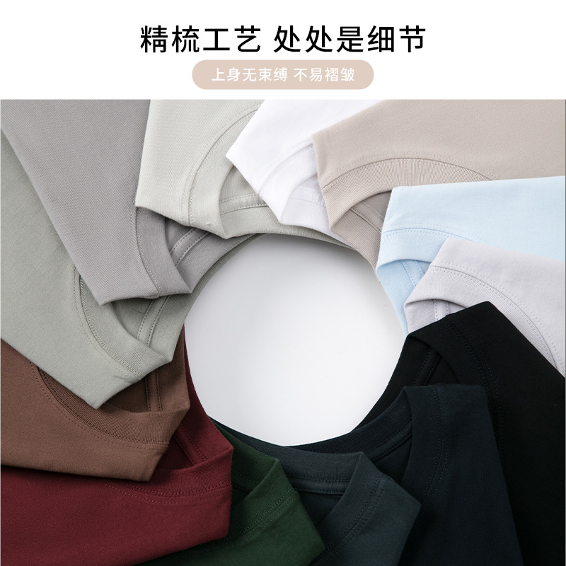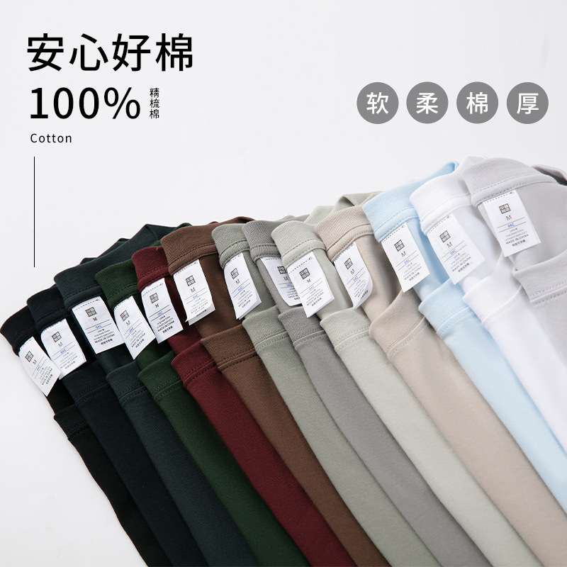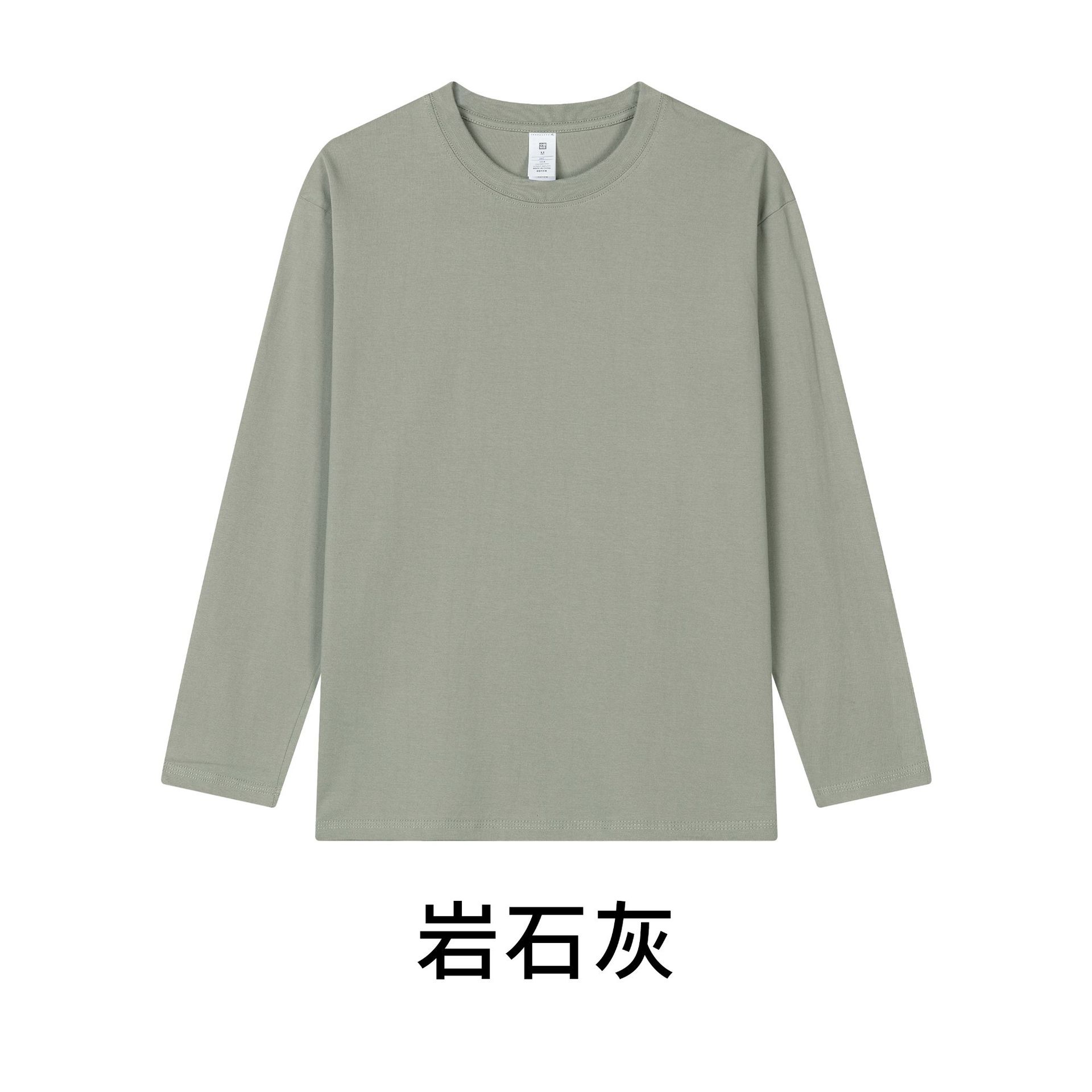 230克秋季新疆精梳全棉重磅圆领纯色长袖男t恤宽松打底衫一件代发