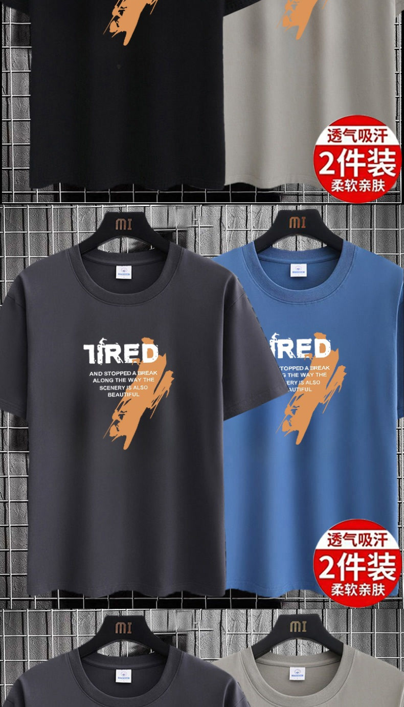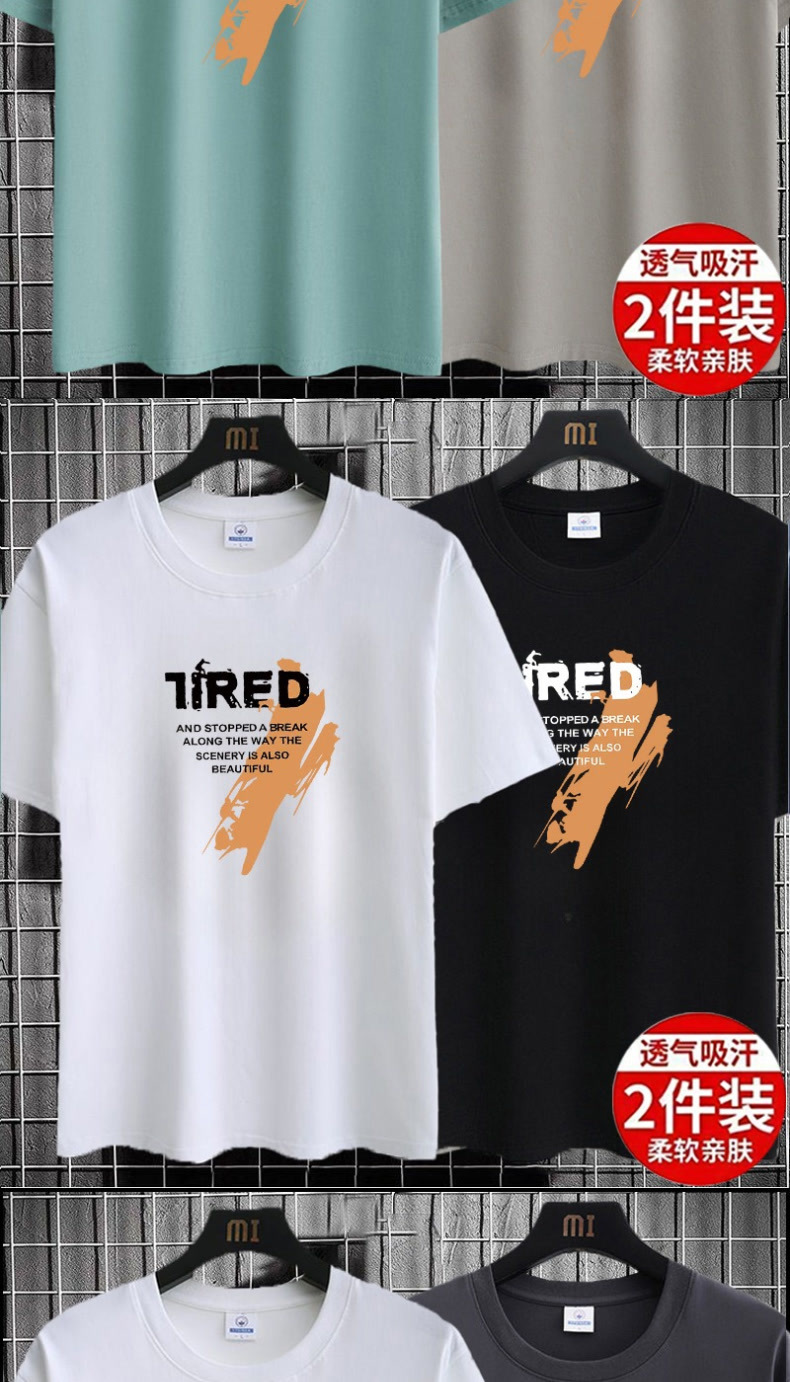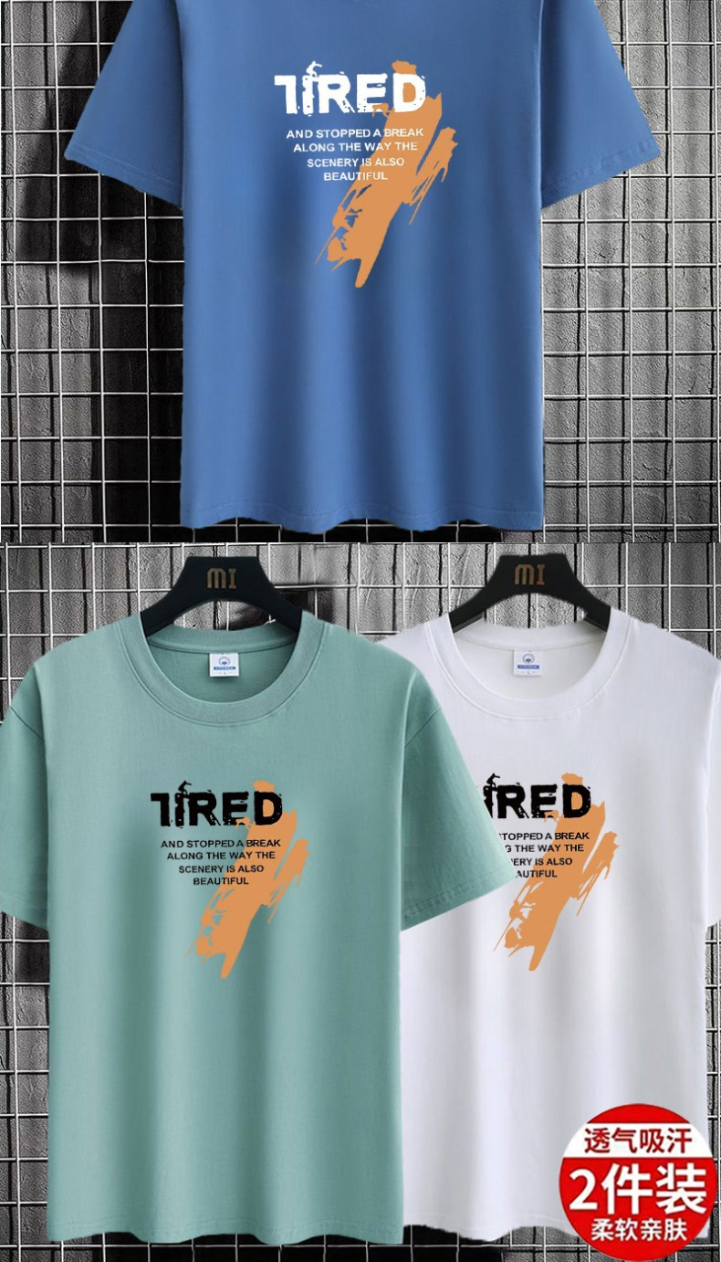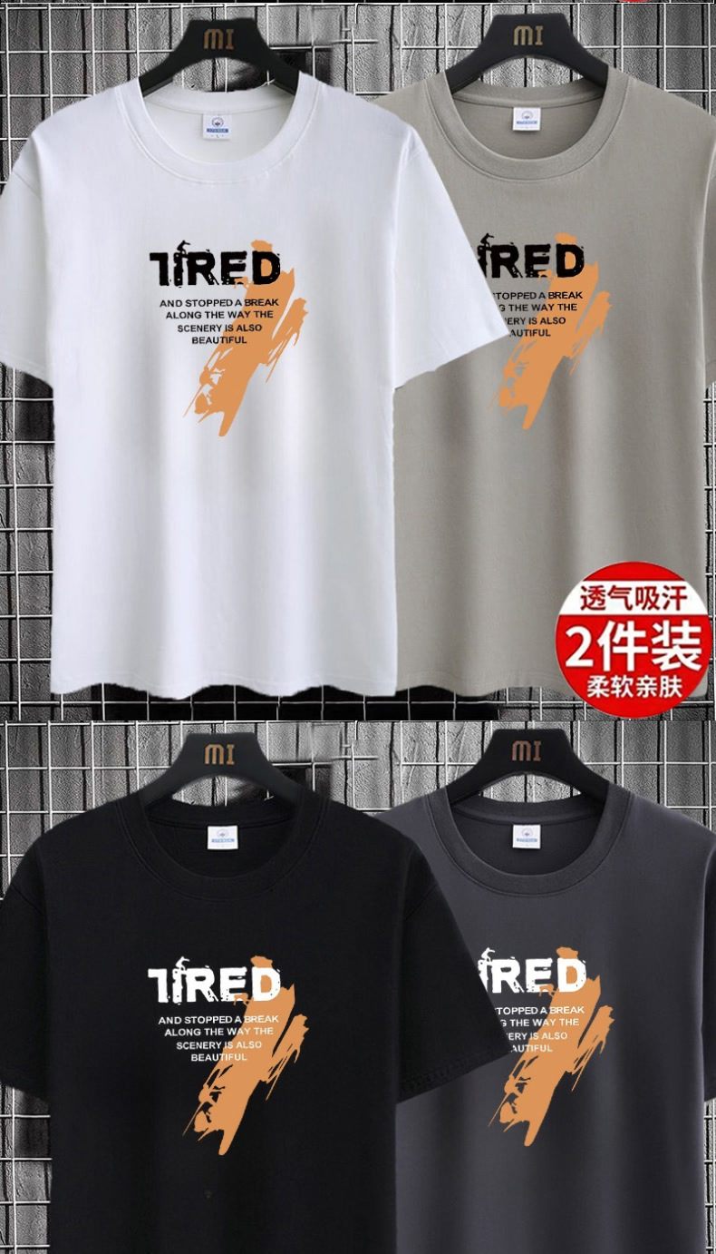 青年夏季短袖T恤男圆领潮流印花ins上衣大码百搭半袖男体恤打底衫