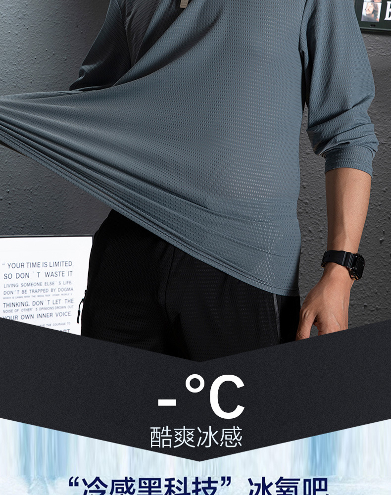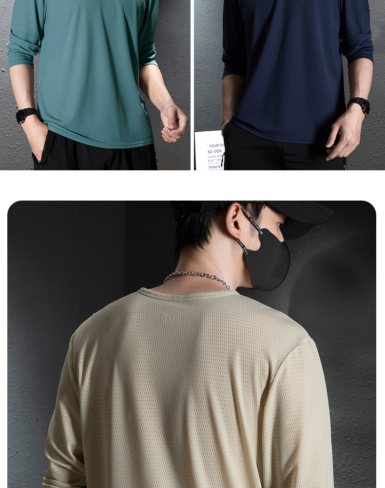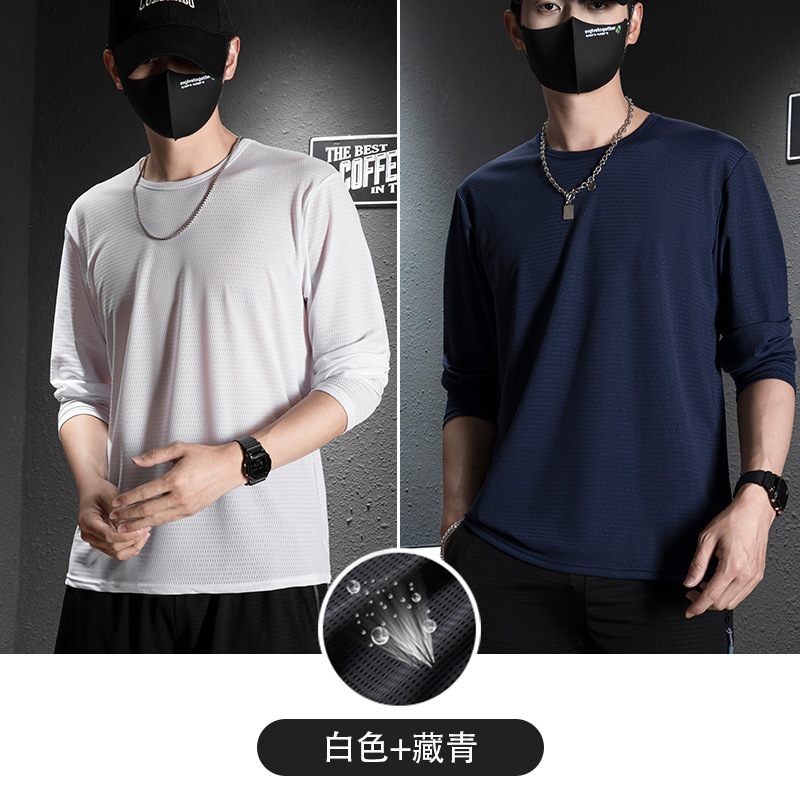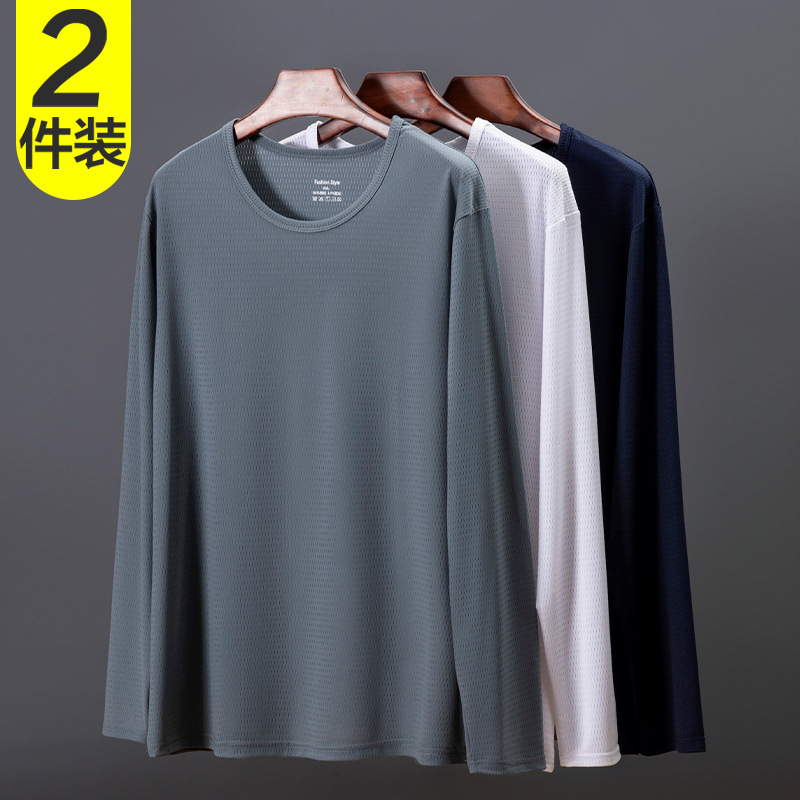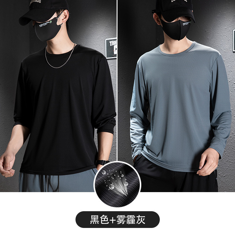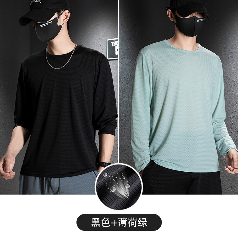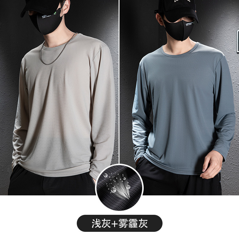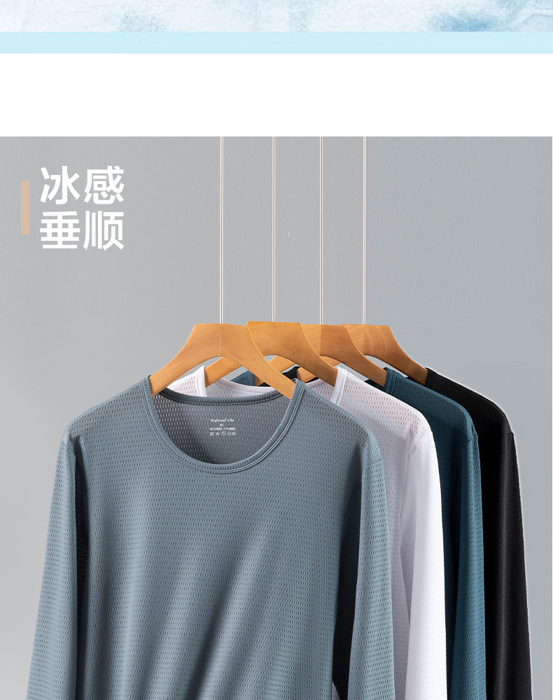 冰丝长袖t恤男夏季透气速干空调衣冰感防晒工地户外打底衫薄代发